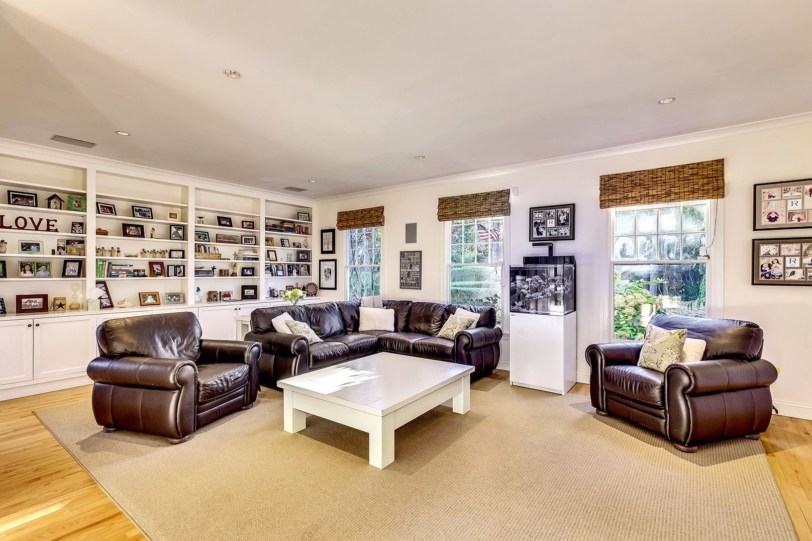 Gorgeous 5 Bedrooms, 4 Baths Post Modern. Finished Basement, 40 Ft. heated Pool. Featuring Custom Kitchen With Granite Counters and Professional S/S Appliances, Open Living Room, 2 Master Suites, Family room with stereo surround sound, 7 speakers and a $70K + Crestron Stereo System. Custom trim and built-ins, hardwood floors throughout, In-house "Jandy" System controlling Light & Heat In Pool. owner owned solar panels. outdoor kitchen, To