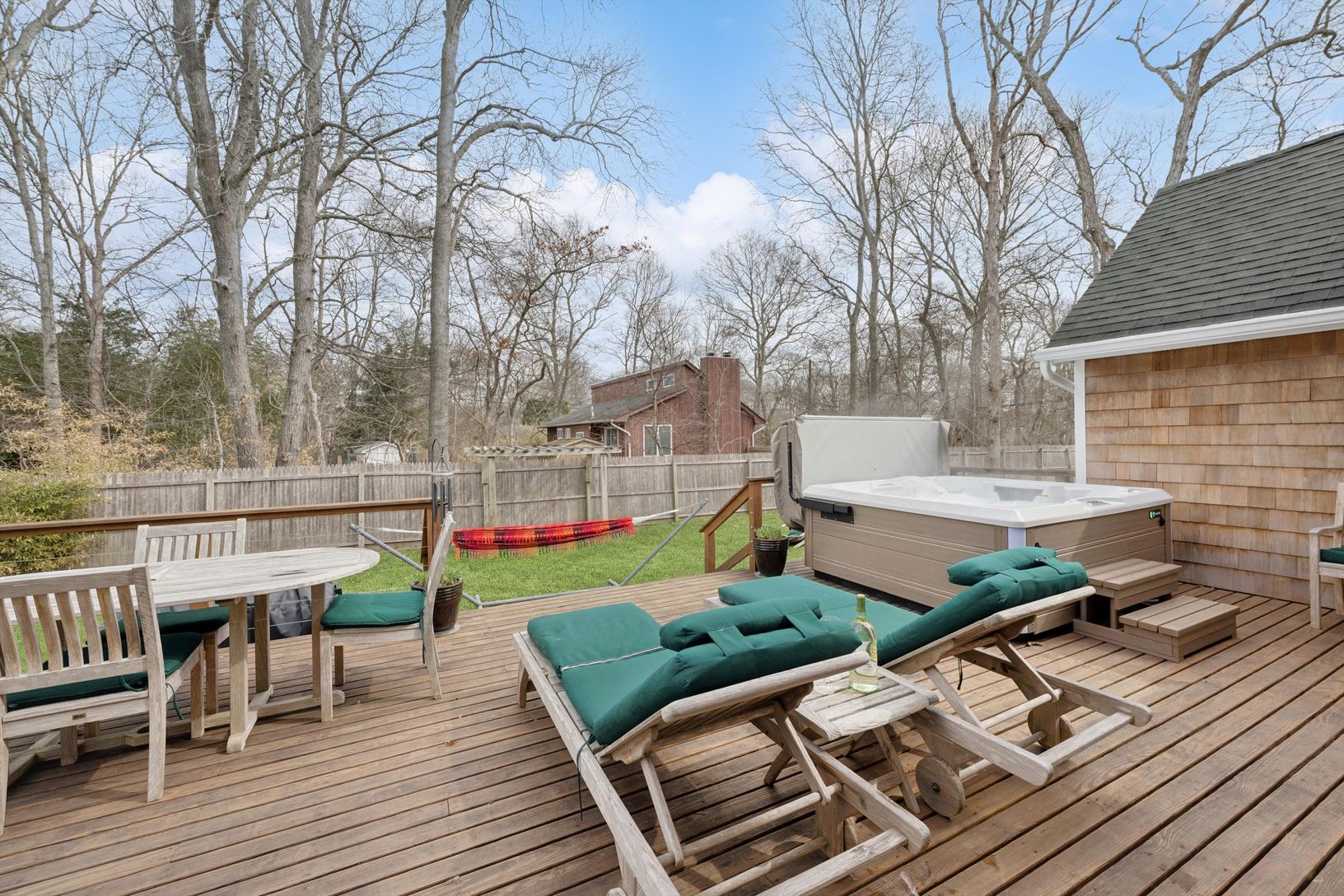 Enjoy East Hampton from this charming Cape-style home on a corner lot in East Hampton Springs. Conveniently located near Maidstone Park Beach, S&S Coffee, and several restaurants with outdoor dining, the home offers an ideal setting for a relaxed summer getaway. The sun-filled main living area includes a wood-burning fireplace and opens directly to the deck, providing plenty of space for outdoor lounging and dining-perfect for entertaining