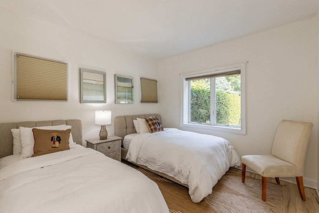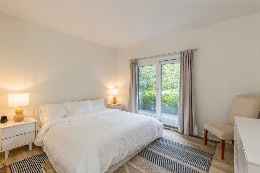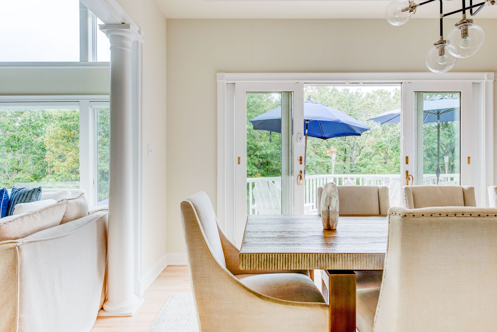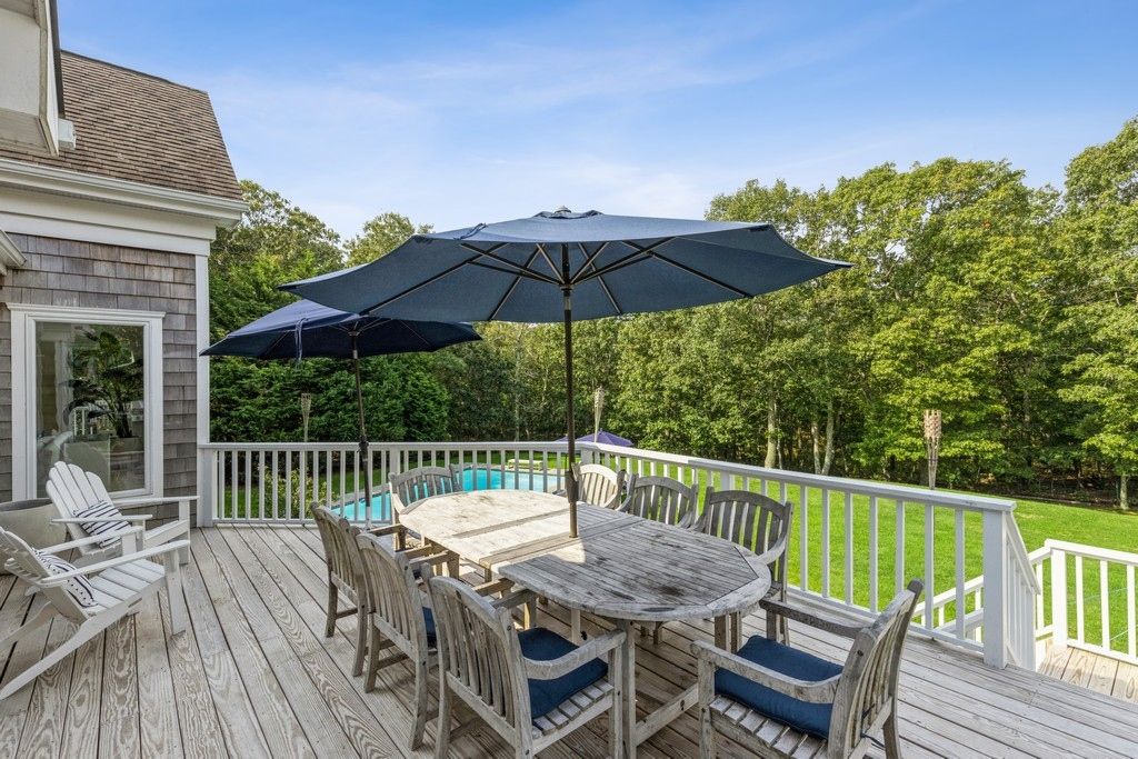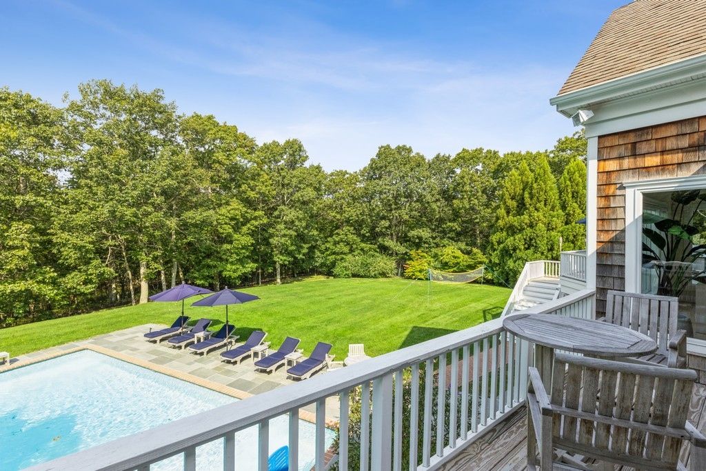 Nestled within a tranquil East Hampton neighborhood, this elegant estate sprawls across 1.47 acres of land, offering a serene retreat. Upon arrival, soaring ceilings and abundant natural light create an inviting ambiance throughout the open-plan living, dining, and kitchen areas on the main level. Modern coastal décor blends seamlessly with charming beach-inspired accents, setting a welcoming tone. Multiple living spaces on both levels provide