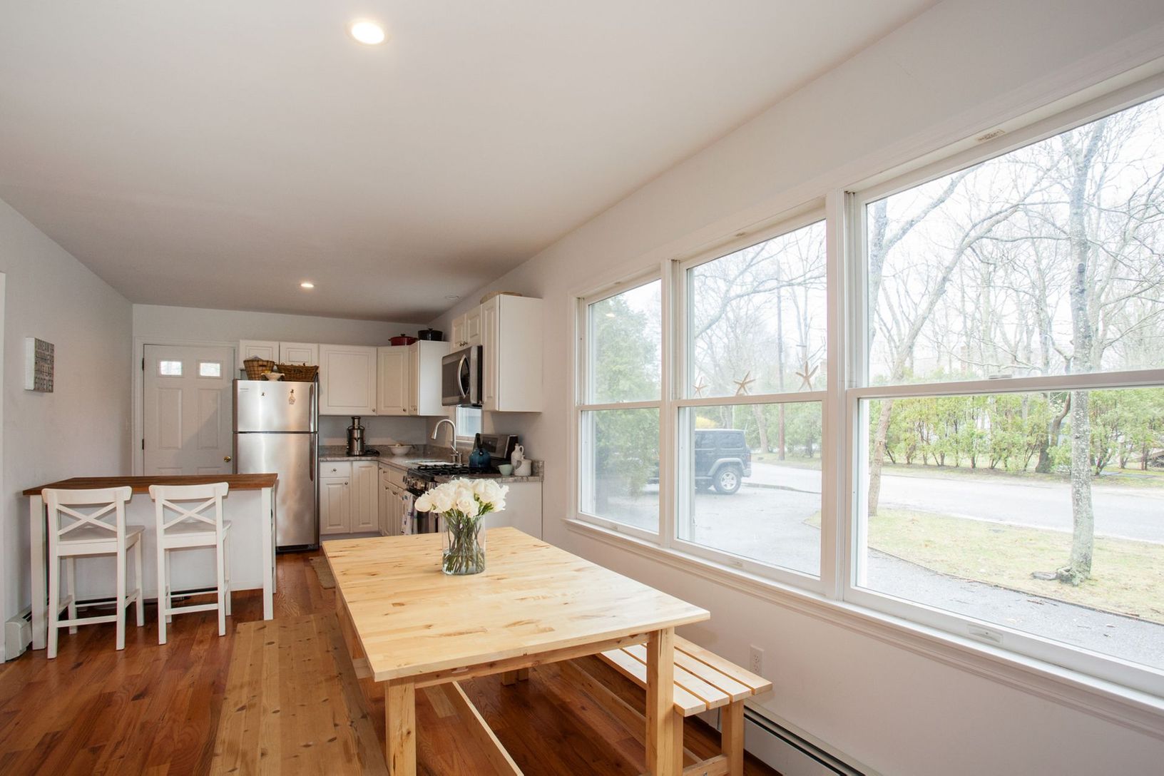 The First floor includes a spacious kitchen with gas range and dining area that flows outside to backyard. There is a covered porch area off the kitchen that is ideal for al fresco grilling and dining. There are two first floor bedrooms that receive great afternoon light. They share a full bathroom that includes a tub shower and stall show