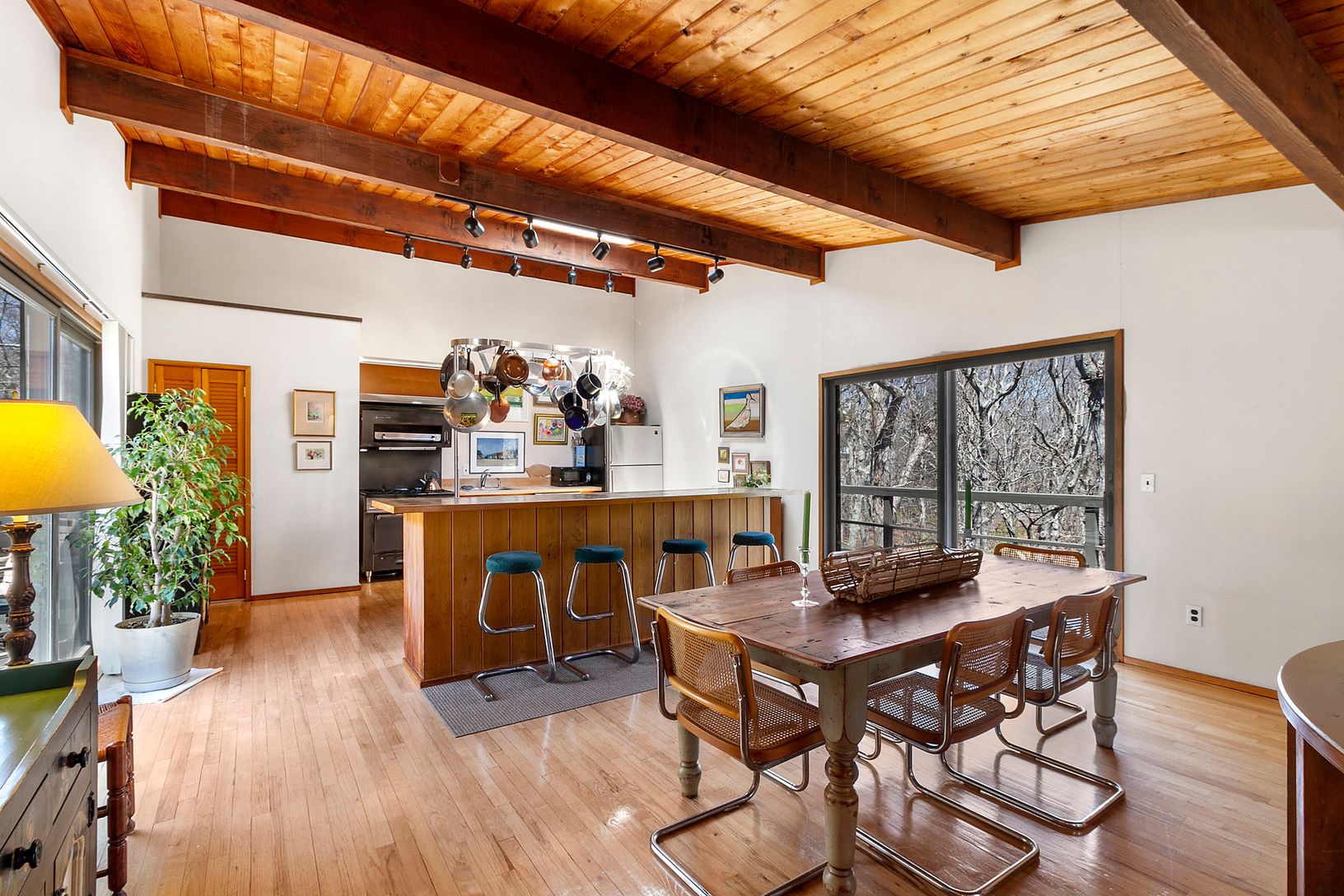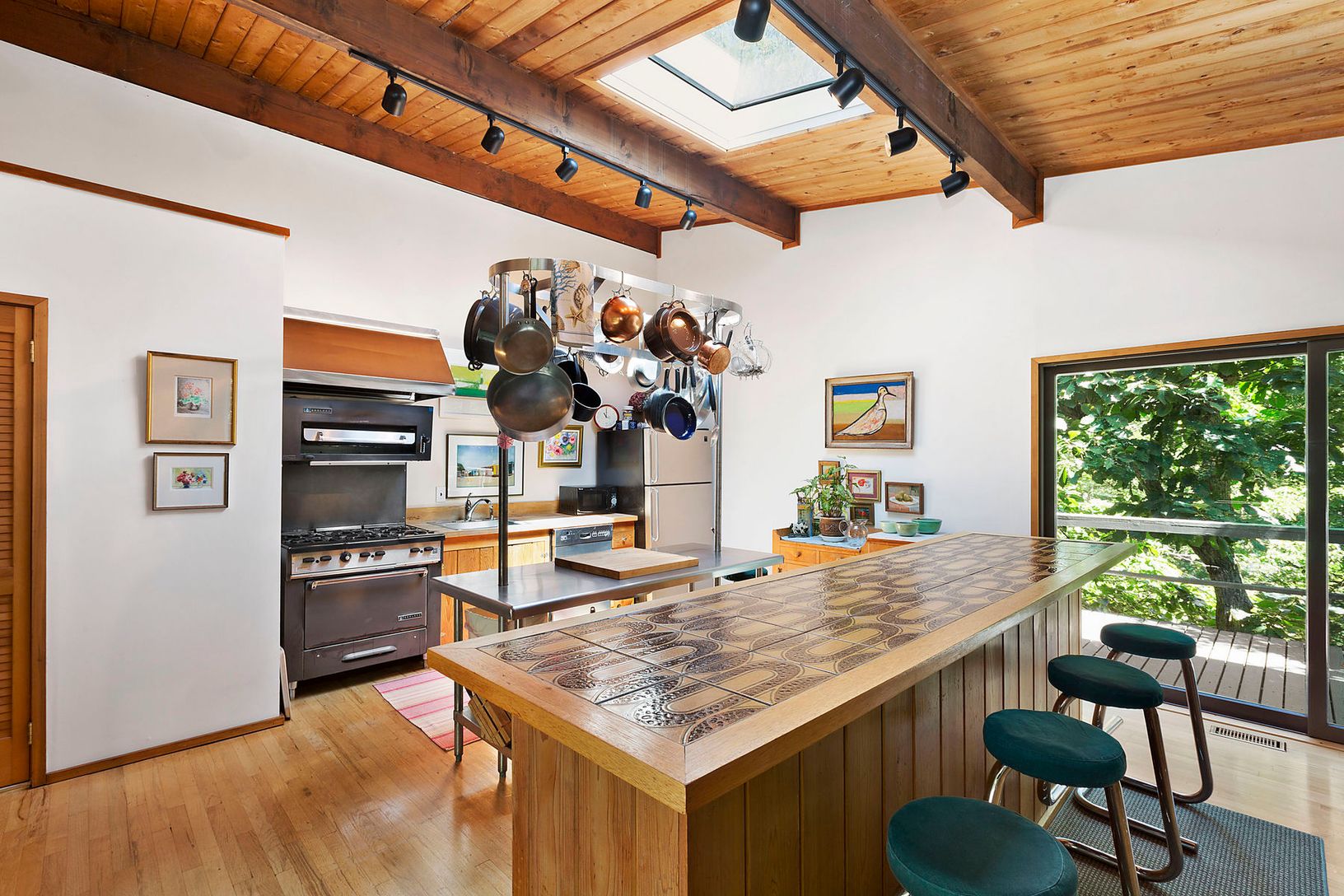 Custom built for entertaining, this home has soaring ceilings, wide open living spaces, a chef's professional kitchen, complete with Garland Range, wood floors throughout, a masonry fireplace, two bedrooms, two and one half baths, den/library, a pool, multiple decks, and a garage, all located in the Landfall community with a private beach. One acre property with room for clearing and expansion.