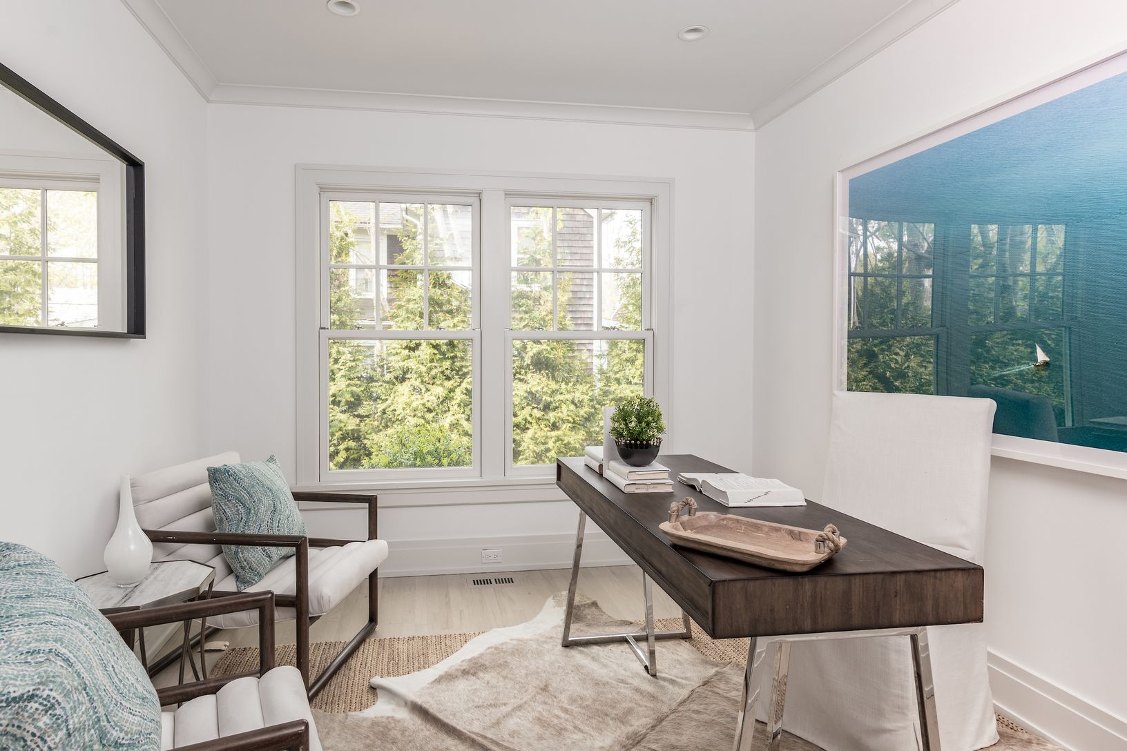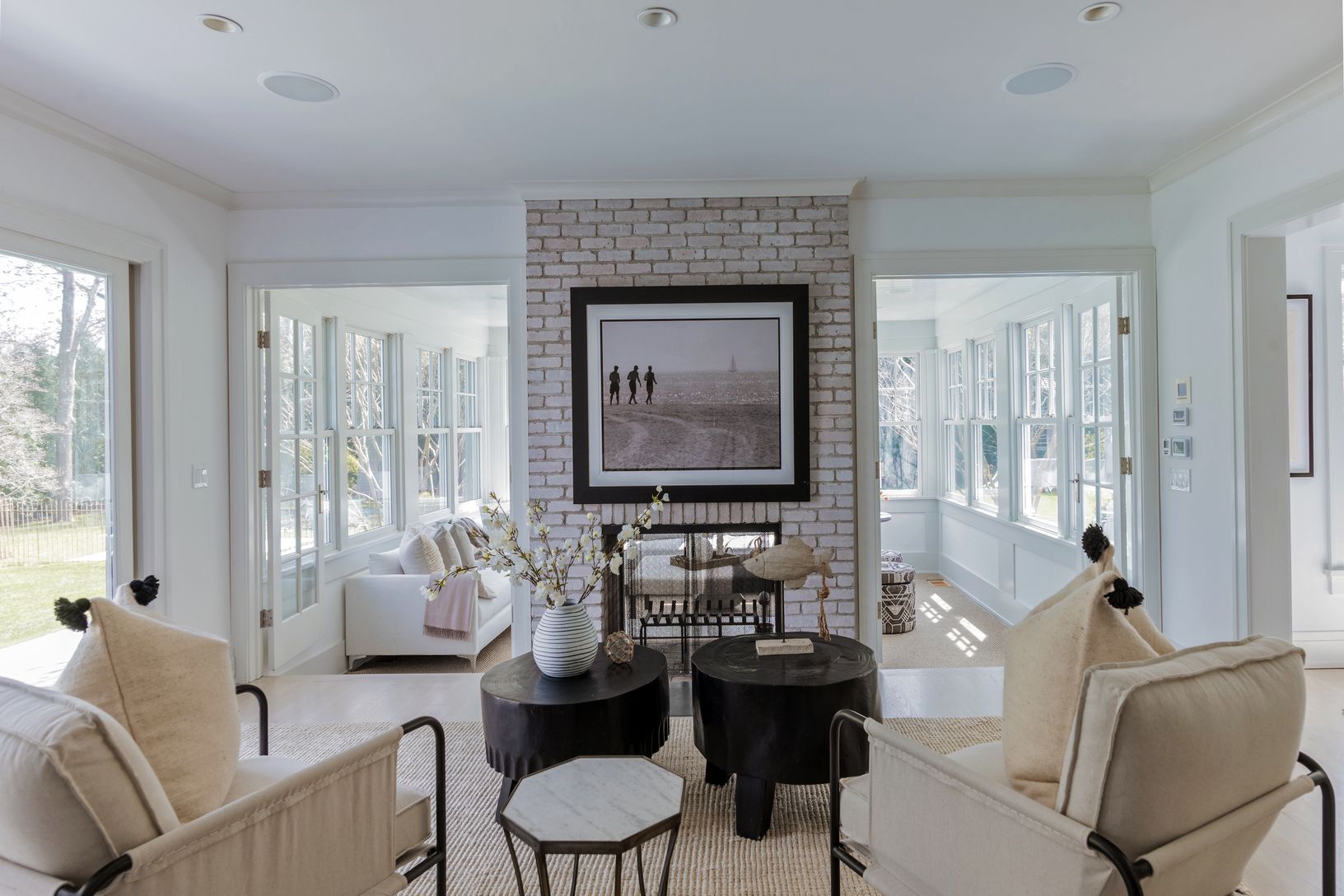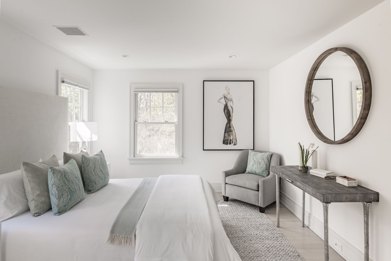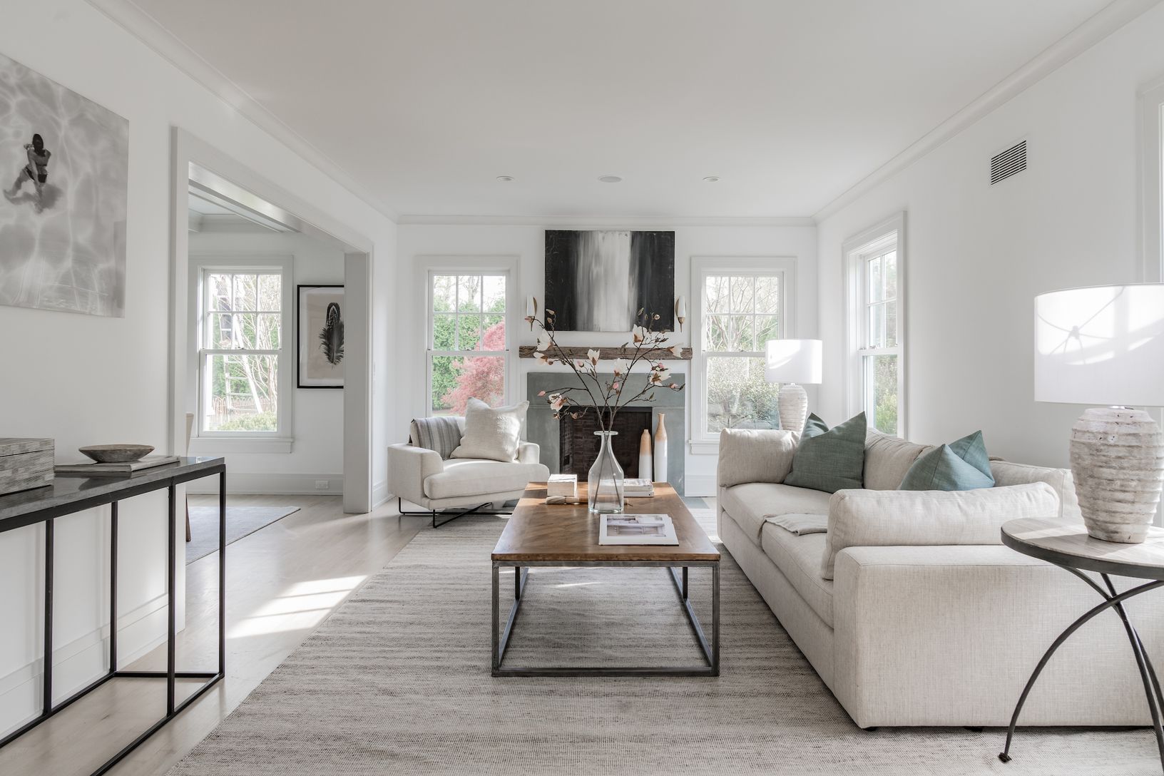 Minutes from Sag Harbor Village, Zen-like landscaping envelops this peacefully secluded, recently renovated, 4,250 square foot, 5-bedroom traditional with a heated, gunite, salt water pool set on a half acre. An open floor plan allows for easy flow between the gourmet eat-in kitchen, sitting area with fireplace, formal dining room, great room with fireplace, and the lovely outdoor spaces, including the mahogany dining deck and bluestone patio.