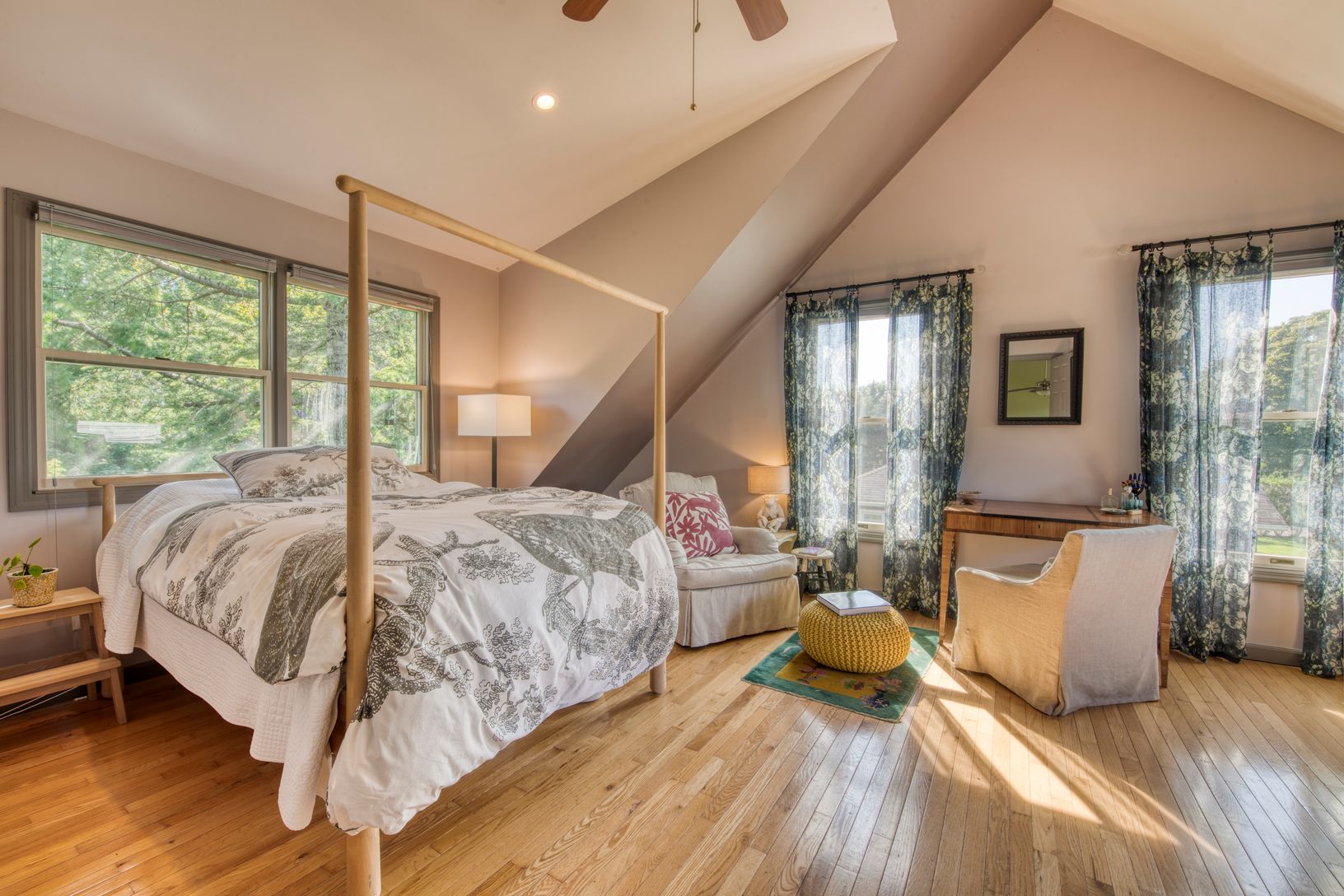 A perfect Remsenburg gem featuring 3 bedrooms, 3 full bath, idyllic, open concept living spaces with spectacular vaulted ceilings and an abundance of natural light. The great room, large chef's kitchen and dining space open to the magnificent grounds. On the main level there are two bedrooms, one is an en suite, plus there is a second full bathroom. On the second floor is the primary en suite bedroom and a loft with lovely visitas of the back