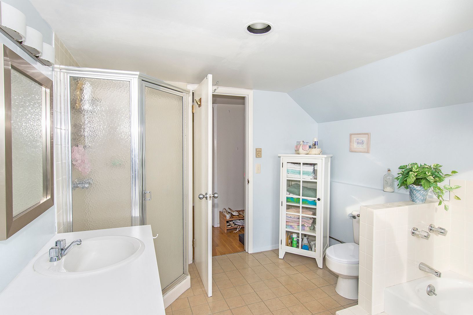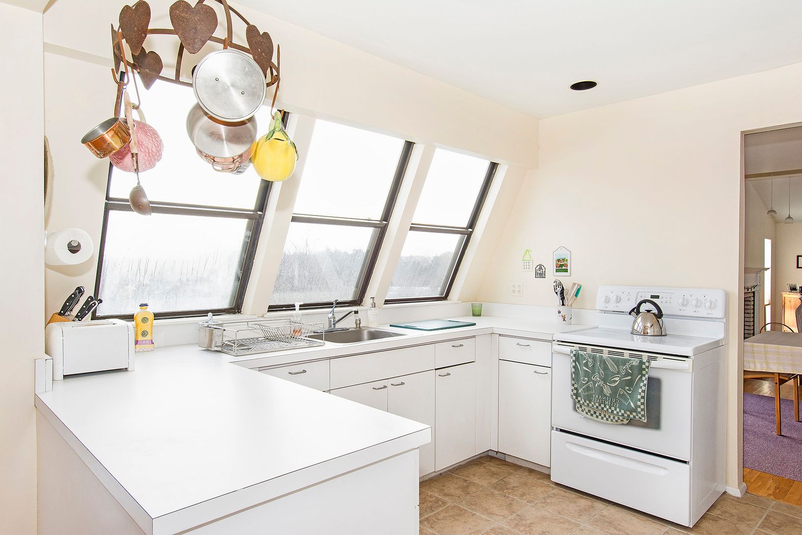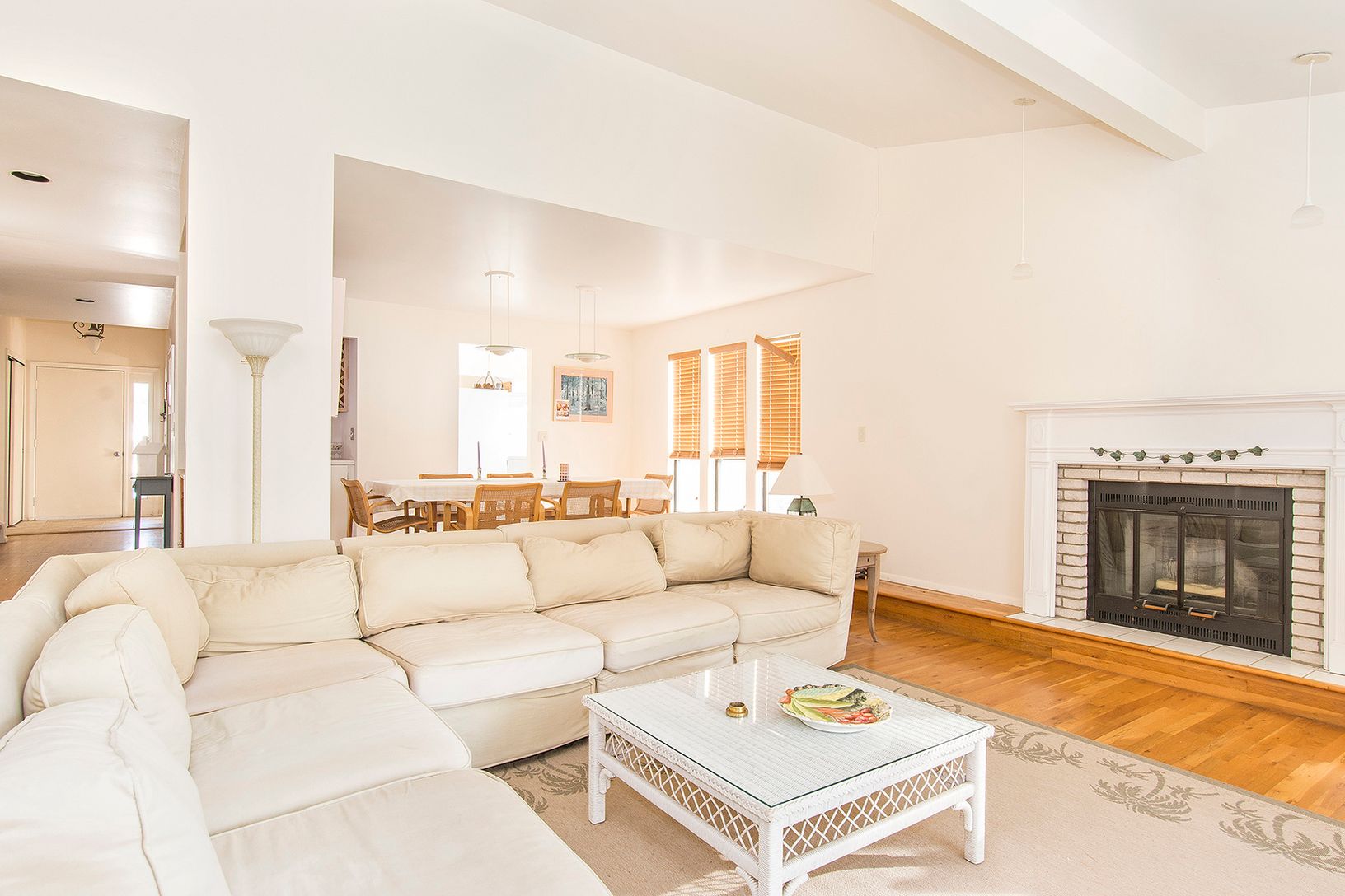 Tri - Level, 3 bedroom + a family room / bedroom, 1 dining room & 1 breakfast dining room along with kitchen and living room. Fireplace and upper and lower decks outside, Double outdoors showers.New roof, 4 skylights, one opens for cool breezes that we have on the top of the hill. well insulated.Tile floors on ground floor, wood floors in the rest of the house.