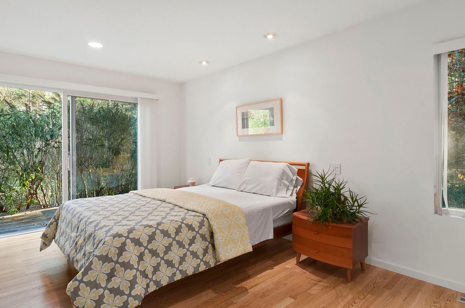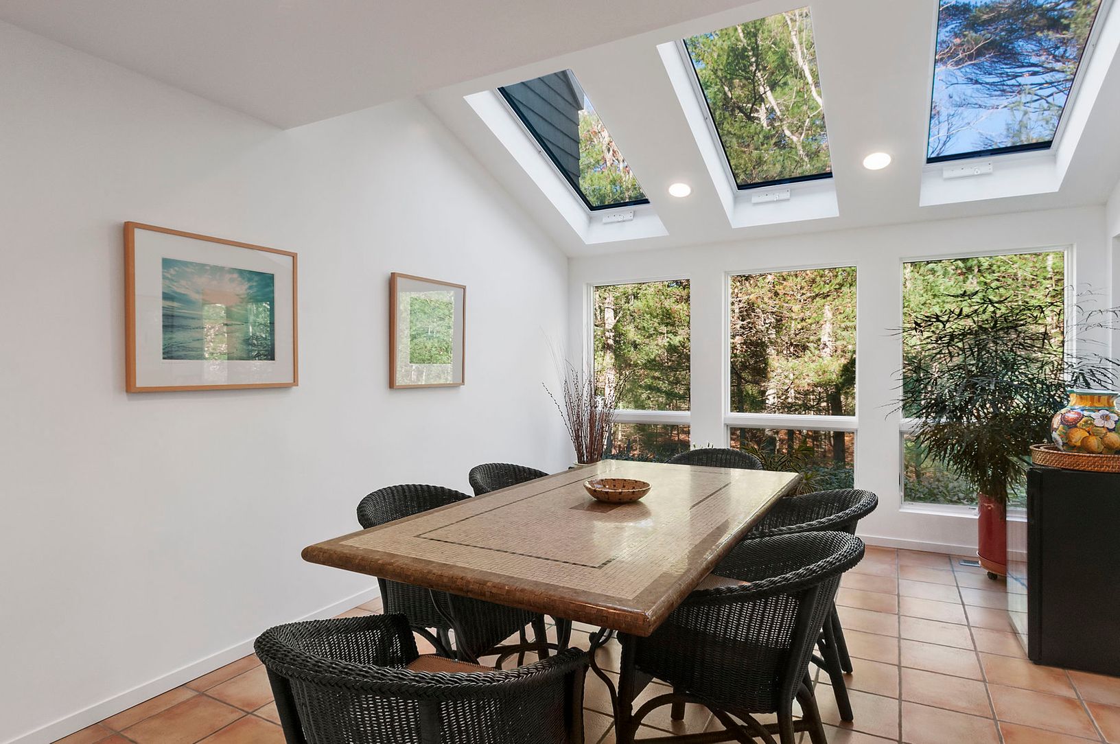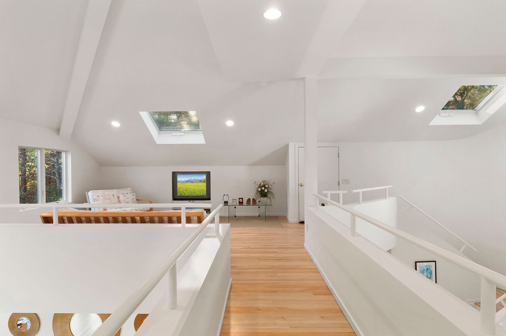 Down a long driveway and bordered by reserve sits this 4.2 acre oasis with a fish pond and gorgeous waterfall. The East Hampton Contemporary is about 4,200 sf with 4 bedrooms and 3.5 baths. When you enter the home you will notice the double-height ceilings in the living room with a wood-burning fireplace, plus the large glass windows letting in lots of light, which looks out to the backyard with lush landscaping and towering pines. The open fl