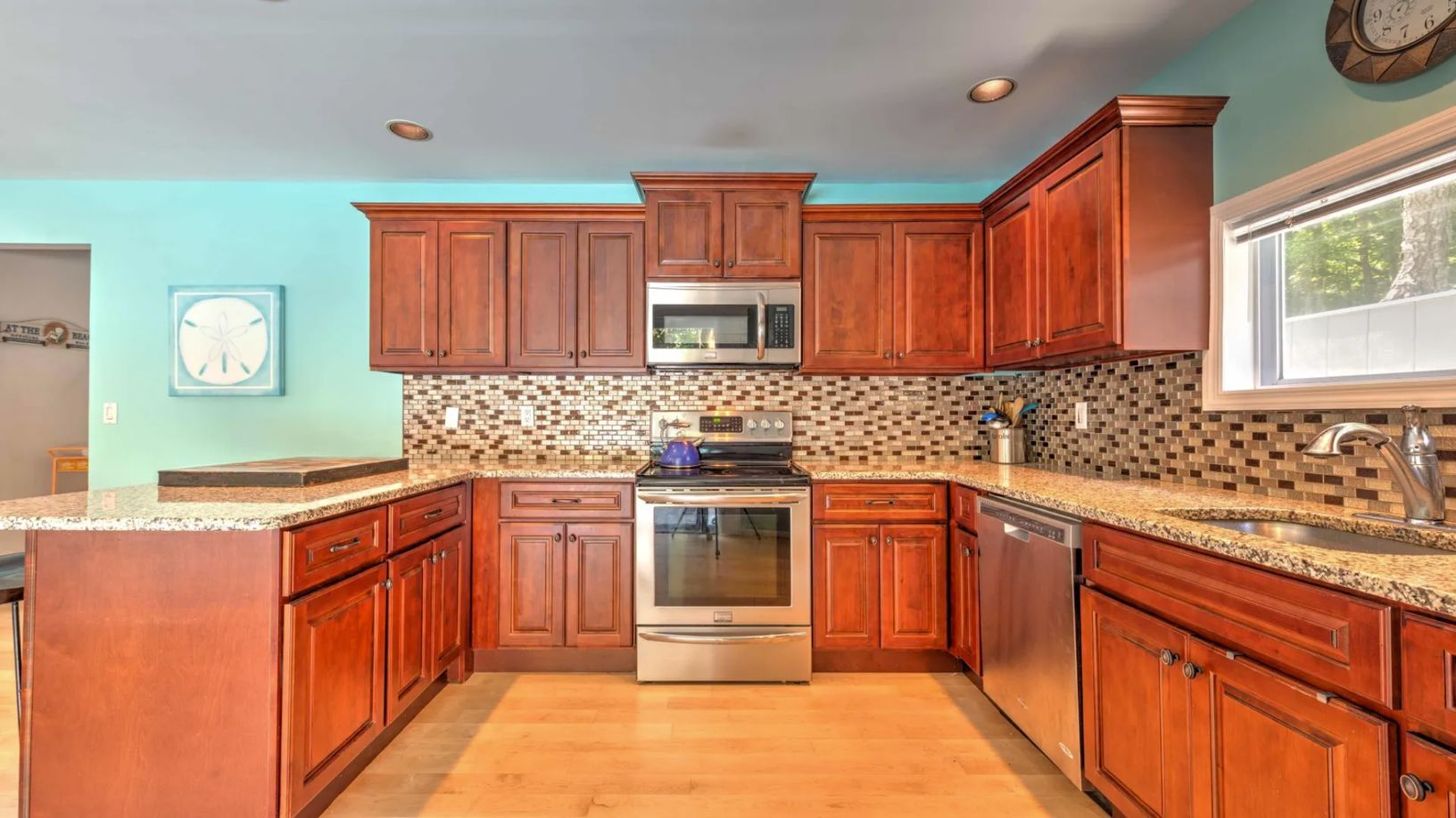 Spend your summer in this inviting 4-bedroom, 2-bath contemporary home nestled in East Hampton's sought-after Bay Beach community. This cheerful 2-story retreat features an open floor plan with vaulted ceilings and sunlit interiors, creating a perfect setting for relaxation.