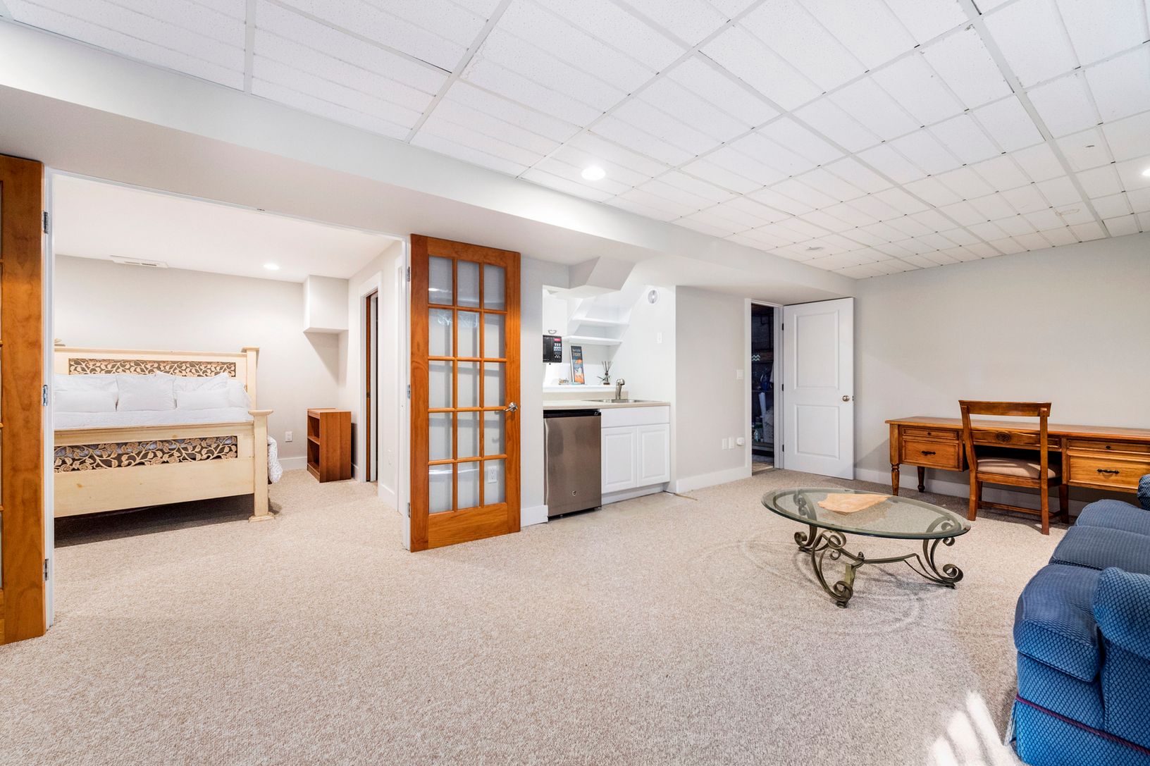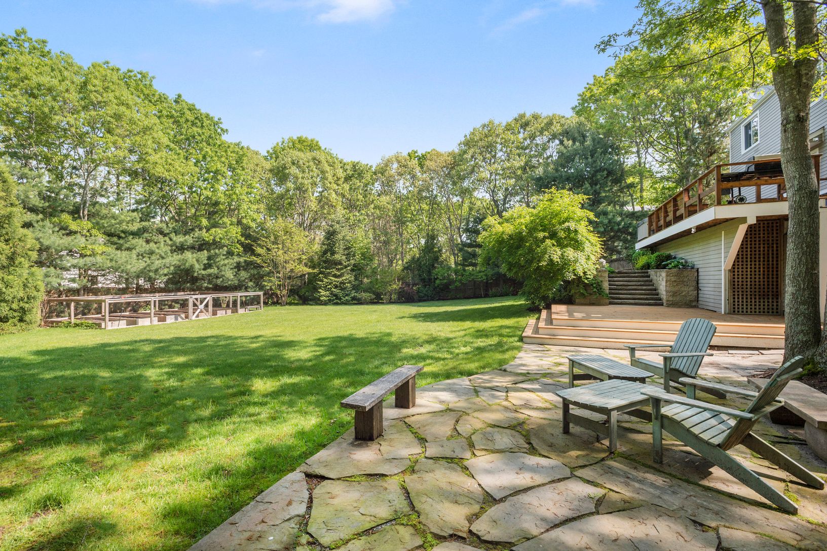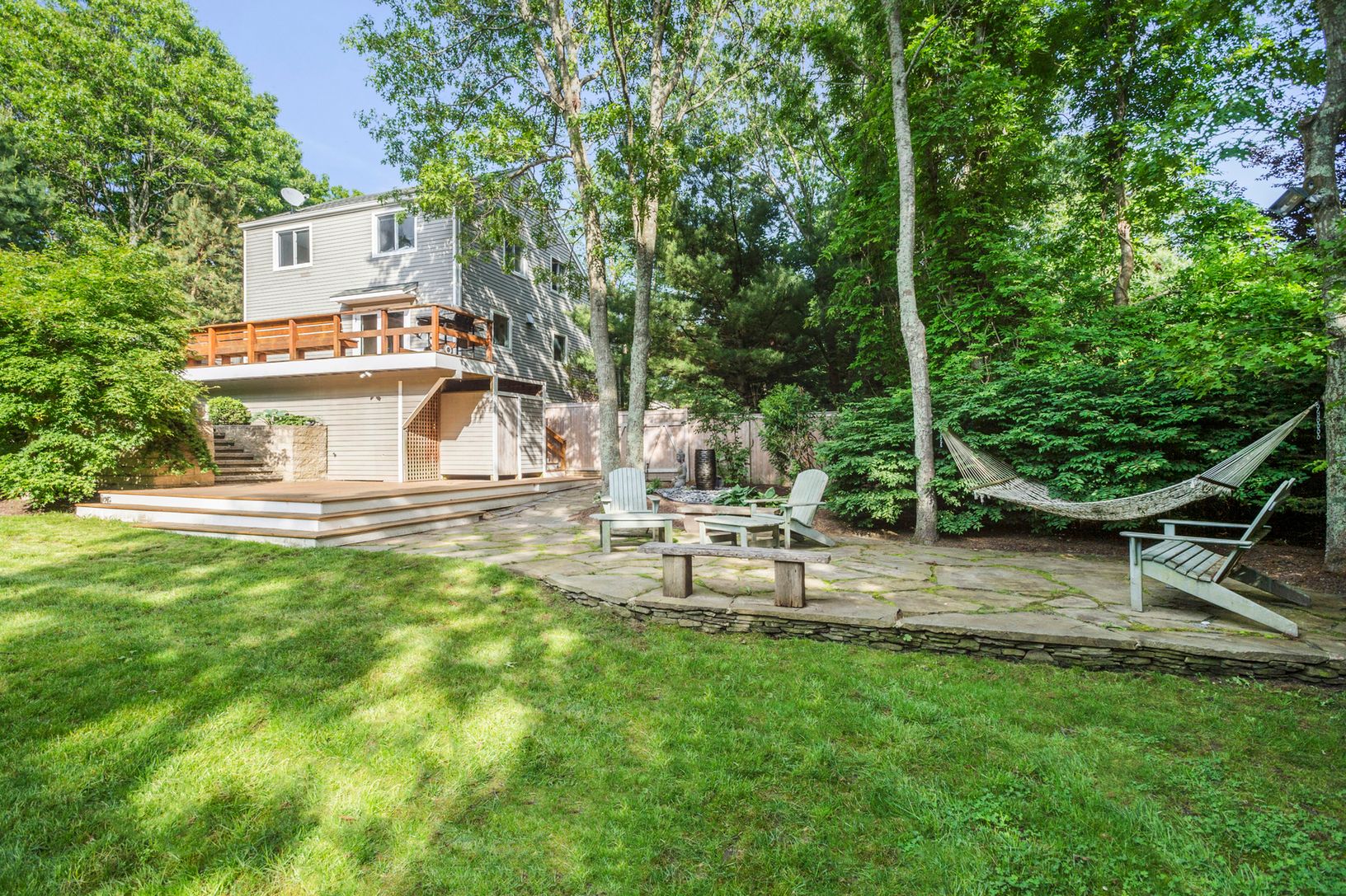 This perfectly maintained home sits on a lushly landscaped half acre at the end of a quiet cul-de-sac. An open floor plan on the first floor with living room, separate dining area and a brand new gourmet kitchen with granite countertops and high end appliances. Off the kitchen is a first floor bedroom and a full bath. Upstairs offers two generous sized guest rooms that share another full bath and a loft area perfect for lounging. A finishe