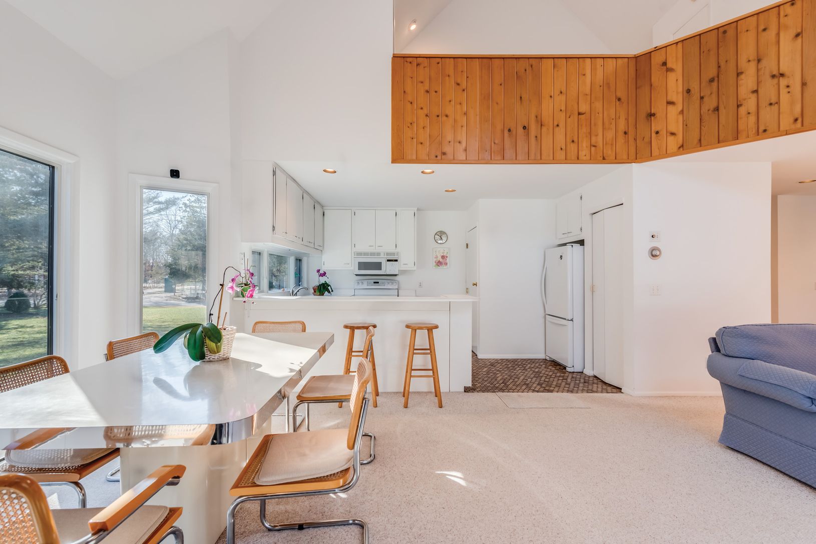 Impeccably maintained with nice curb appeal, this Quiogue postmodern offers 2,600+/- sq. ft. of living space and is located on a quiet and desirable street only minutes from the beaches and charm of Westhampton Beach's Main Street. The spacious first floor features an open floor plan with vaulted living room with wood-burning fireplace, kitchen, master bedroom with large walk-in closet, second bedroom with bath, and laundry/mudroom. Upstairs,