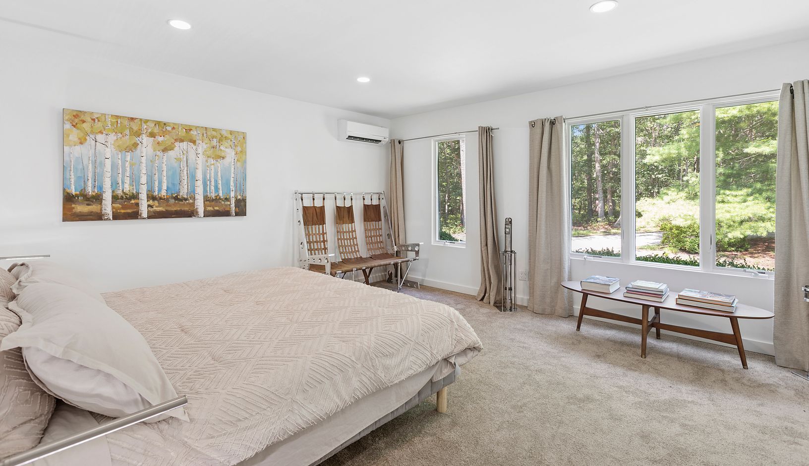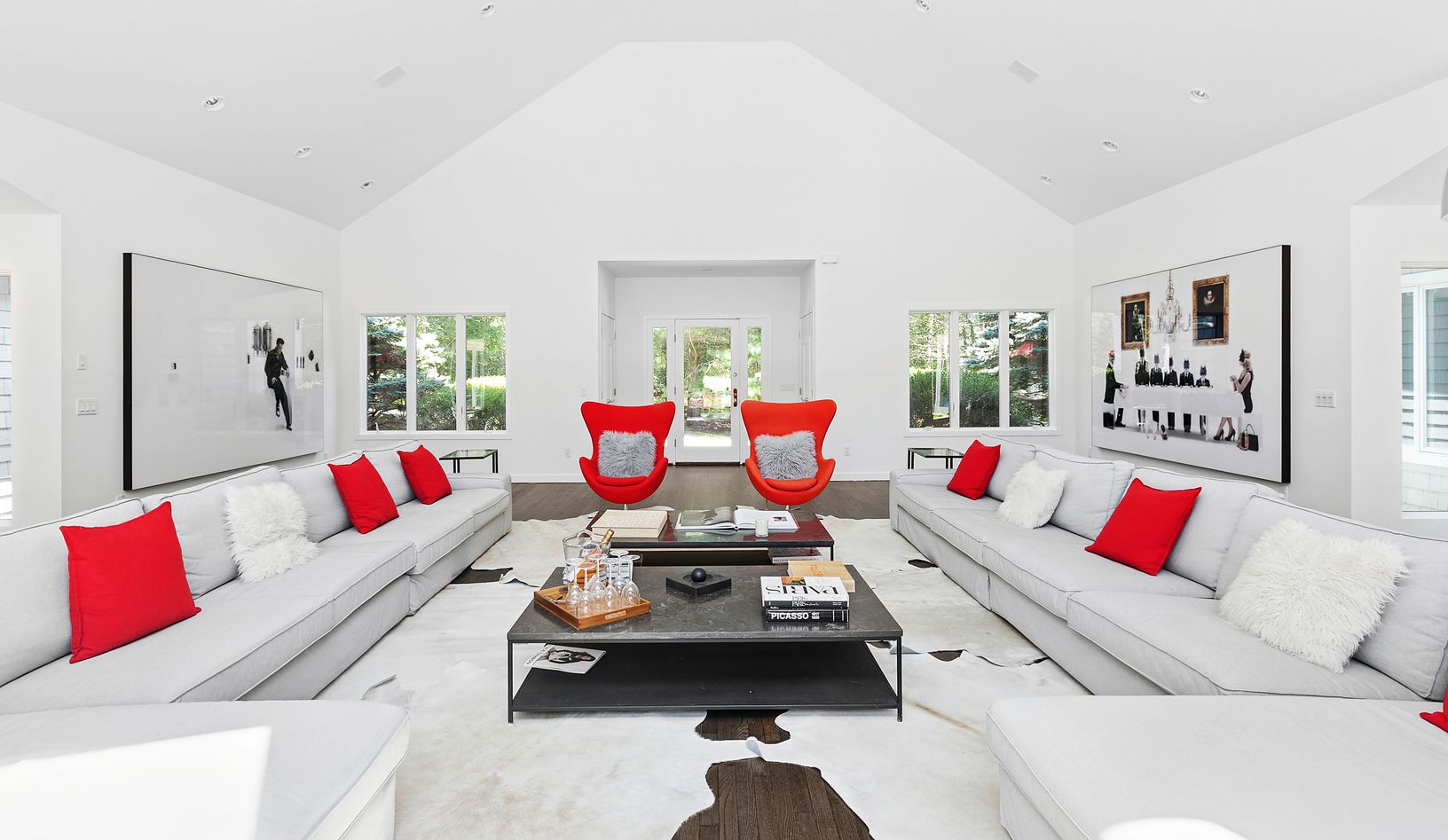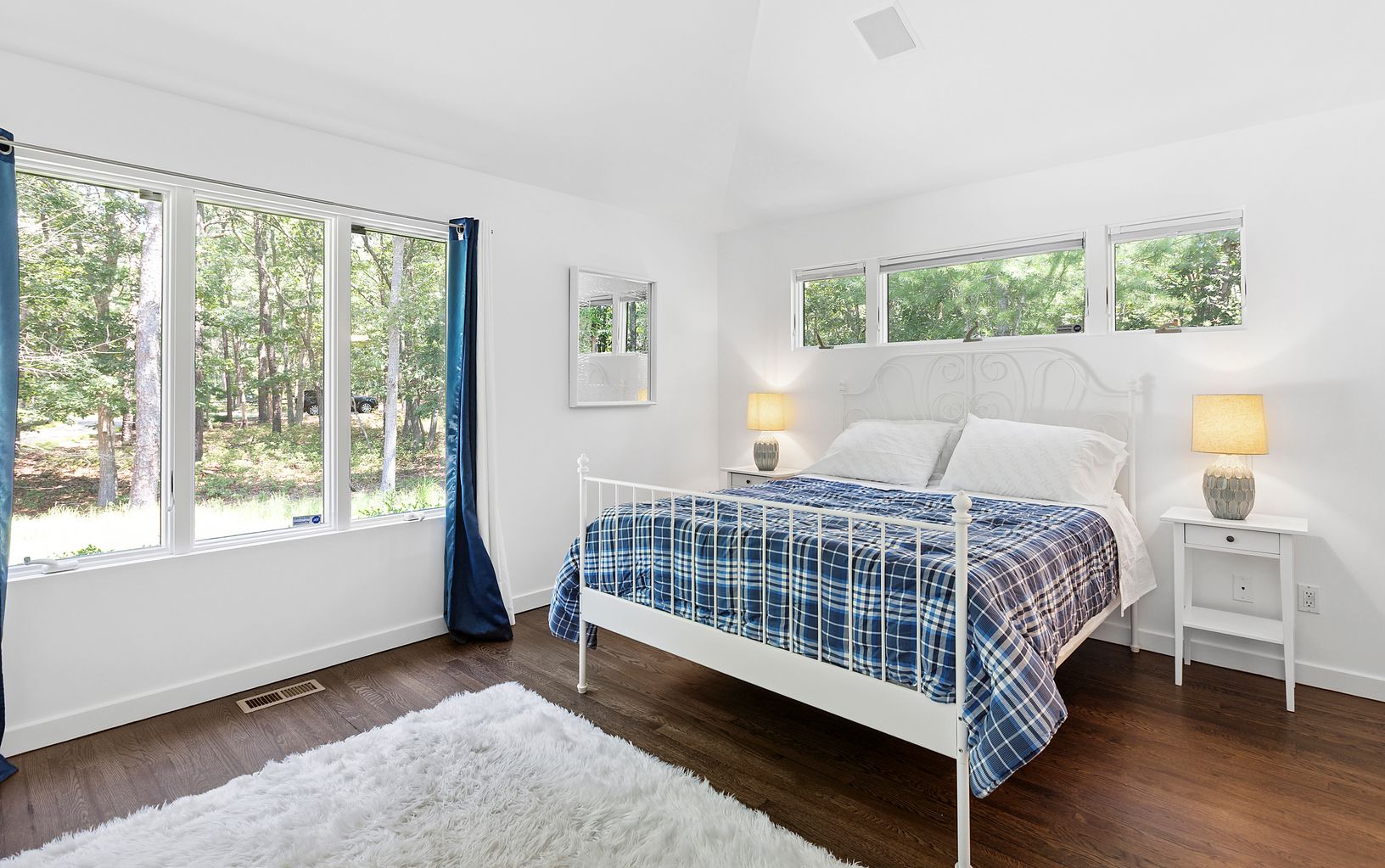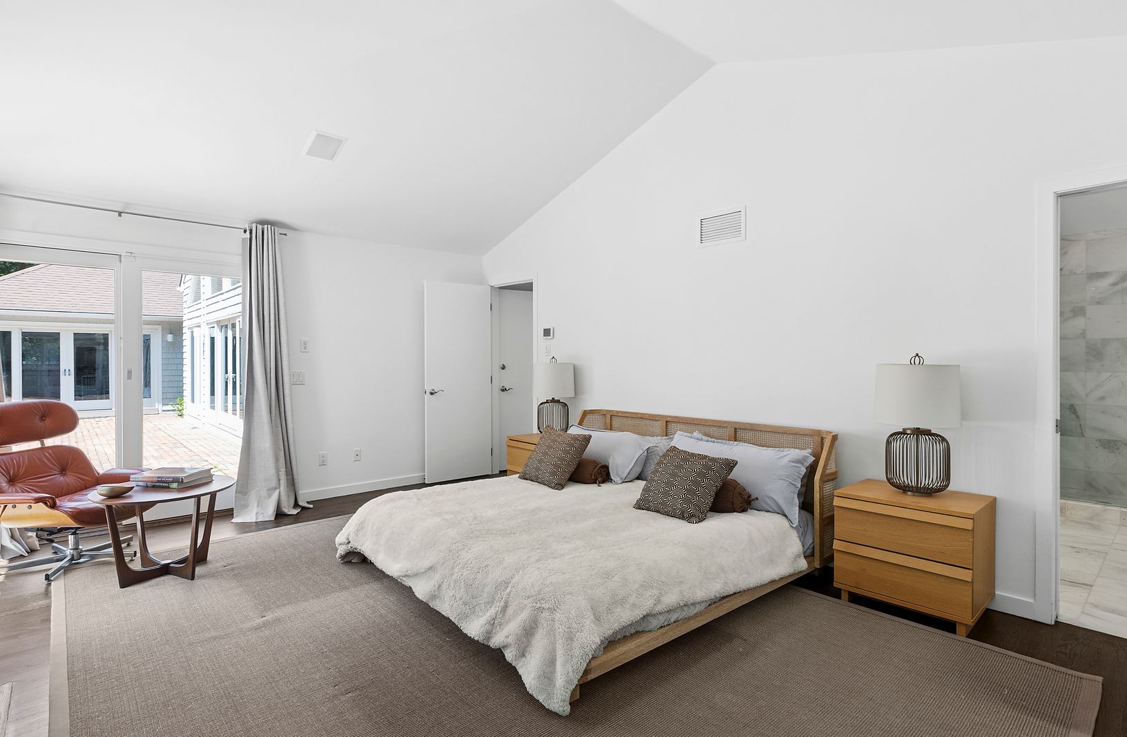 Recently refreshed, this light-filled Post Modern residence offers effortless one-level living on 2.5± acres in East Hampton's Northwest Woods. Overlooking 13 acres of reserve with breathtaking sunset vistas, the home features 6 bedrooms, 6.5 baths, and an open-concept layout with a soaring double-height great room, walls of glass, and a seamless flow between the eat-in kitchen, dining area, and expansive exterior spaces. Sliding doors through