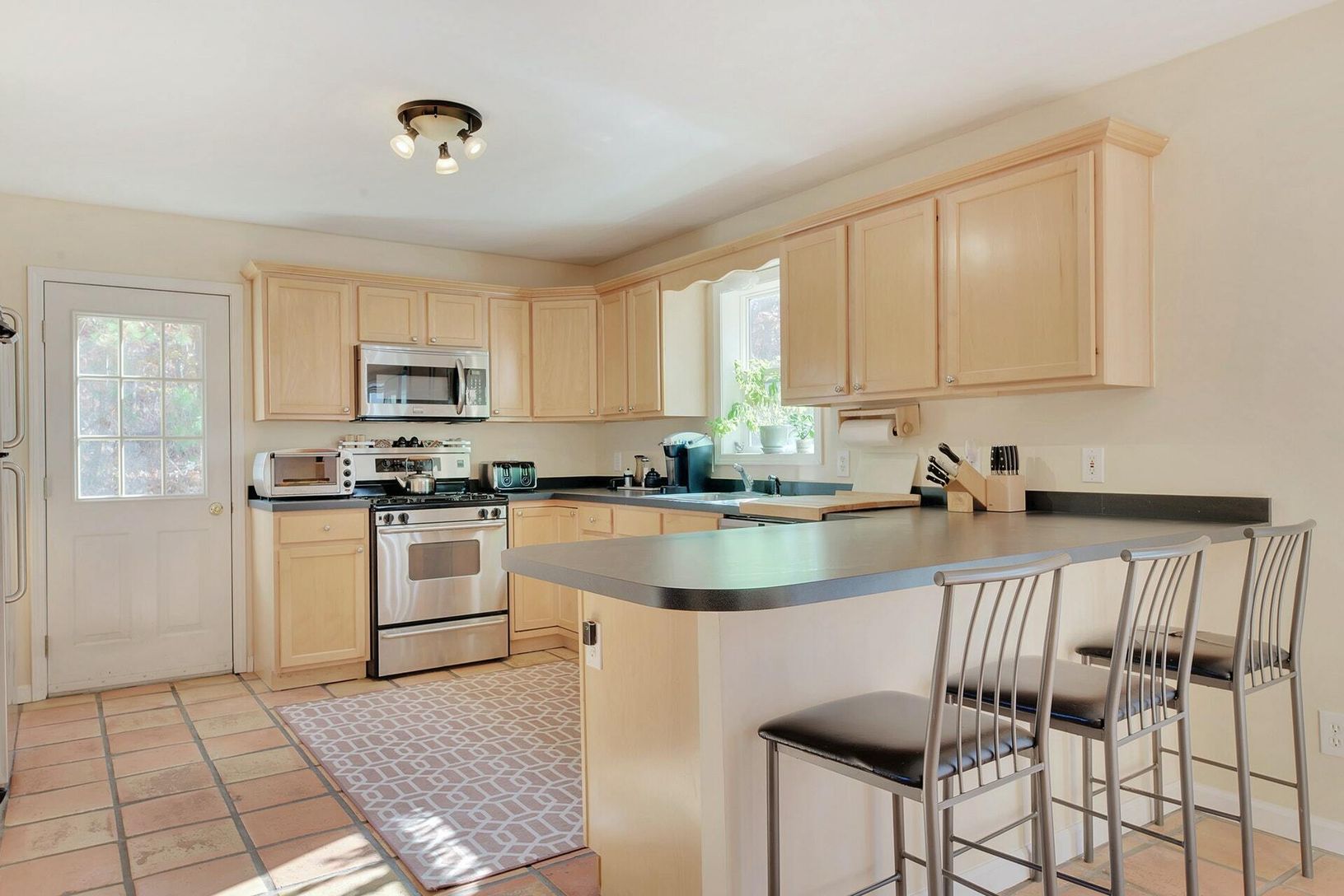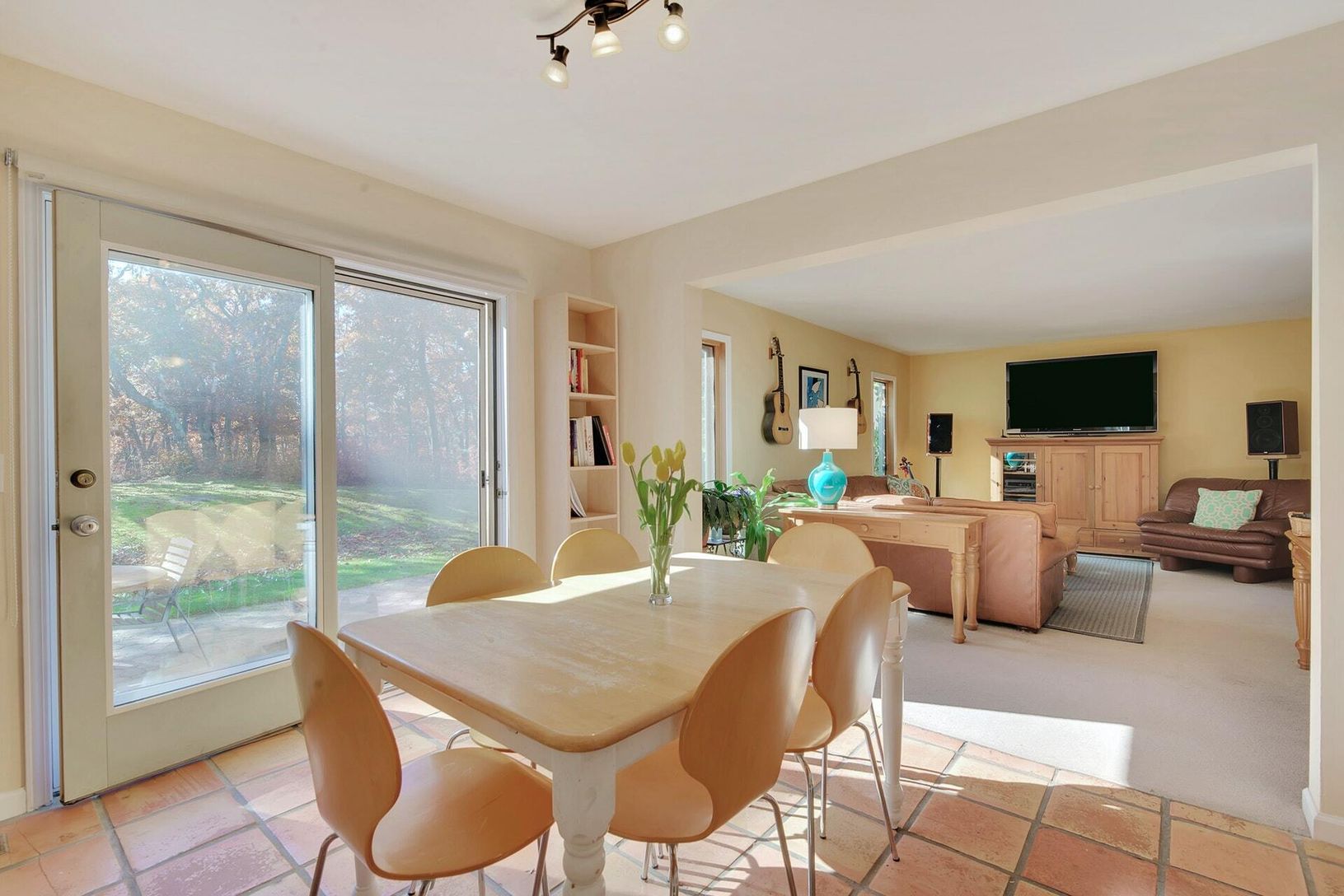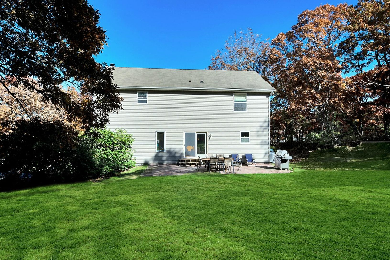 Peaceful tranquility awaits you in this beautiful Post Modern home in desirable Red Creek Ridge in Hampton Bays. Almost an acre of property that backs up to town preserved land makes this an amazing private retreat. The home boasts a large living room with a fireplace, eat in kitchen and great room, formal dining room, four bedrooms, two and a half bathrooms. Step outdoor to your beautiful patio with plenty of room for a pool and endless views