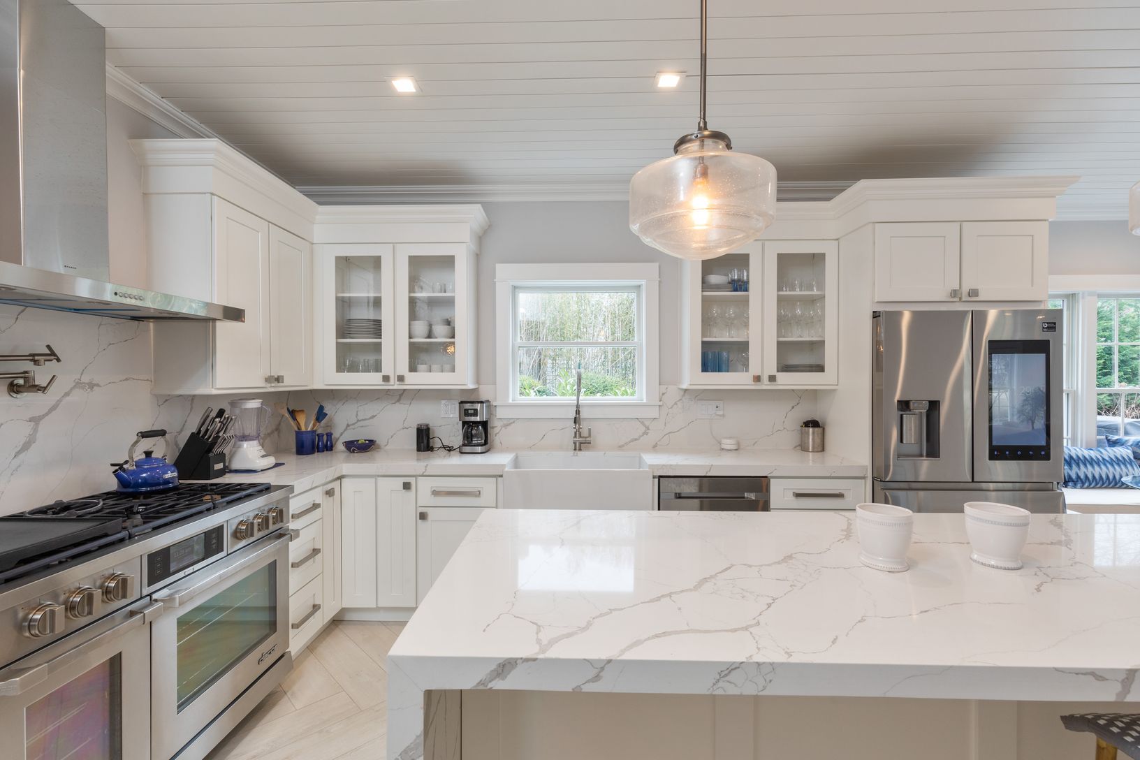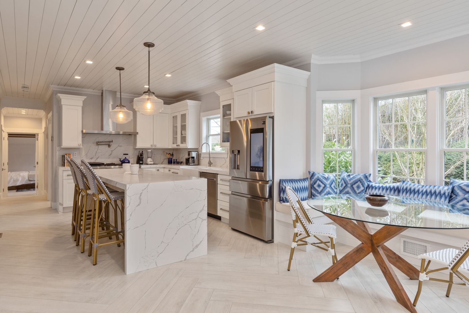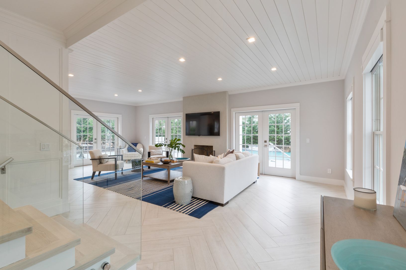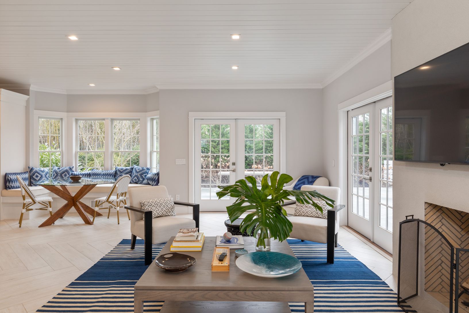 Living is easy in this beachy casual beautifully designed and crafted home Be the first to rent this tastefully furnished and light-filled four bedroom four and a half bathroom home set on .35 acres .Home has living area with fireplace flows through to a sleek and stylish center island gourmet kitchen and separate dining room. The living area's glass sliding doors open up to a spacious patio with heated,gunite saline pool with waterfall and