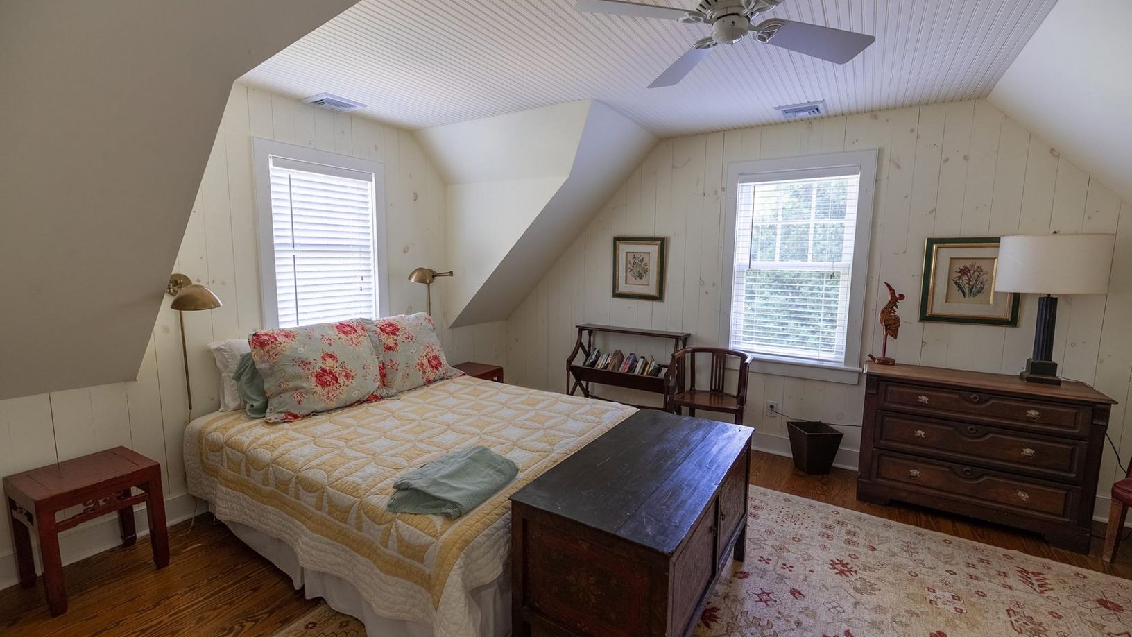 In the 3-bedroom/2.5-bathroom main house, claim a space in front of the living room’s fireplace, or find a place to call your own in the plush family room, private library, or serene screened porch near the garden. For even more privacy, escape to the master suite, with