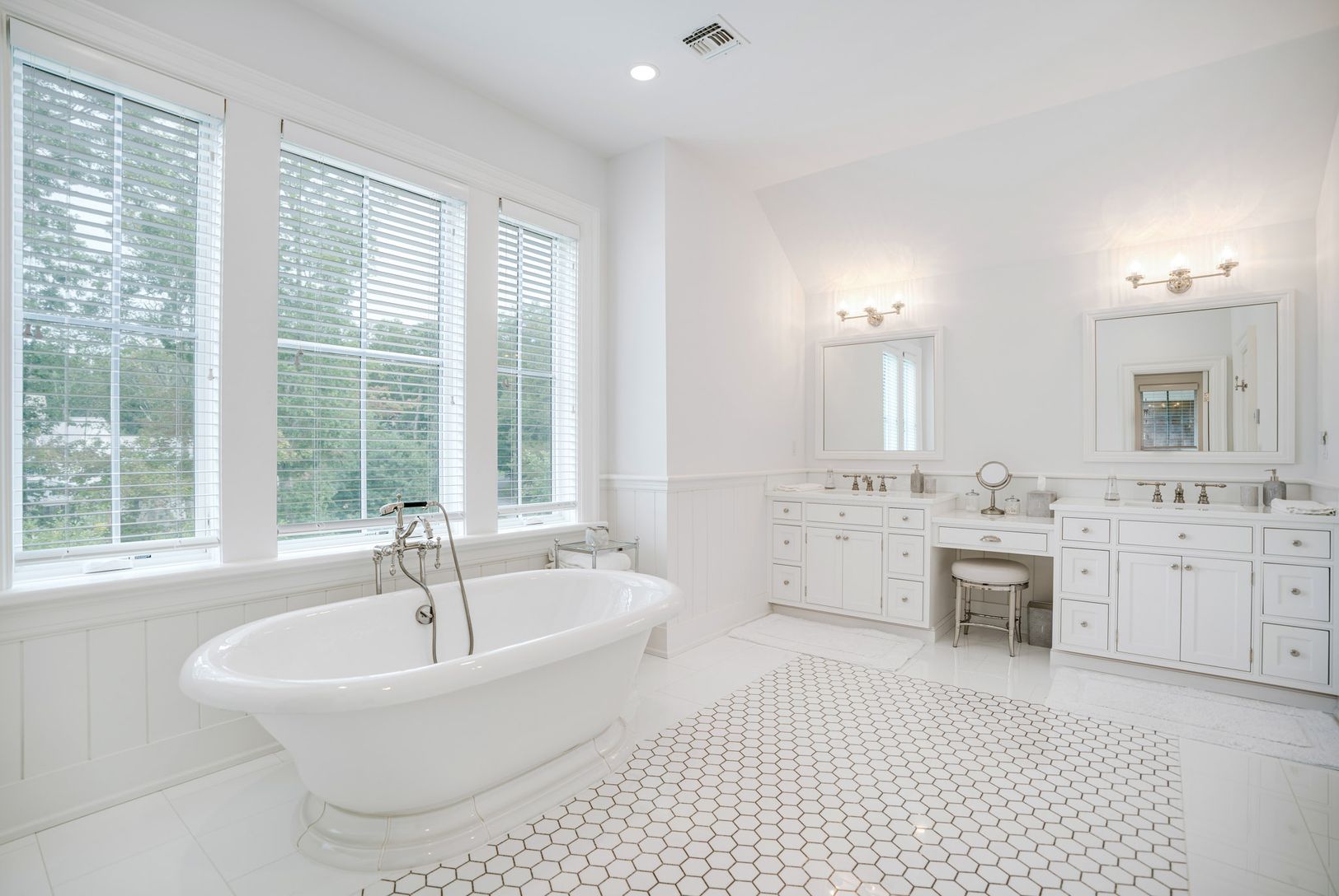 Offering complete privacy in Bridgehampton north, minutes from ocean beaches, equestrian or golf pursuits, and shopping and dining on Main Street, this immaculate 6-bedroom shingled traditional sits on a peacefully secluded acre with a heated, gunite pool and spa, idyllic outdoor space, and a finished lower level with theater. The recently built and meticulously maintained home opens on a paneled entry foye