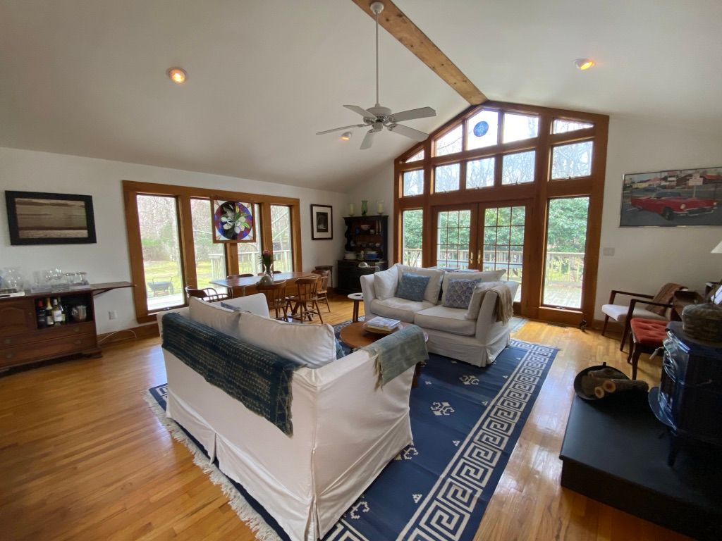 Enjoy this three bedroom, two bath home on large private lot, secluded down a private lane and surrounded by woods. Spend the summer in a relaxing cottage and enjoy the peaceful beauty and pristine ocean beach just minutes away. Close to Amagansett and East Hampton Village. Enjoy wonderful outdoor dining on the large deck or in the screened-in porch, as well as an outdoor shower. A separate studio cottage on the property is also available for