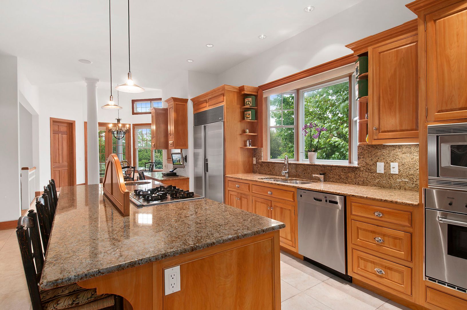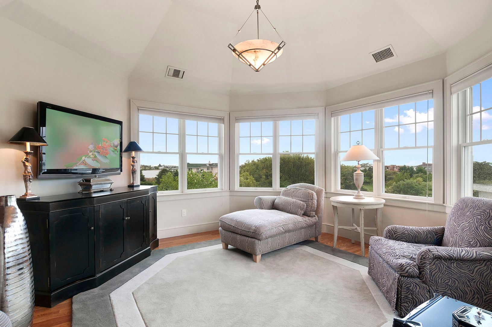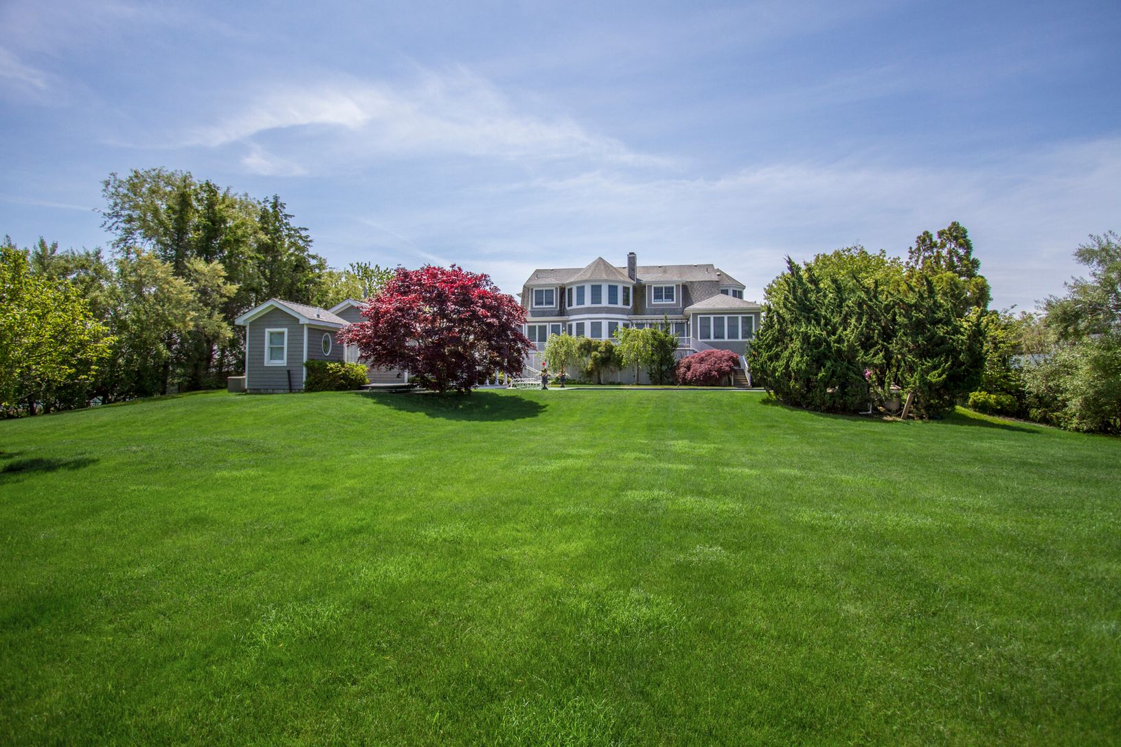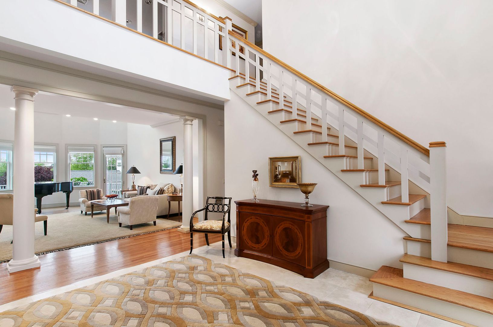 This stately Post Modern located on one of Westhampton Beach's most desirable streets offers 5,500 square feet and bay views. The spacious foyer with vaulted ceilings leads to the light filled living room. Cozy media room, large dining room, custom eat-in kitchen with granite counters and high end appliances. The first floor also offers serene sunroom, two guest bedrooms with one bath. The grand master suite offers tiered sitting area and wate