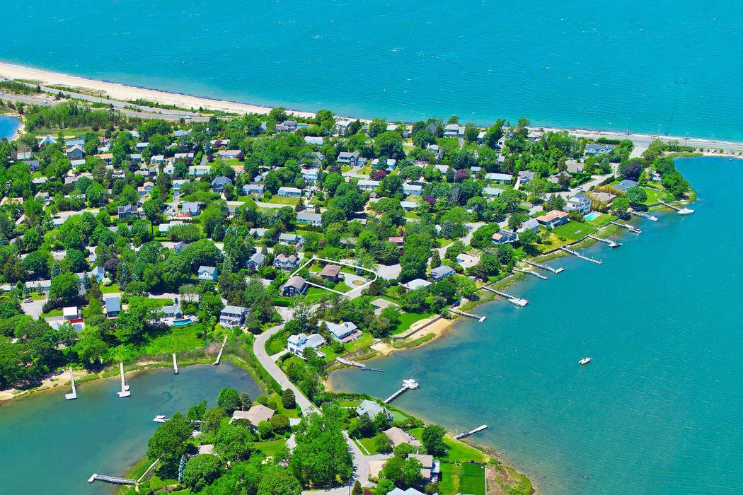 This light-filled contemporary offers four bedrooms and three-and-a-half baths, with an elevated second-floor living area showcasing bay vistas. Fully renovated throughout, the home is ideally situated near Long Beach and just minutes from Sag Harbor Village, making it an inviting summer retreat. An open kitchen and living area feature newly installed stone counters and stainless fixtures. Outdoors, a heated gunite pool and a patio provide eff