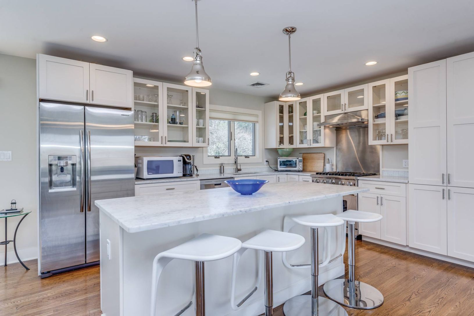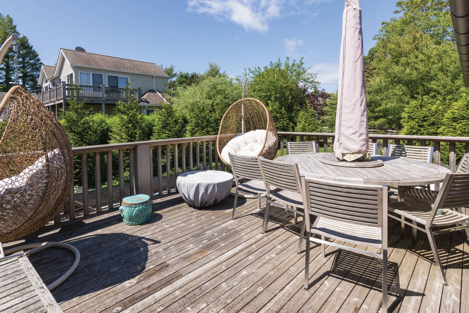 Beautifully renovated four bedroom, three and one-half bath contemporary with bay views from second floor living room. Open floor plan, with professional kitchen, marble countertops, and stainless steel appliances. Additional office space with futon. Bathrooms are also all recently renovated. Short distance to Long Beach and minutes from Sag Harbor Village!
