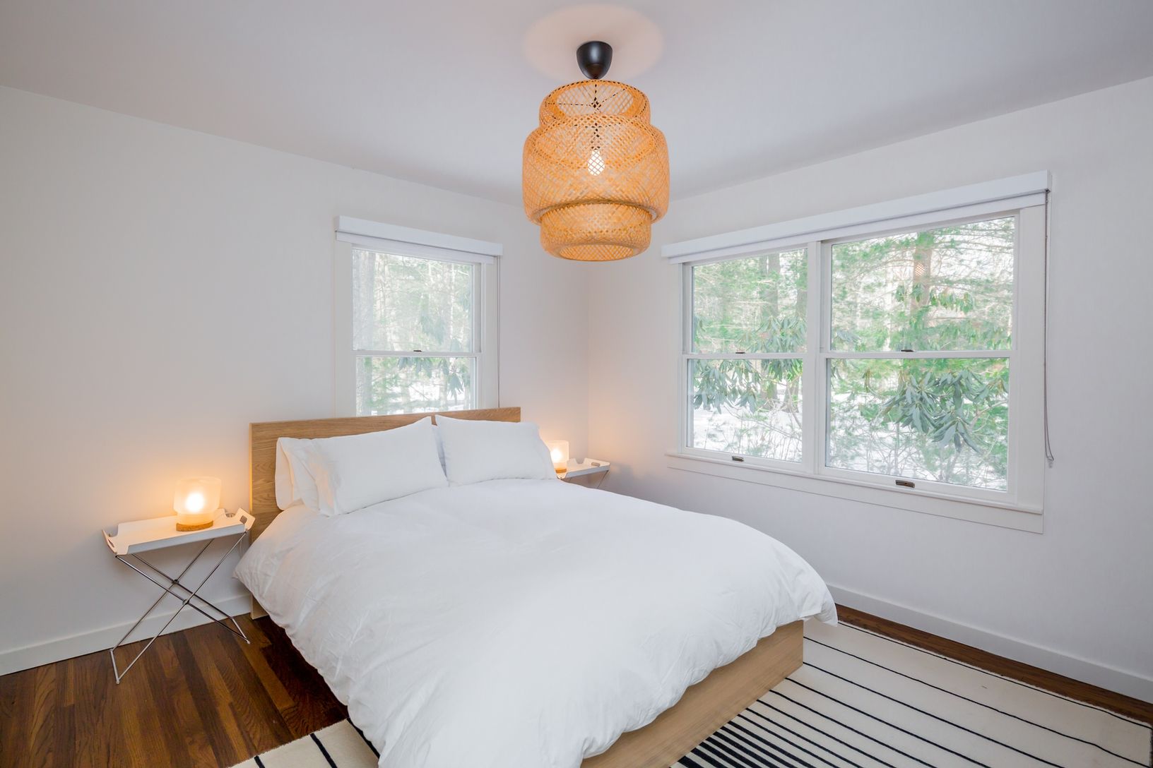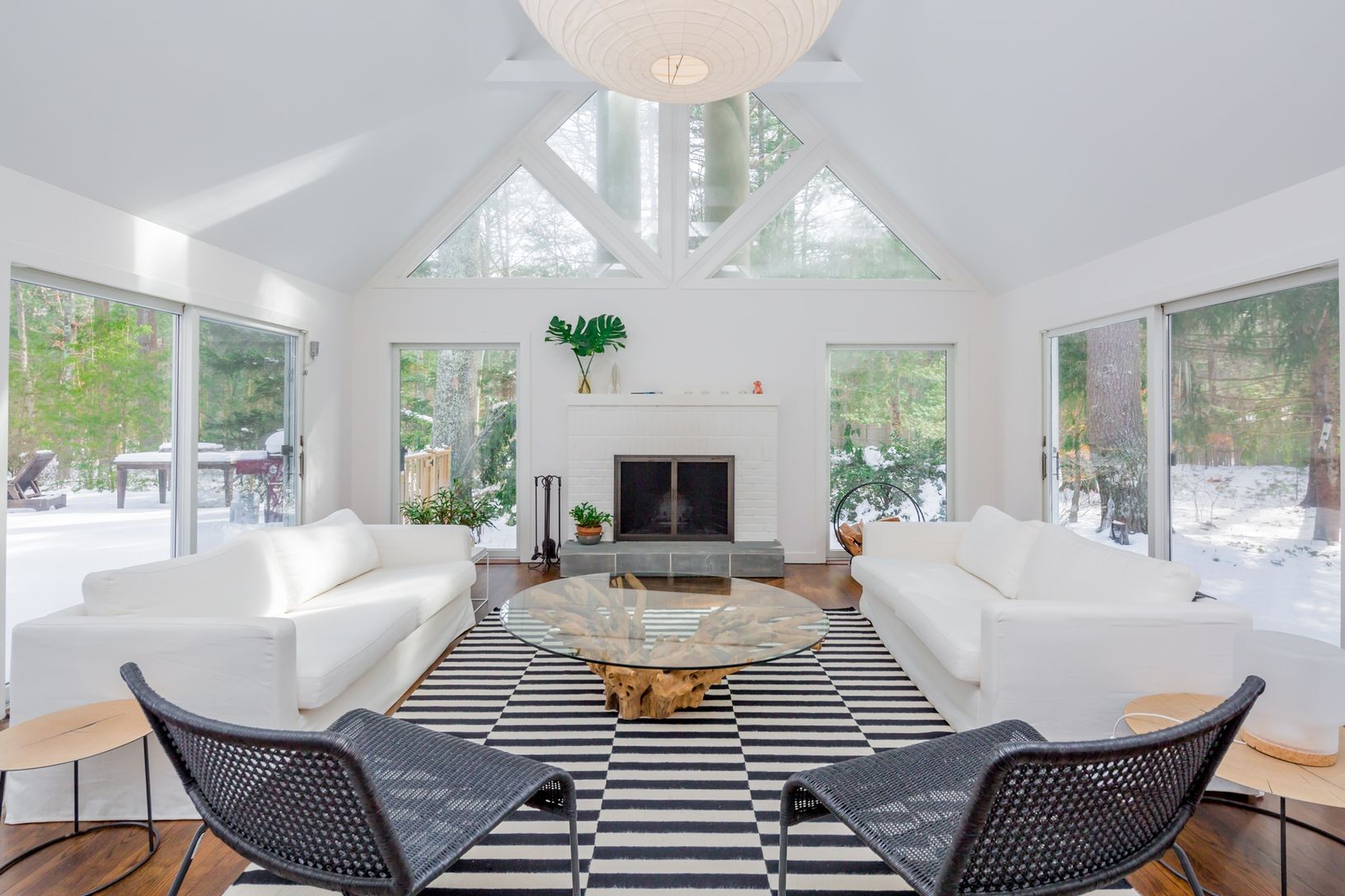 Rental Registration #: 18-429 Completely renovated in 2016 and sited on 1.5 private acres, this one-level, four-bedroom, three-bath home provides the perfect summer getaway. The light-filled living room with a cathedral ceiling and large fireplace opens up to a bricked patio on one side, for grilling and cocktails, and a large deck surrounding a 40-foot heated pool on the other. The 2,500 sq. ft. house includes an open plan kitchen / dining /