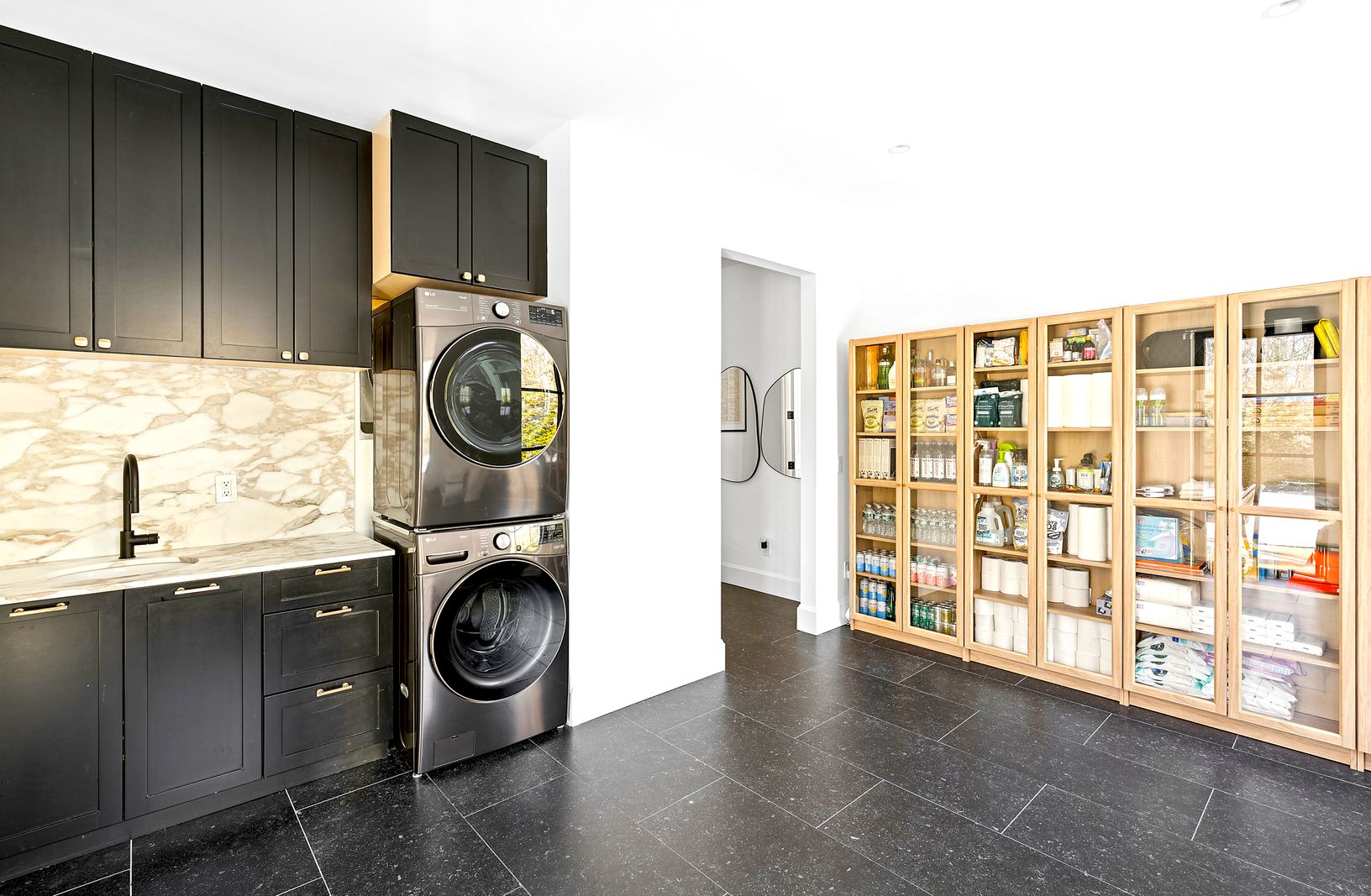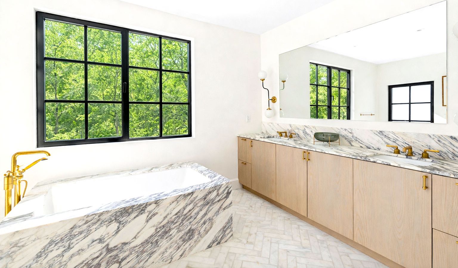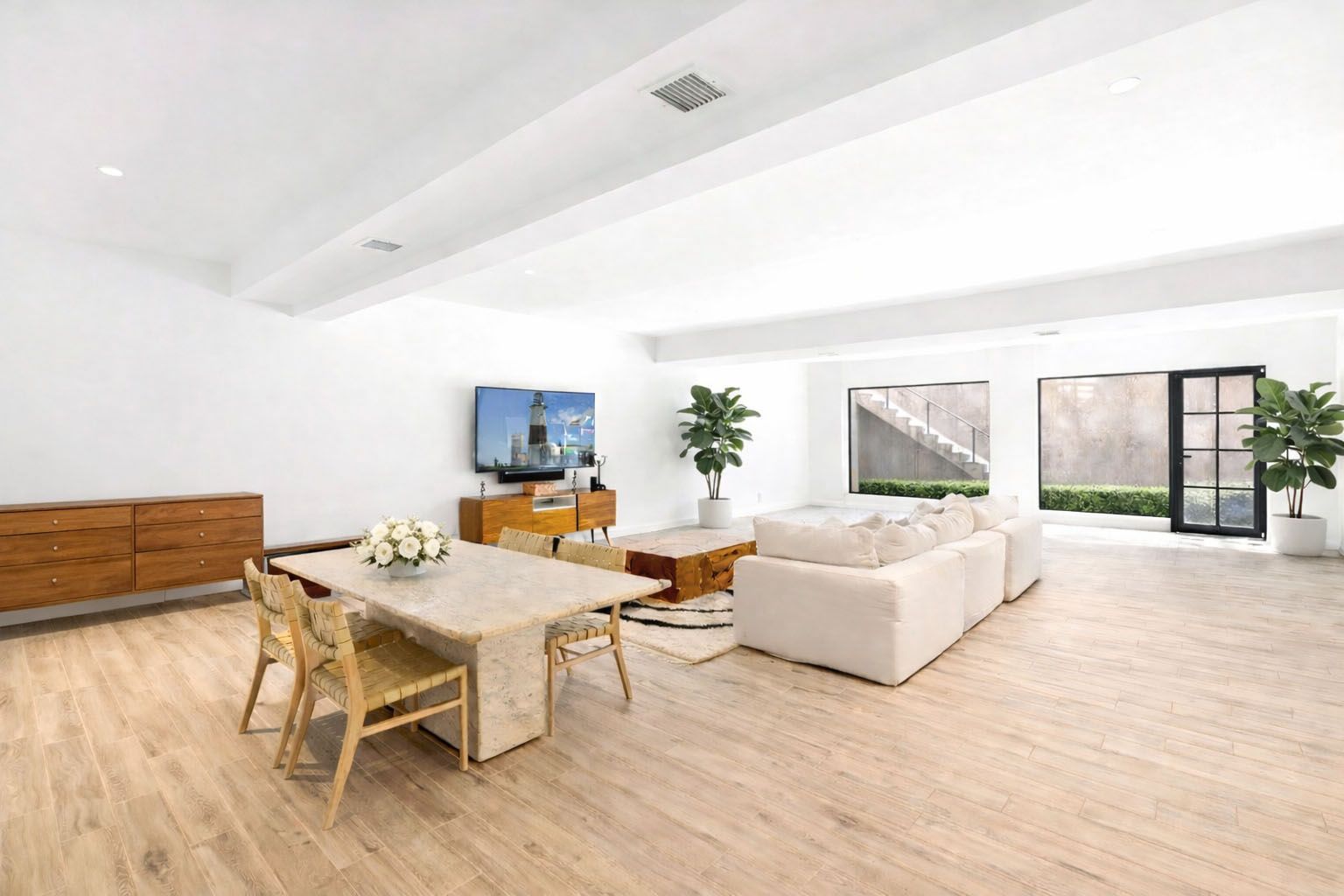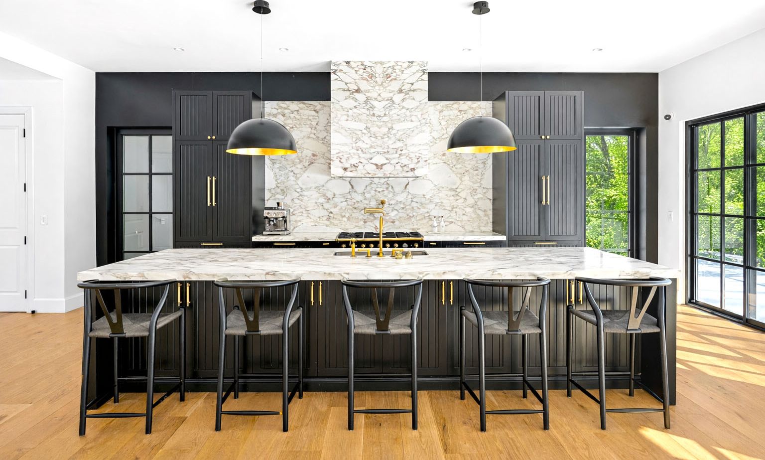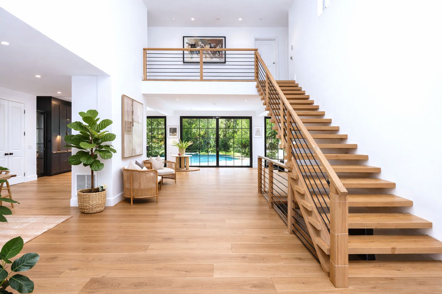 A dramatic double-height entry sets the tone, opening to a soaring grea