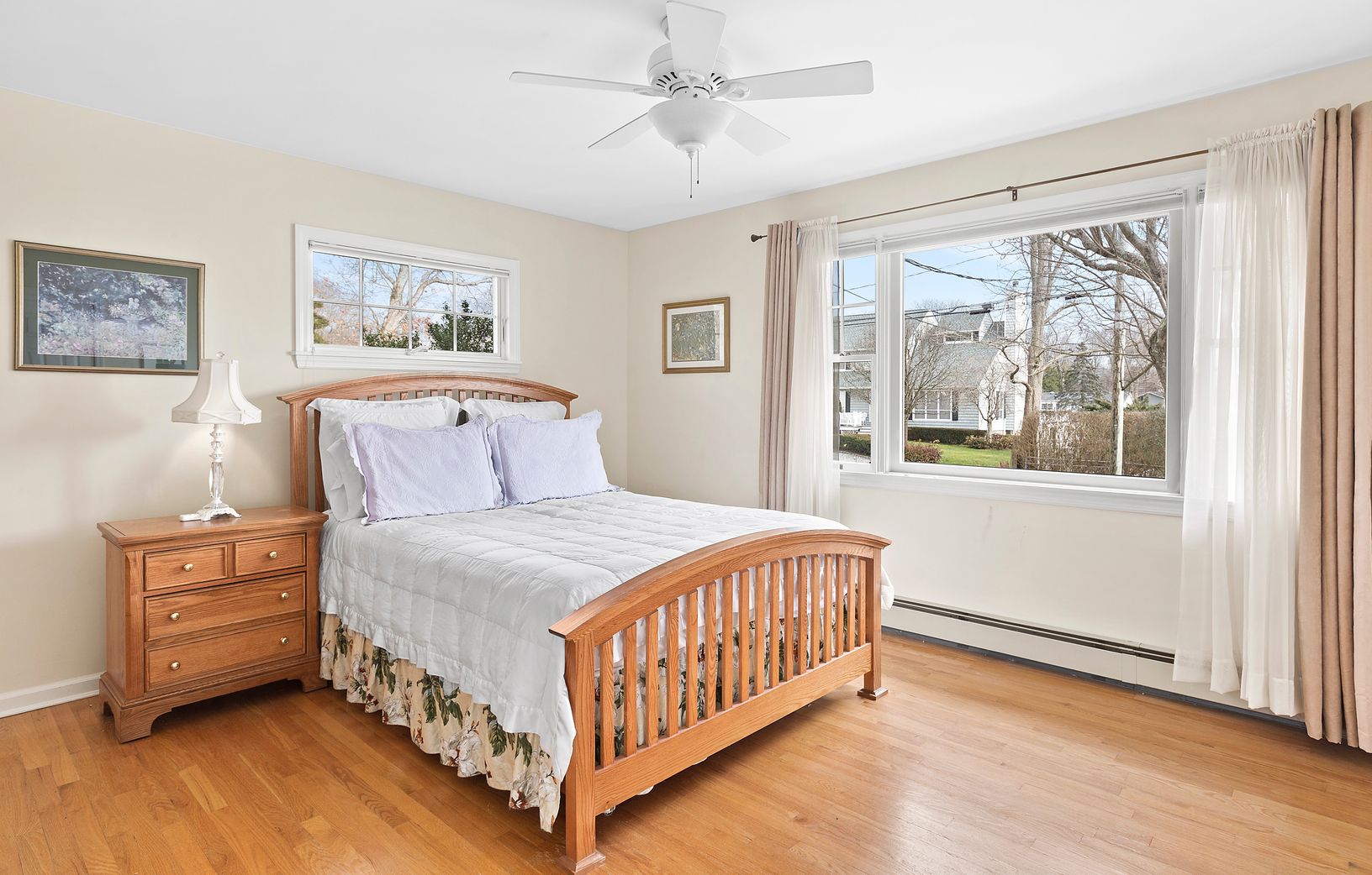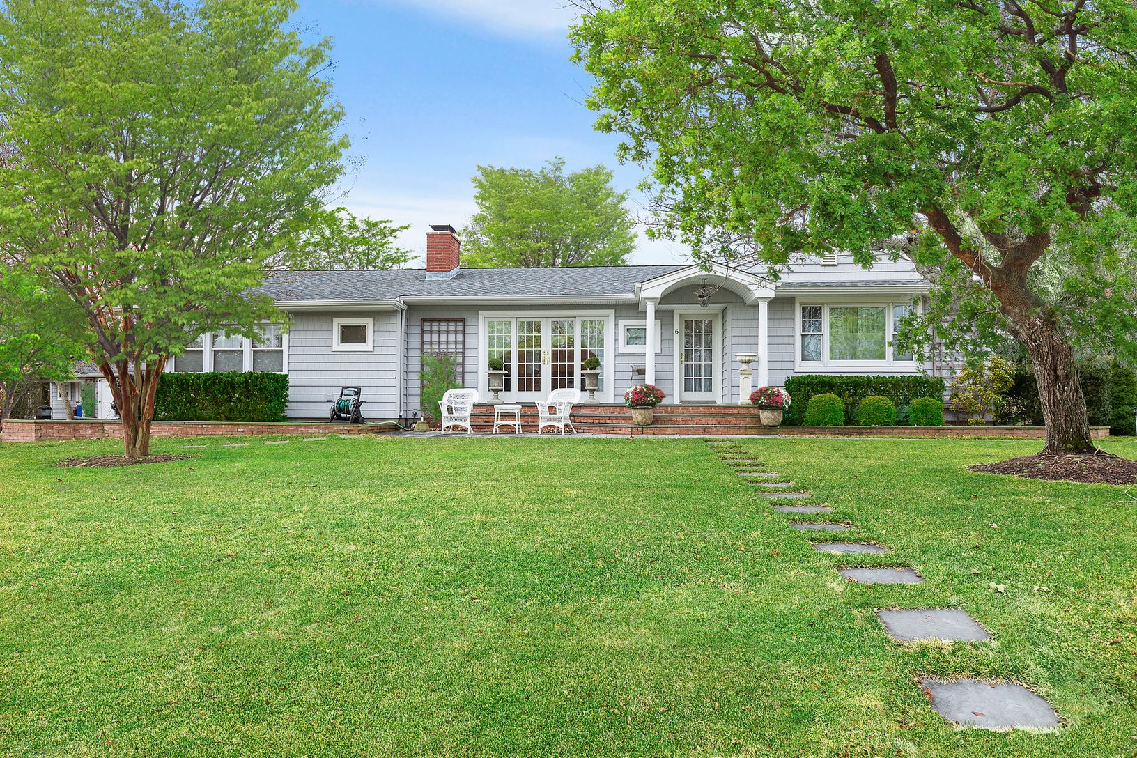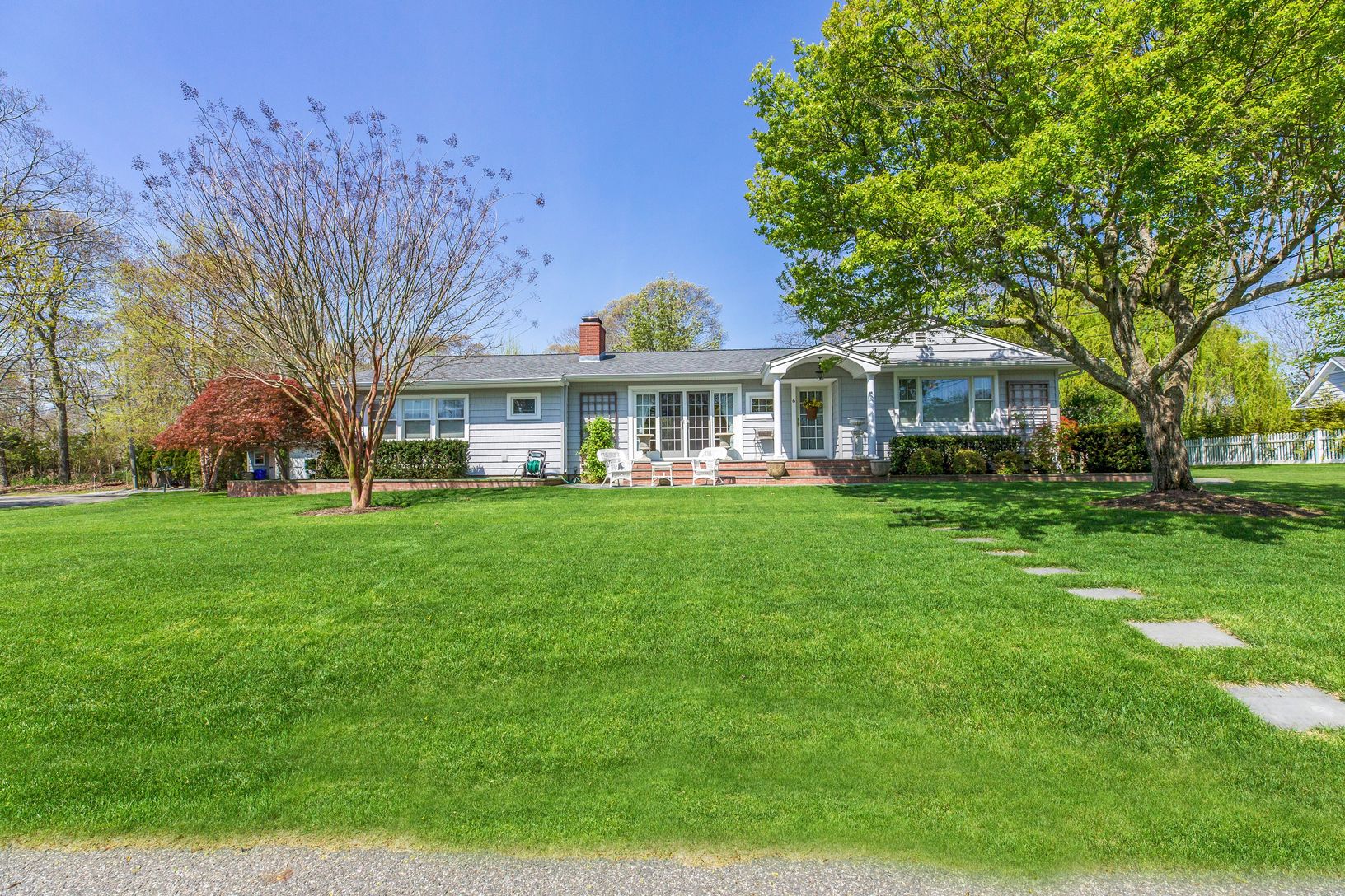 Located in the quaint Wells Lane development, South of Springville Rd in Hampton Bays, enjoy this meticulously updated 3 Bedroom, 2 bath sprawling water view ranch. The open floor plan offers master suite with adjacent sitting room and full bath, updated kitchen, formal dining and lovely living room with French doors overlooking the front courtyard sitting area. The separate 2 additional guest rooms and full bath offer privacy for guests. We