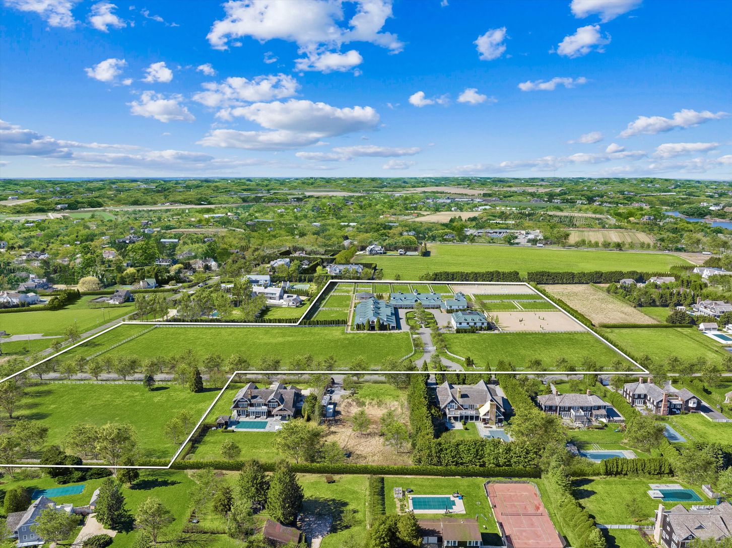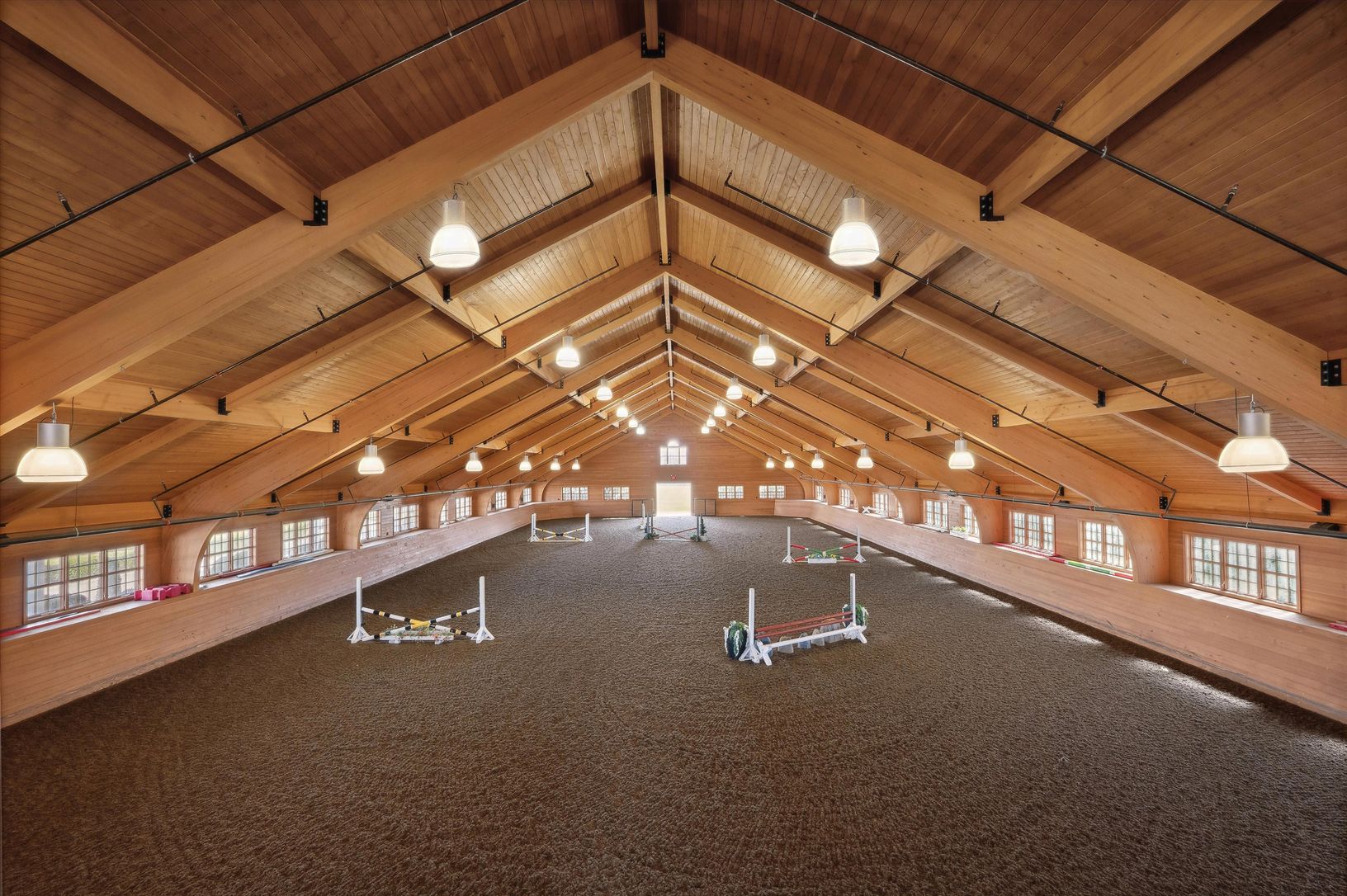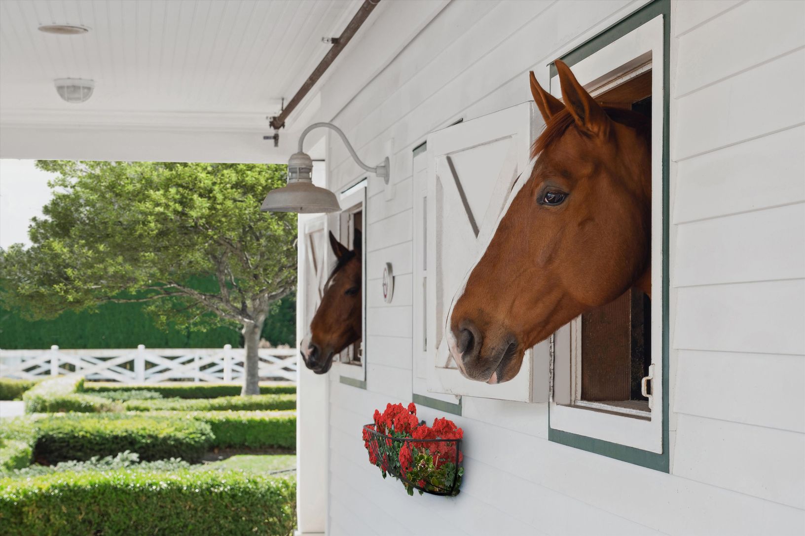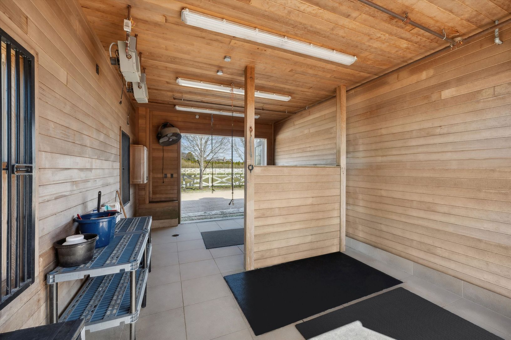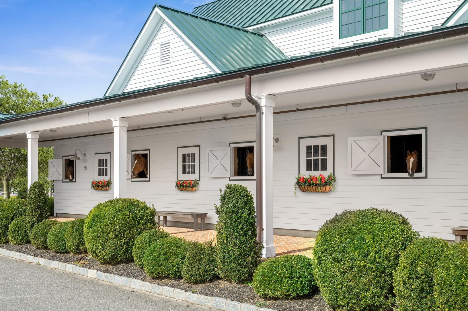 Set upon more than 19 acres of captivating landscape in Bridgehampton South, Khalily Stables stands as a prestigious equestrian sanctuary, catering to the needs of discerning competitors and passionate enthusiasts alike. This exceptional property boasts a wealth of amenities meticulously crafted to ensure unparalleled comfort and convenience for both horses and riders. With 27 spacious stalls, 15 expansive grass paddocks, and two meticulously
