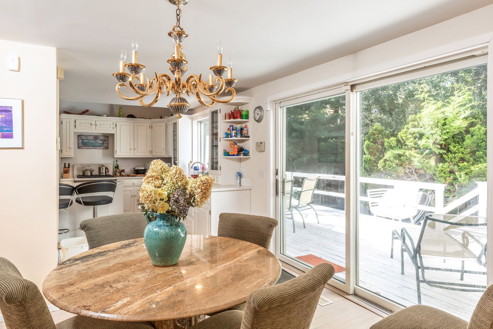 Nicely situated contemporary home featuring privacy and a light bright interior. Approximately 3,800+/- sq. ft. of living space with an open layout, large living room with high ceilings, eat in kitchen, four plus bedrooms and four and a half bathrooms. Lower level has a large media room with a large bar and ping pong table (all beautifully done) / Second Master bedroom & bathroom also on lower lev