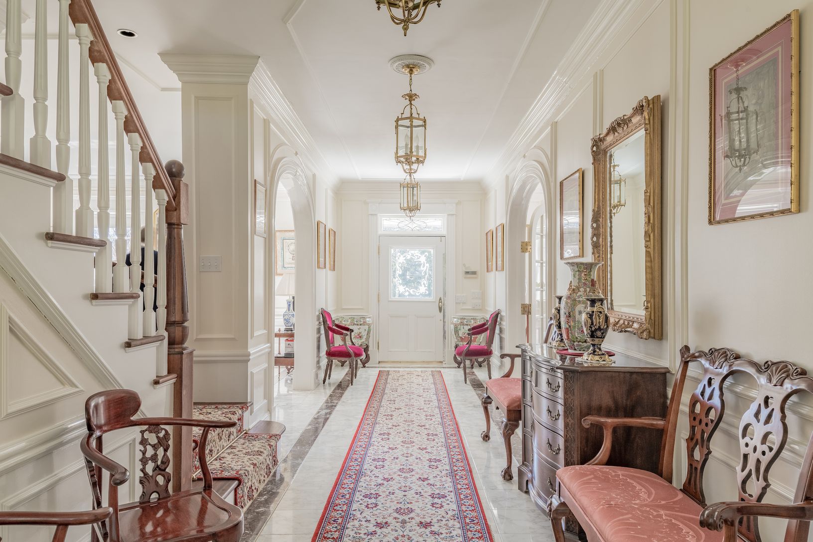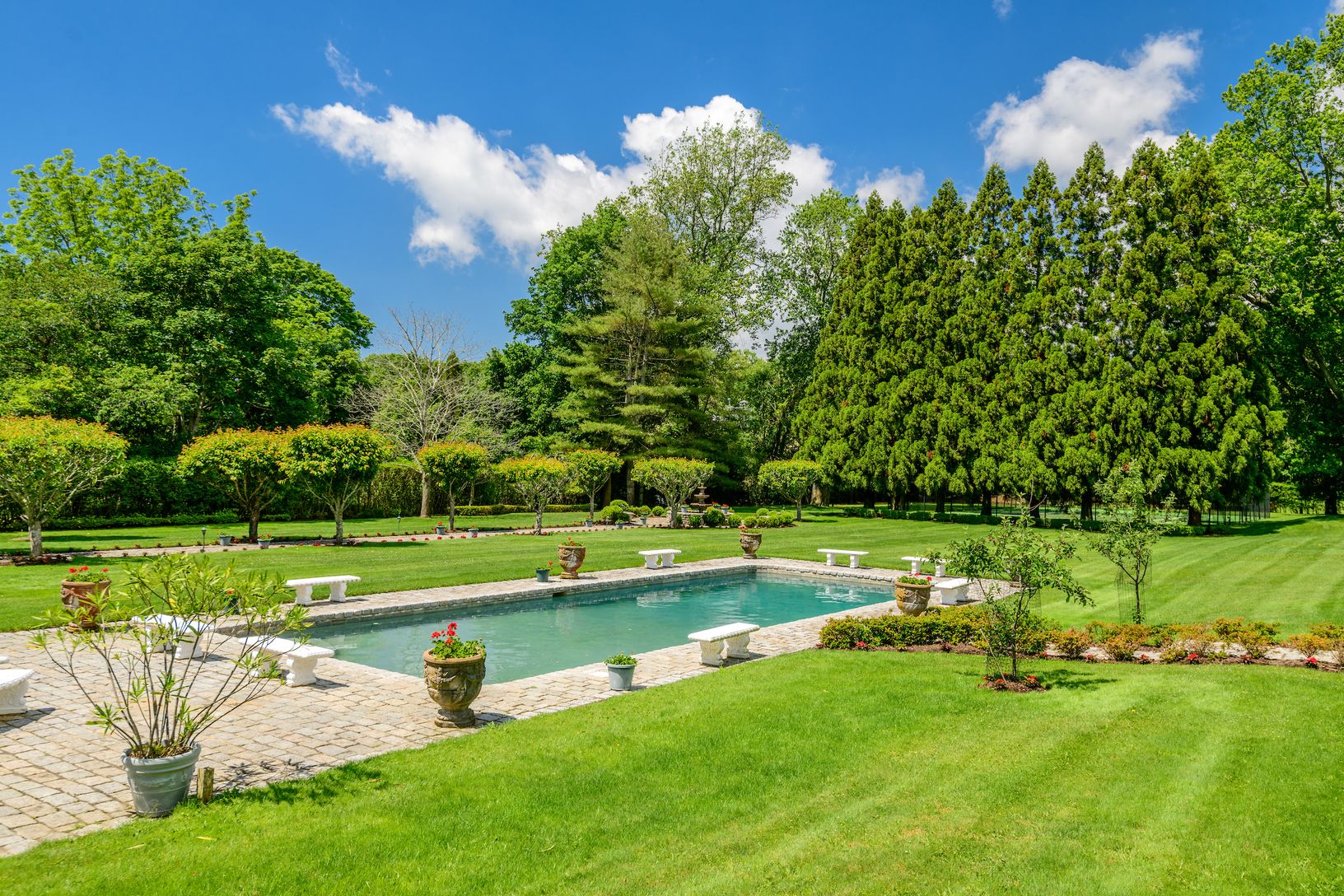 "The White House" Estate! A rare opportunity to own one of the Hamptons most admired homes located at the entrance to East Hampton village. The unique property sits on approximately 3 beautifully landscaped acres. The gracious grounds are reminiscent of a 17th century French estate. Secluded in the rear of the property a cherry tree alee leads to a fountain, and tennis court sheltered by 30-year-old pines. There is a 20' x 54' heated gunite po