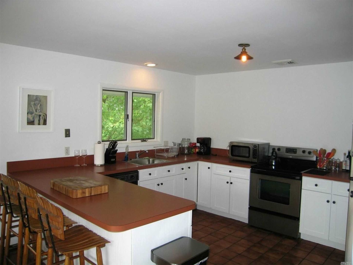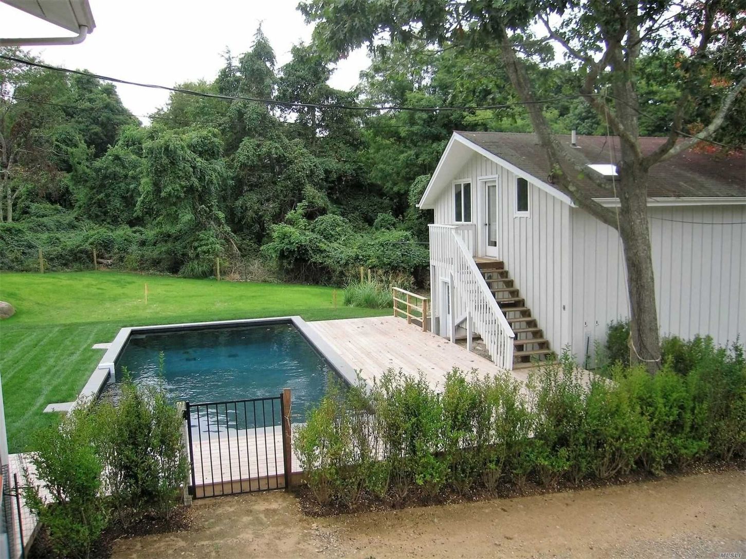 This light-filled Contemporary situated on 1.1-acre grounds close to sandy beaches and Coecles Harbor hosts a new pool and landscaping as well as a 2 car garage with accessory living above. The main house offers open living, dining, and kitchen areas on the second floor leading to an elevated deck for entertaining. The Master bedroom suite and an additional bedroom complete the 2nd floor. The 1st floor hosts a mudroom, entry with laundry &