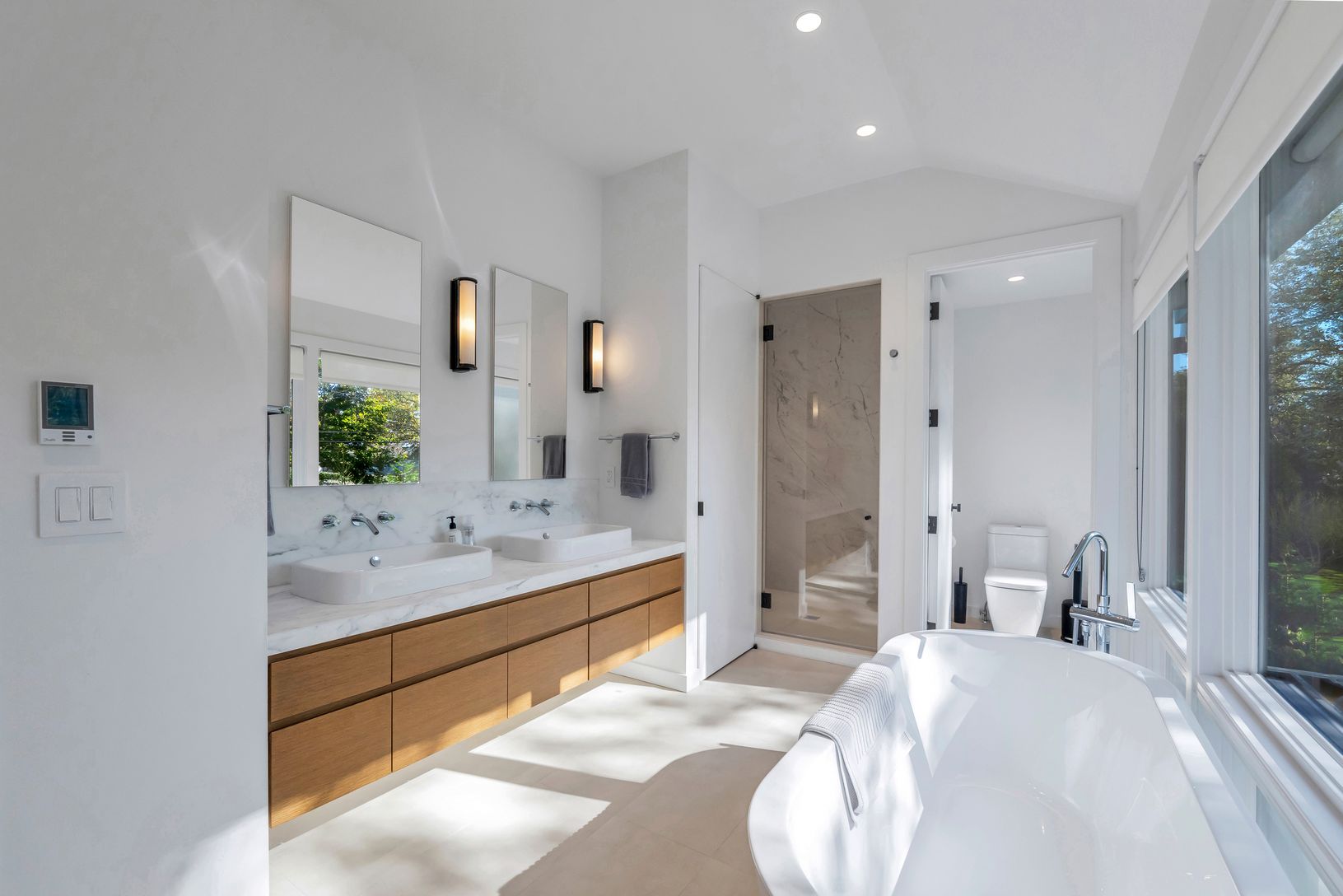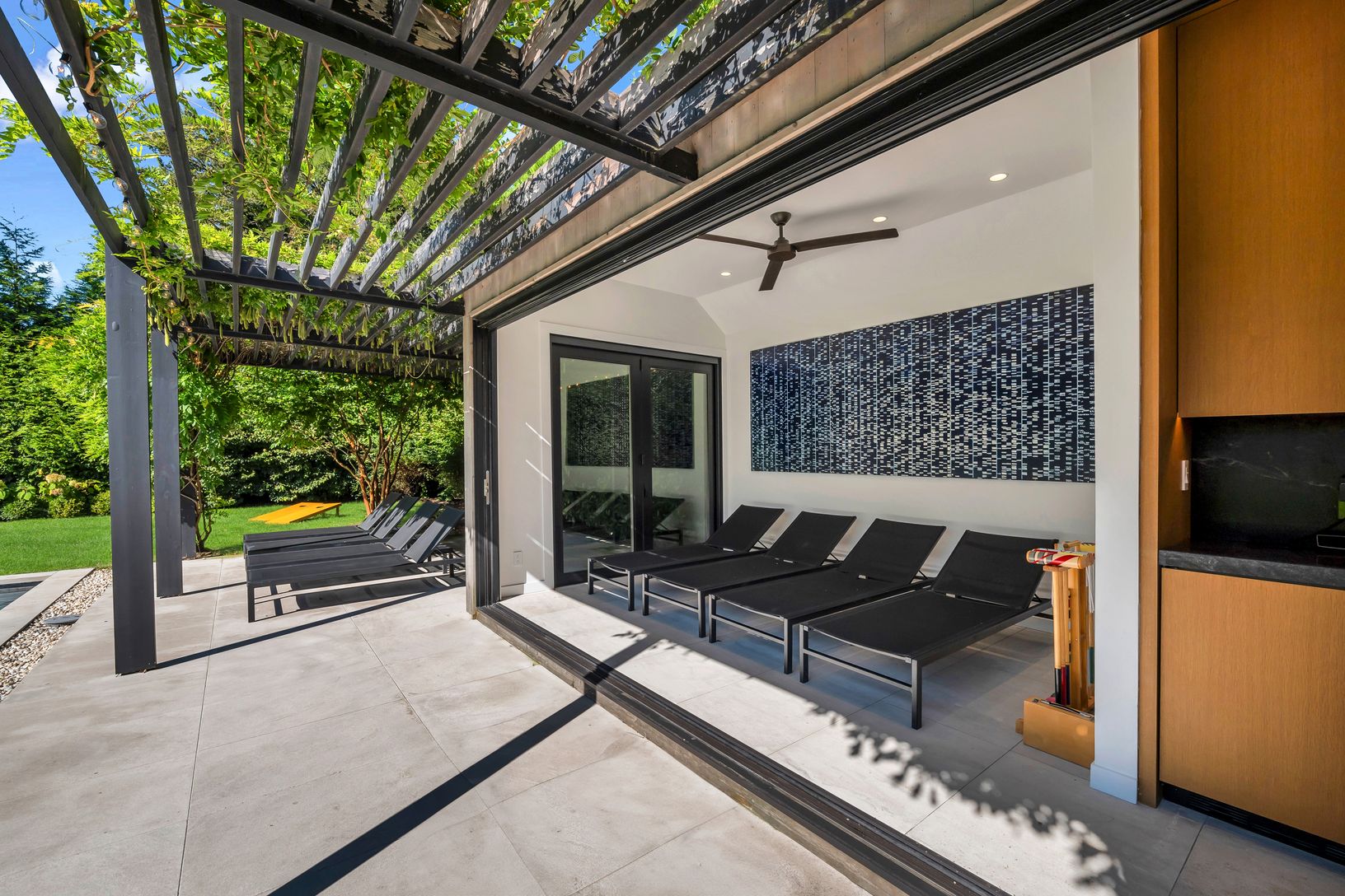 Situated in a prime south of the highway location in the Amagansett Lanes, this brand new construction house completed in 2021, has 6 bedrooms and 7 baths. Designed by a renowned architect, this 5,500 Sf +/- house has unique sleek modern lines throughout the house. All Four bedrooms on the top floor have ensuite bathrooms with beautiful finishes and custom cement tile floors with radiant heat. There are two additional bedrooms on the main floo