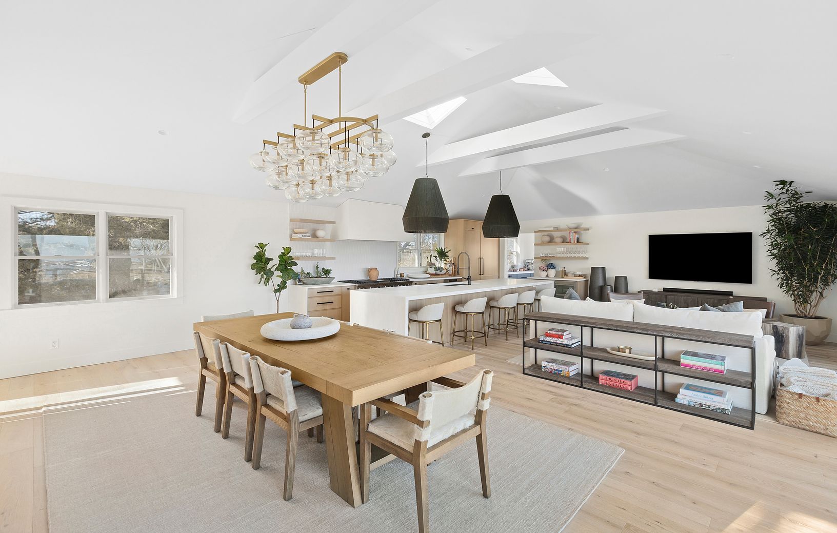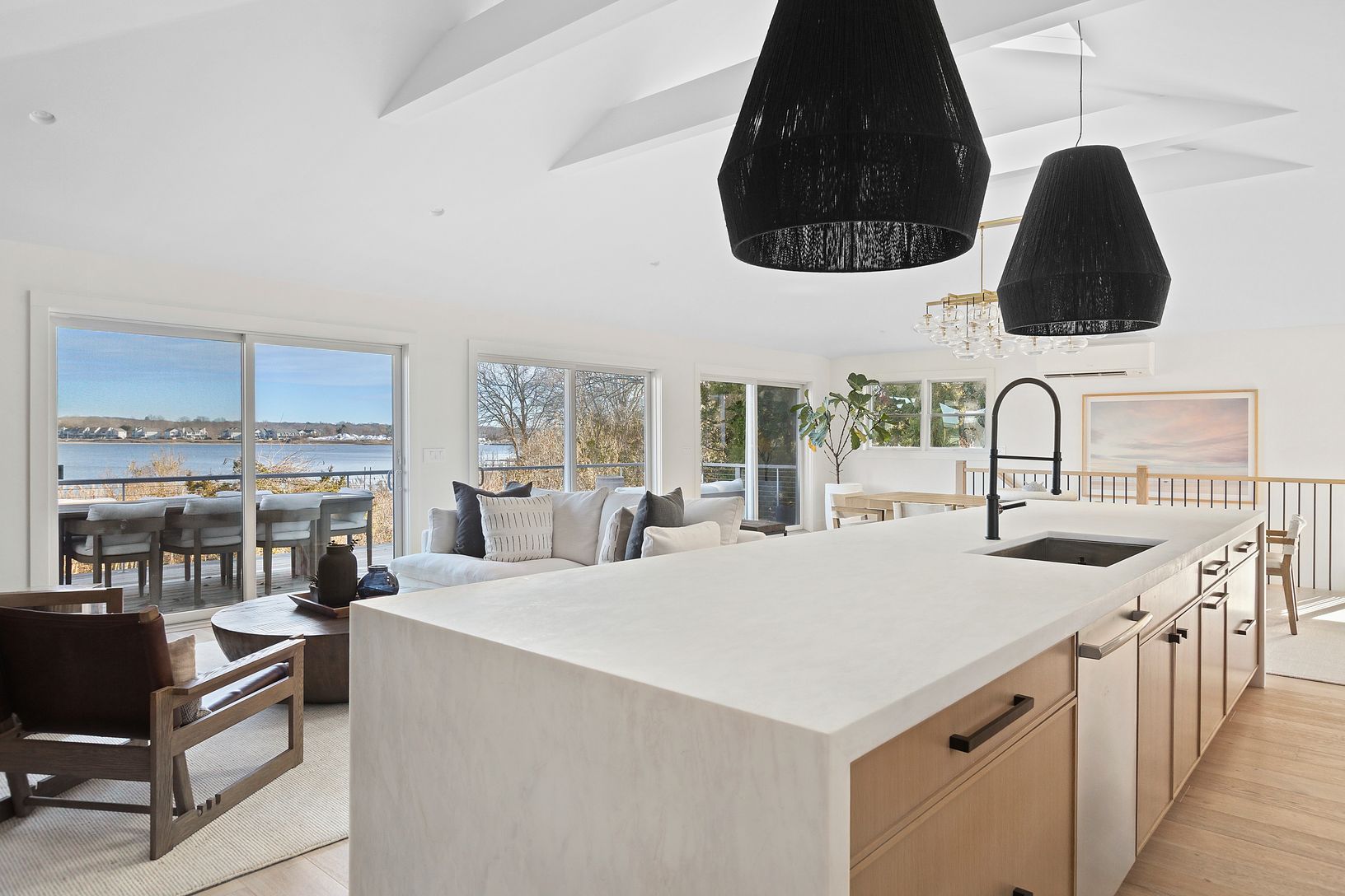 Sited on Sag Harbor Cove in the sought-after Bay Point community, this 3 bedroom, 2.5 bathroom residence offers a rare combination of 120 feet of direct water frontage and sweeping eastern views toward Sag Harbor Village. The 2,738-square-foot interior is defined by light and scale, with an open-concept layout designed to prioritize the water from nearly every room. The home's main level is anchored by a great room with a fireplace and hardwoo