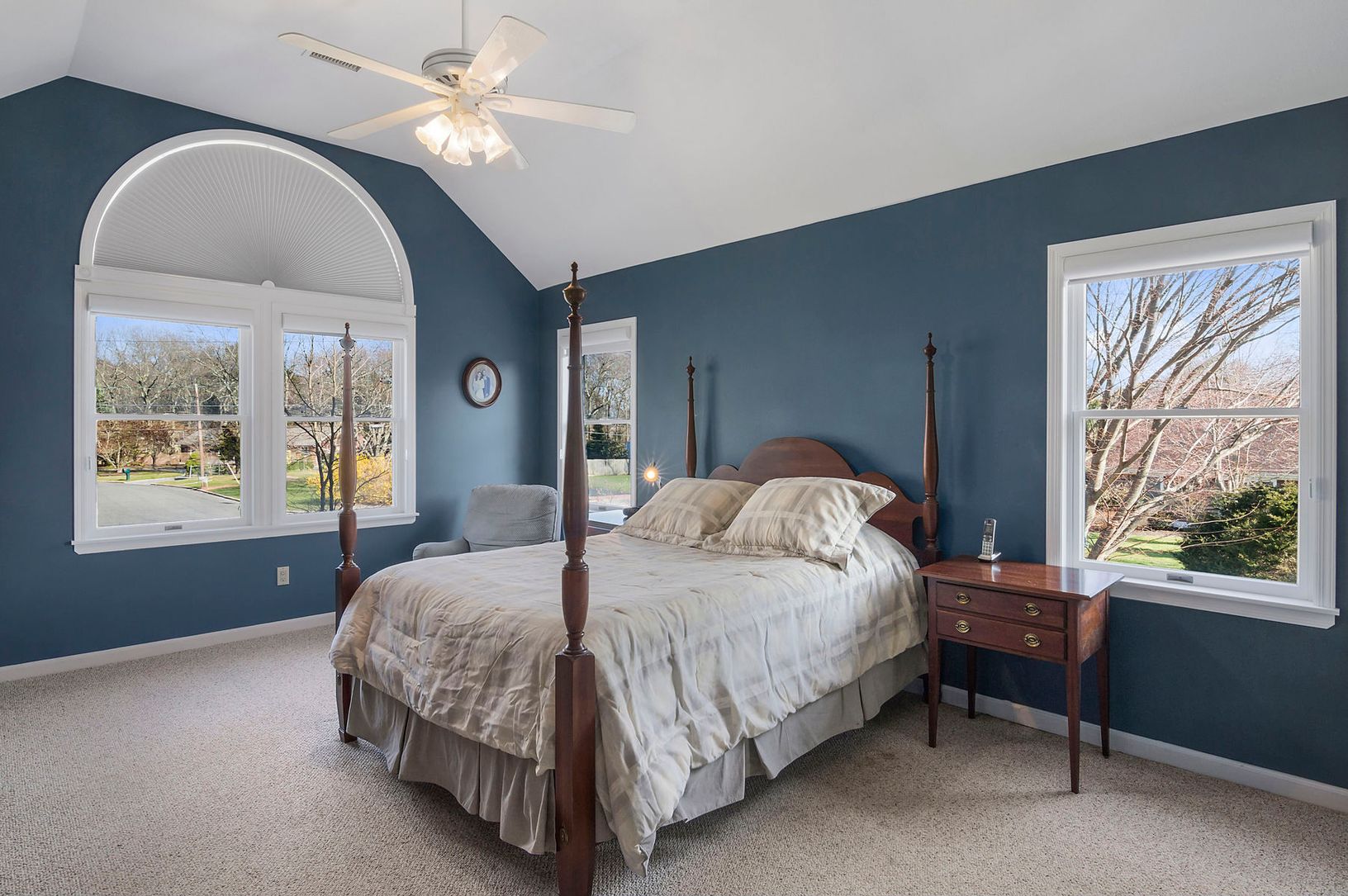 This traditional 4 bedroom home is set on a shy acre, south of Montauk Highway. It has been beautifully maintained by just one owner. Cedar clapboard exterior, with a front porch leading to a soaring 2-story foyer. On the main floor, you'll find formal living and dining rooms, a spacious eat-in kitchen/family room with wood burning fireplace, 3 season screened room overlooking gardens, plus half bath and laundry. Upstairs are the master bedr