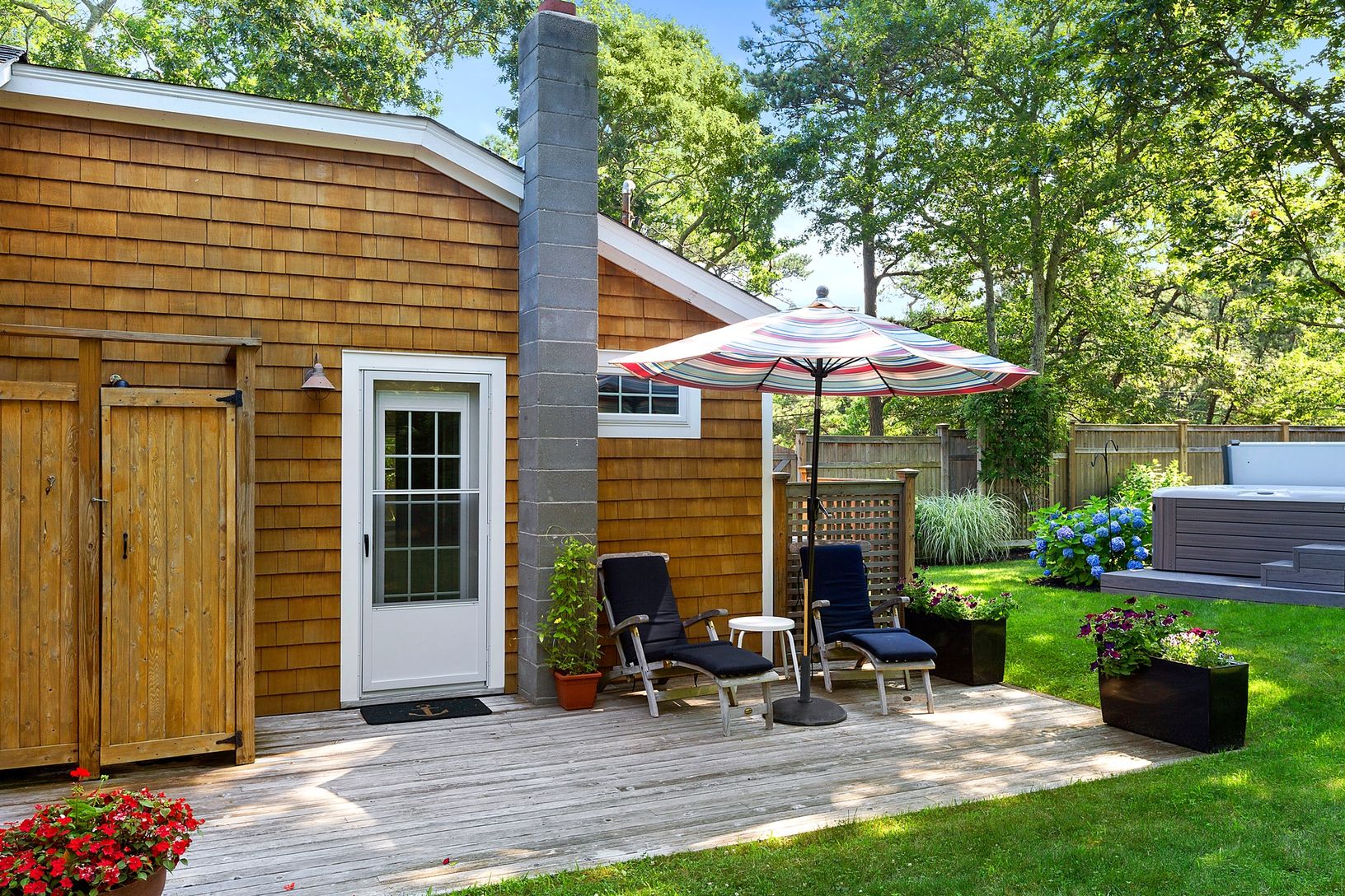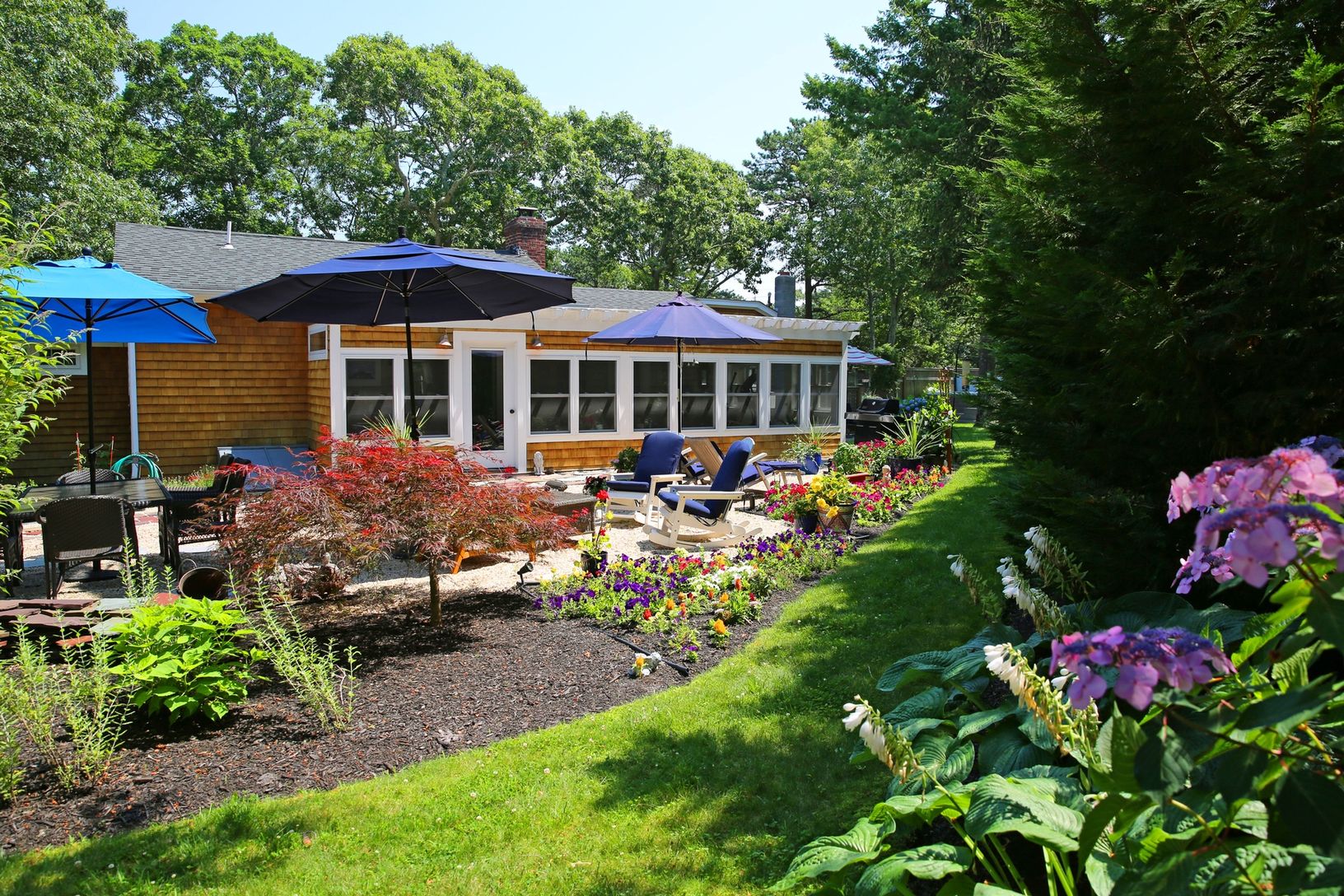 Private and recently renovated home with year-round water views the fully winterized sleeping porch with dining alcove enhances the indoor/outdoor experience. Master wing with its own separate entrance exits to spa area, and outdoor shower. This unique 3/4 acre property with auxiliary building has room for expansion and pool. Minutes to shopping and ocean beaches.