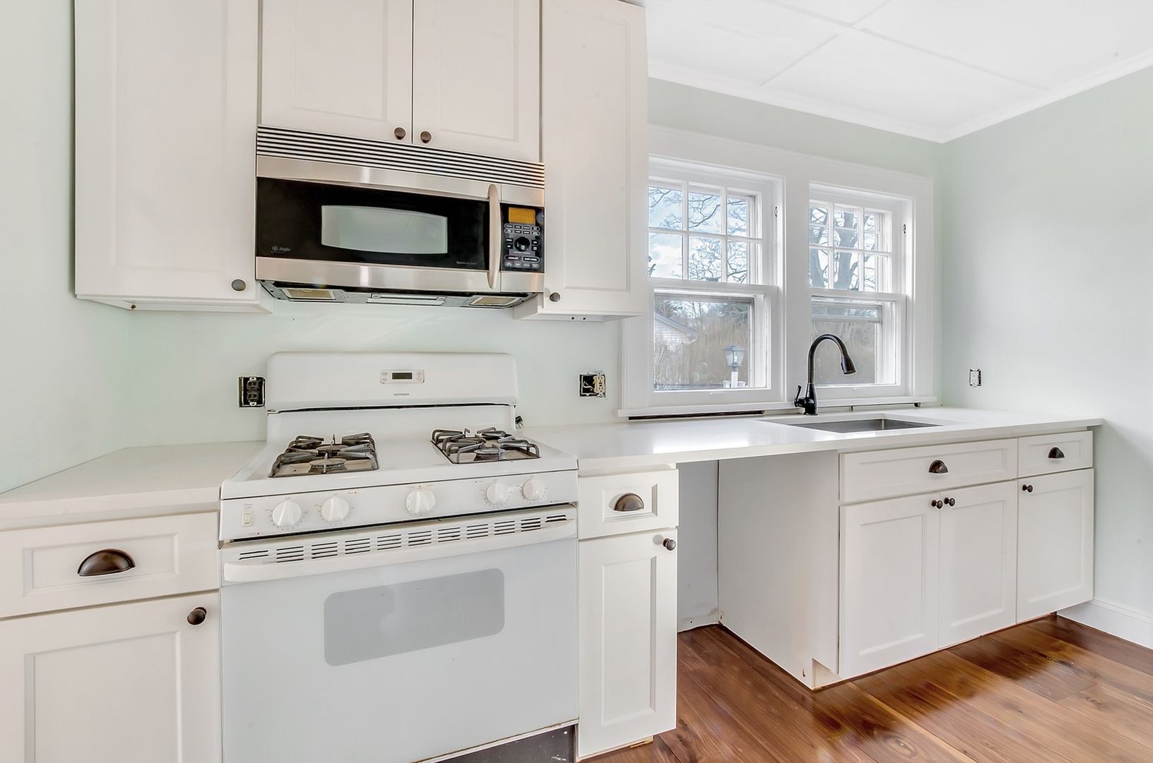 Attractive cape offering beautiful hardwood floors and a renovated Kitchen with quartz counter tops. This well-appointed 2 bedroom home exudes charm. The upstairs bedrooms are deliciously cozy with their sloping eaves. This cape style homes is a perfectly manageable size, offering little-to-no wasted space. Also on the property is an oversized 1 car garage with an attached shed. Call for a showing today.