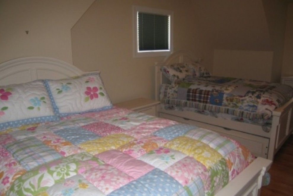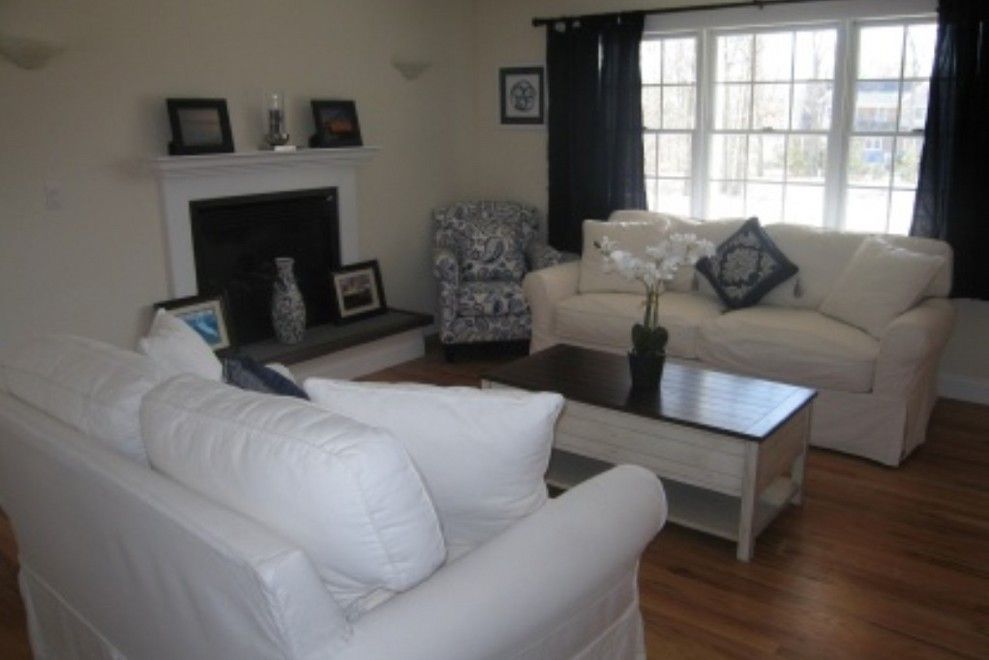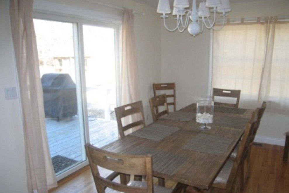 Conveniently located, lovely traditional, tastefully and newly furnished. Adjacent to the cozy living room is the oversized dining table and easy access to kitchen with all new appliances and flat screen. Sliders lead out to deck/ outdoor dining area which overlooks lawns and brand new swimming pool. There is a full bath and guest bedroom on the main floor. Upstairs there is a master bedroom with flat screen and a third good sized bedroom with