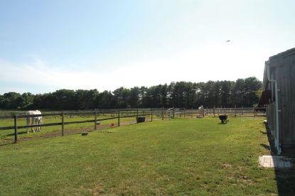 In the center of Shelter Island is one of the most treasured properties, nearly 70 +/- acres of pasture, presently being operated as Hampshire Farms, an equestrian center. The largest barn has eleven stalls and a spacious riding ring, the second has ten stalls, the third has fourteen stalls and there is a fourth barn with four stalls for ponies. There are multiple paddocks throughout the vast acreage, which is flat and mostly cleared for easy