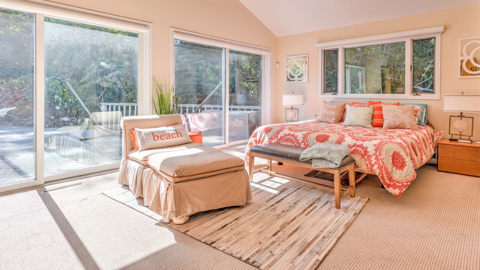 This one-story contemporary home, with all new furnishings and central air, has four bedrooms, including