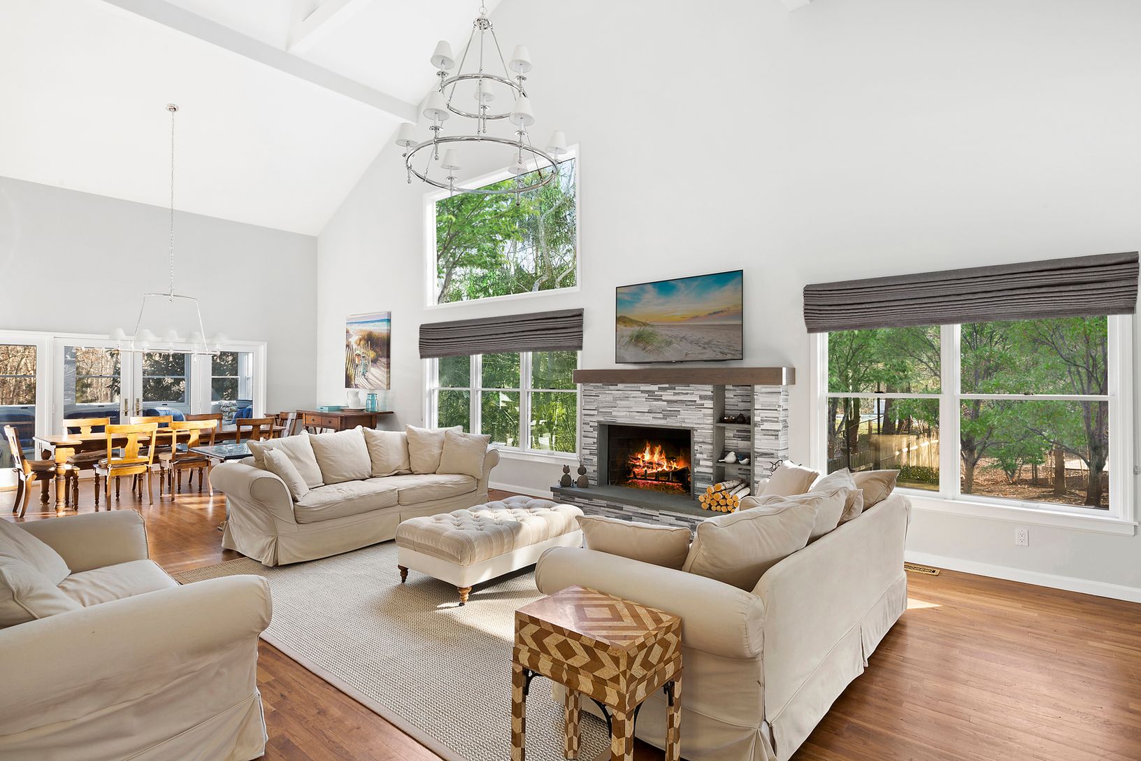 Privately nested at the end of a tree lined cul de sac in the heart of Bridgehampton, sits this beautifully appointed 3000sf+ Traditional. Filled with new renovations inside and out, offering 3 fully finished levels of living space, featuring 4 bedrooms, including a gracious 1st floor master suite with vaulted ceiling and french doors, 4 full newly renovated marble baths, spacious, sun filled great room with 2 story vaulted ceiling, wood burn