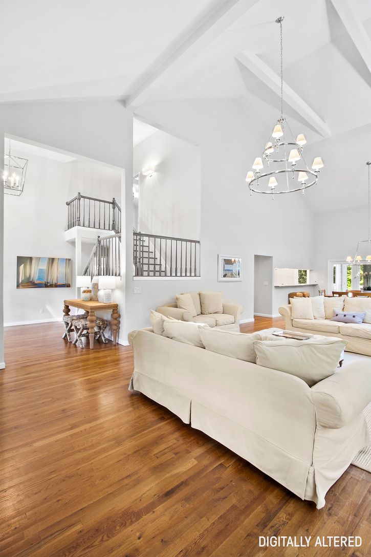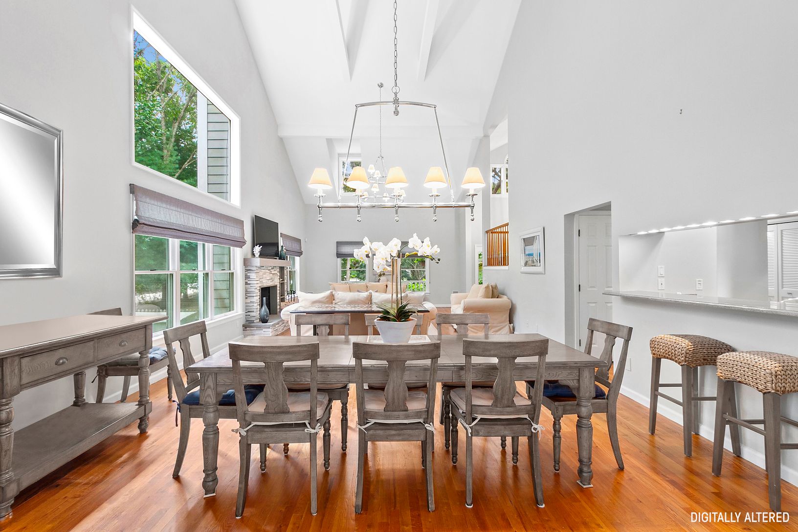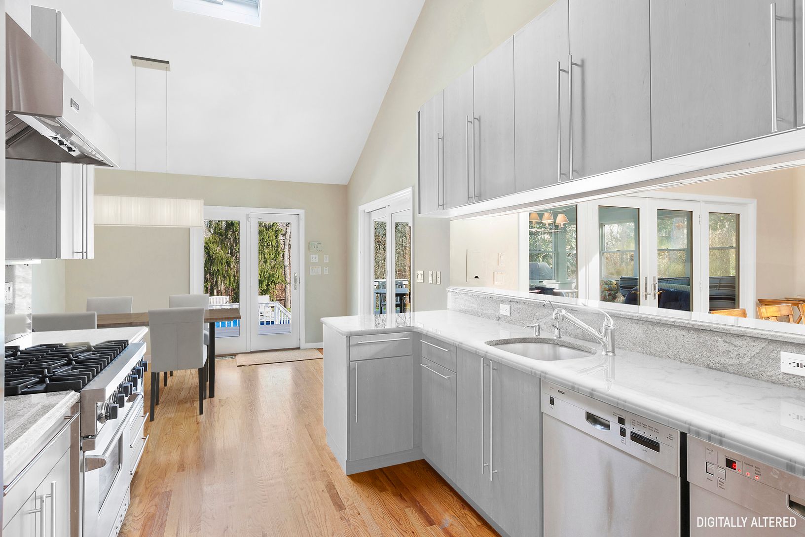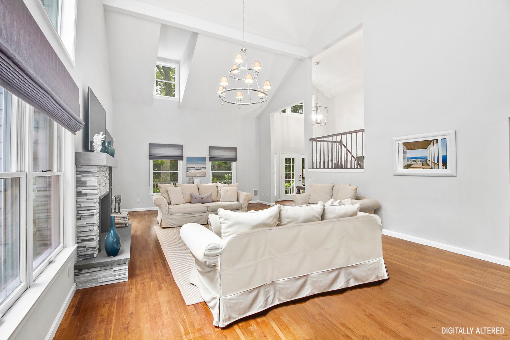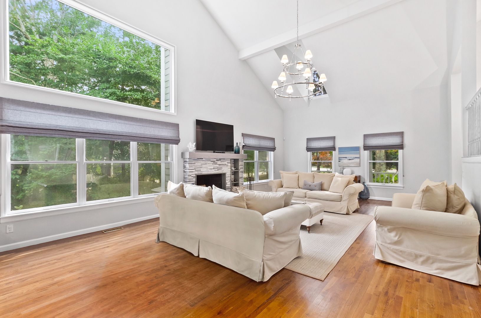 Privately nested at the end of a tree lined cul de sac in the heart of Bridgehampton, sits this beautifully appointed 3000sf+ Traditional. Filled with new renovations inside and out, offering 3 fully finished levels of living space, featuring 4 bedrooms, including a gracious 1st floor master suite with vaulted ceiling and french doors, 4 full newly renovated marble baths, spacious, sun filled great room with 2 story vaulted ceiling, wood burn