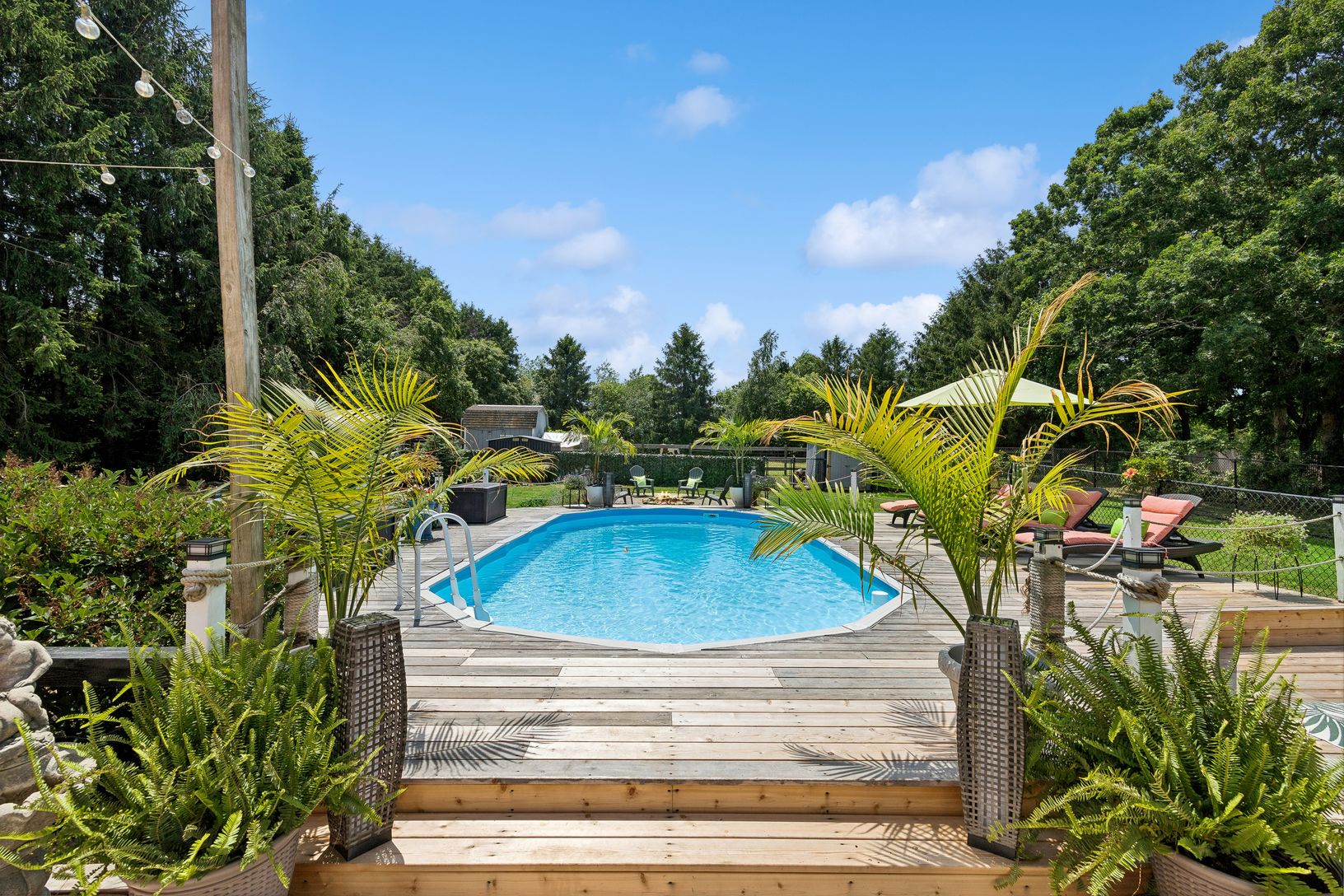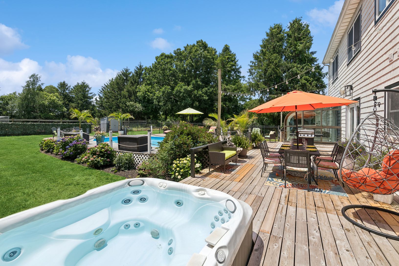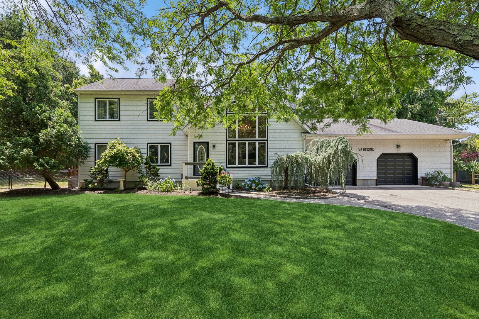 Nestled in the heart of Cutchogue, this home boasts four spacious bedrooms and 3 bathrooms, plus an office, and additional room/flex space. The main floor primary has a large walk-in closet, and French doors that open to the expansive backyard. The custom kitchen offers stainless steel appliances, including a 6-burner range, and is open to the sunroom, an ideal spot for a breakfast nook or a place to relax. Main floor laundry room and pantry f