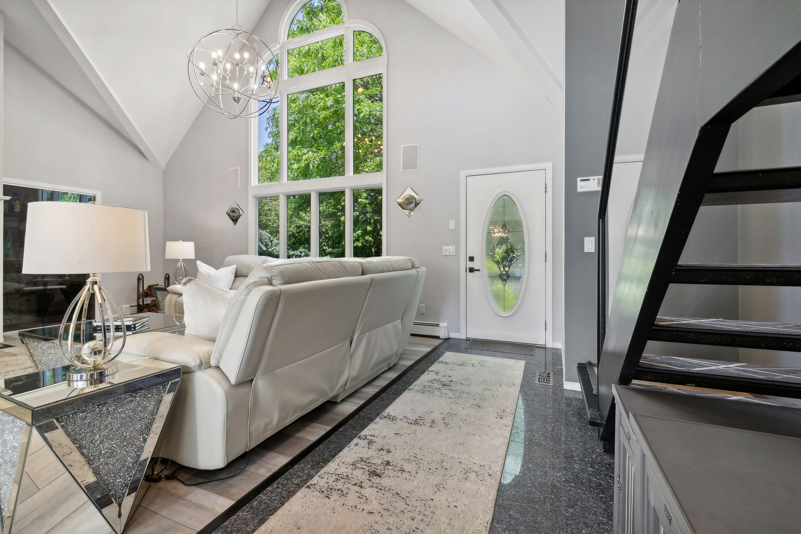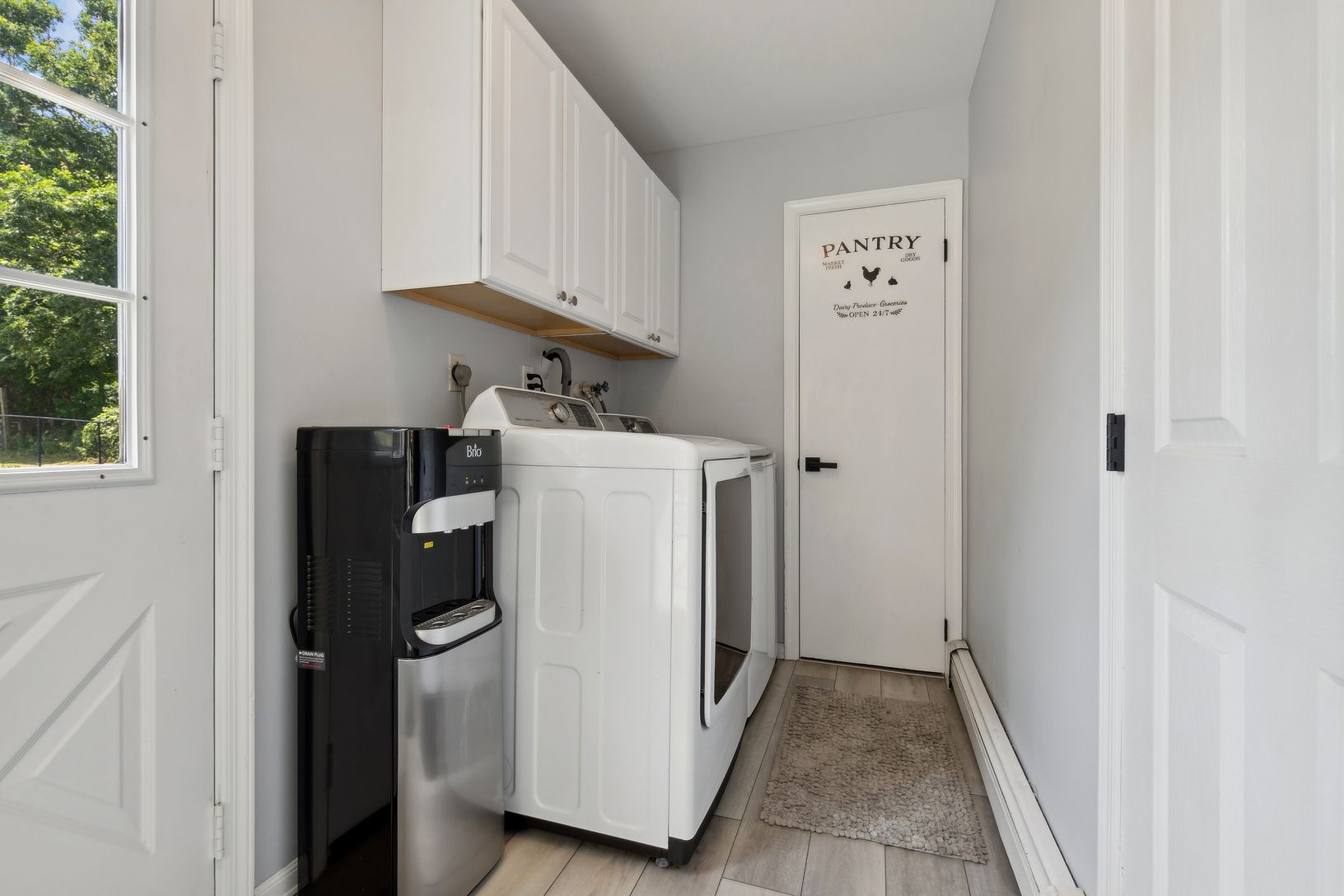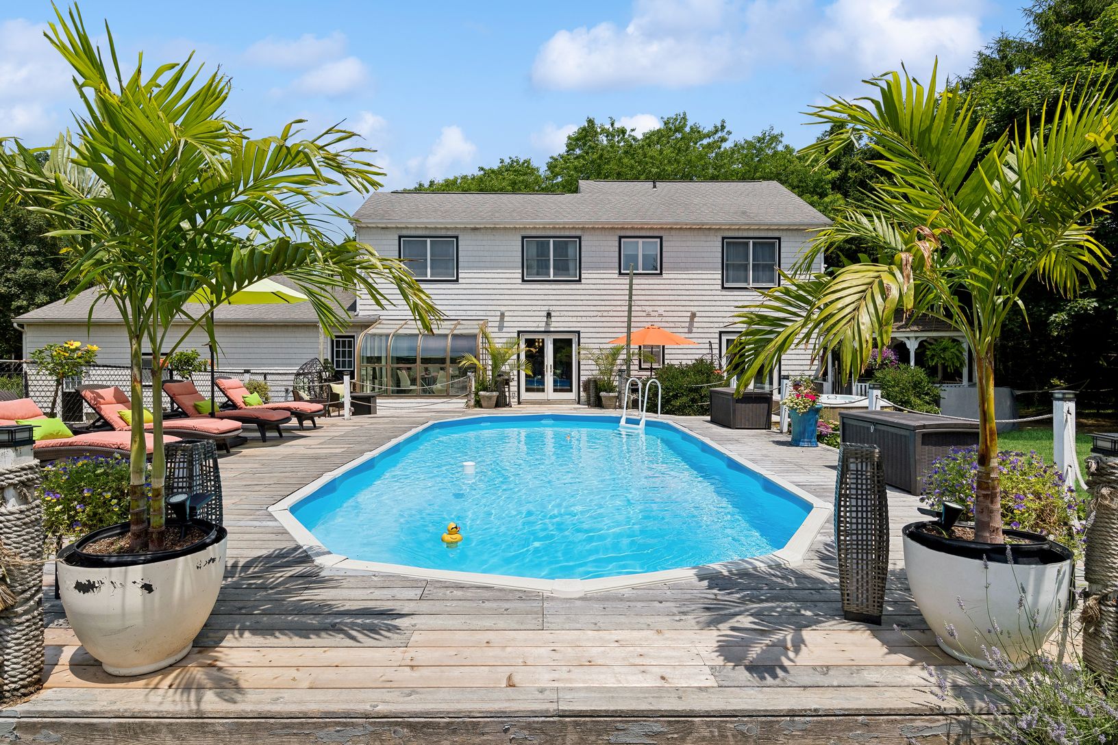 Nestled in the heart of Cutchogue, this home boasts four spacious bedrooms and 3 bathrooms, plus an office, and additional room/flex space. The main floor primary has a large walk-in closet, and French doors that open to the expansive backyard. The custom kitchen offers stainless steel appliances, including a 6-burner range, and is open to the sunroom, an ideal spot for a breakfast nook or a place to relax. Main floor laundry room and pantry f