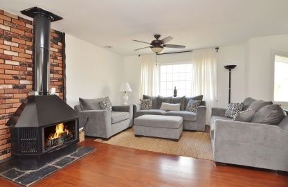 Set back off the main road on an acre of land with plenty of room for a pool. The main floor features the master bedroom, two guest bedrooms and a full bath. The kitchen has been beautifully renovated, the dining area flows nicely into the living room for easy entertaining and the woodstove enhances the ambiance of this immaculate home. On the lower level you will find a large den, wet bar, fourth bedroom, office and another full bath. Har