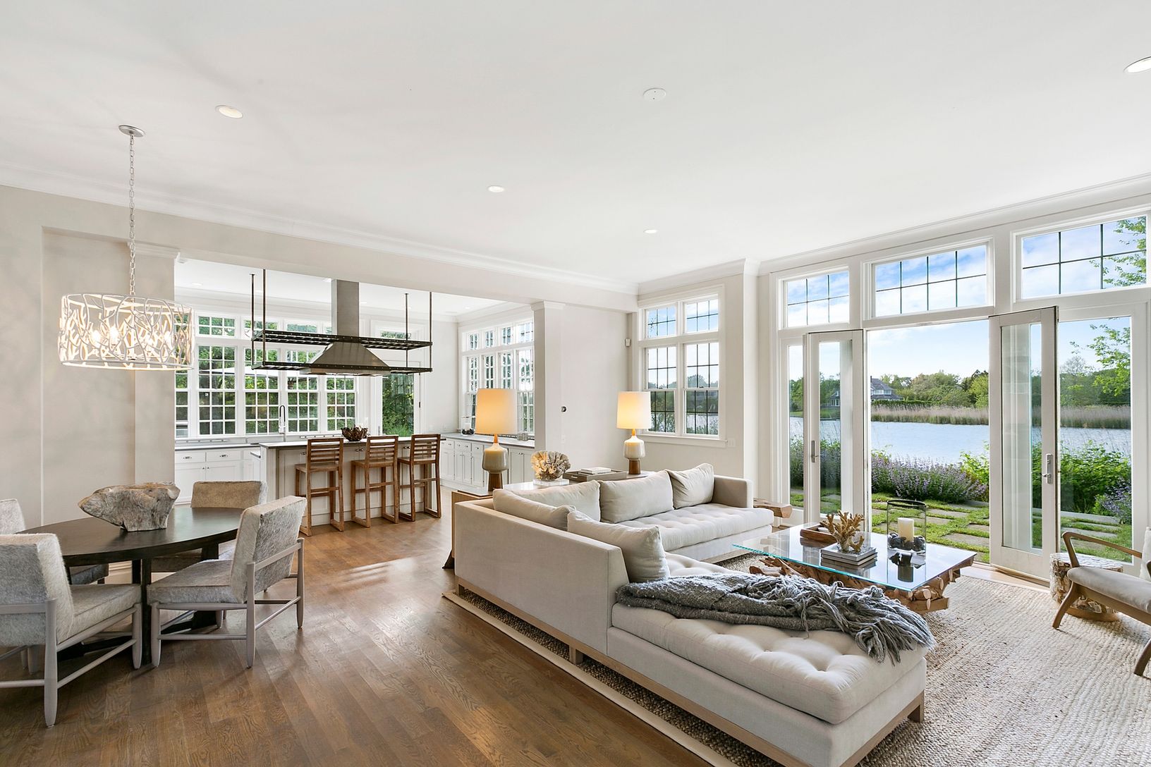 Less than a mile from Flying Point Ocean Beach in one of the best neighborhoods in the Hamptons. This elegant traditional residence has been recently and superbly renovated and decorated in a modern beachy serene style straight out of Elle Decor. Situated on Burnett's Creek, it also offers your own boat dock for all your water recreation. For those with discerning taste, the refined living spaces are filled with light from the beautiful and ab
