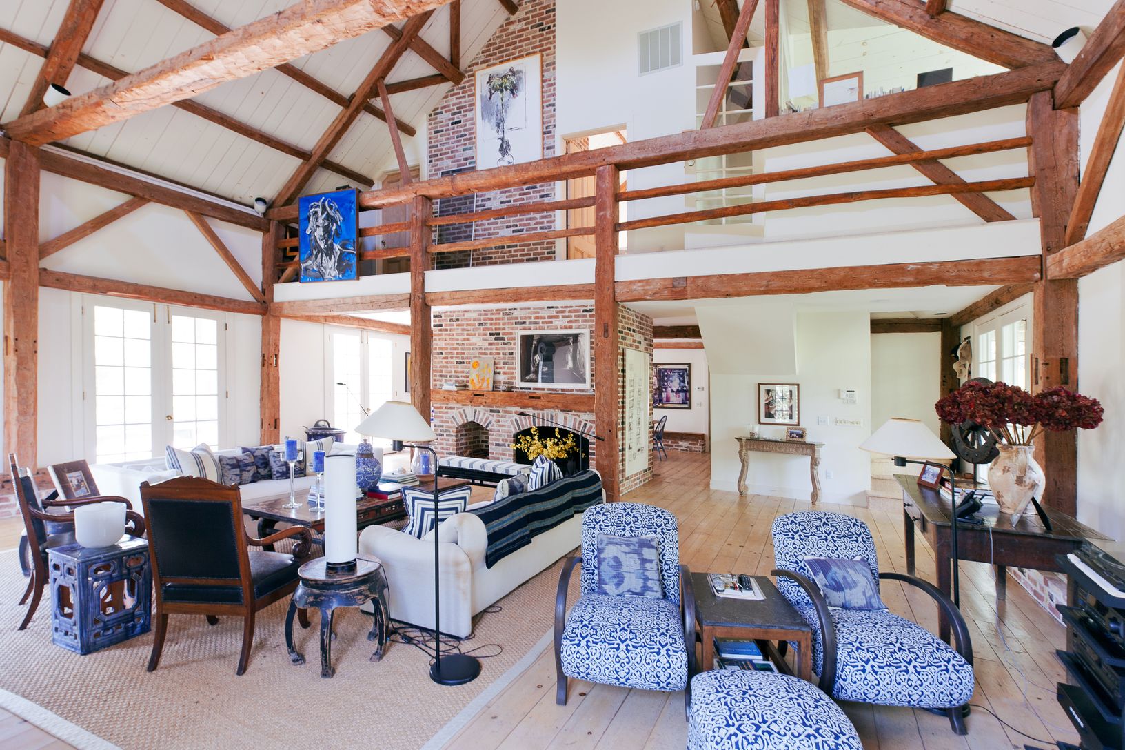 A private 1.4 acres deep in Sagaponack South is the magical setting for this authentic 1800's barn that was transported from Vermont and lovingly recreated on its current site. Located down a long drive off of Sagg Main Street, the 4 bedroom home with its antique beams and wide plank floors exudes a rustic charm while still equipped with all necessary modern conveniences. Light suffuses the interiors while French doors open to the tranquil bac