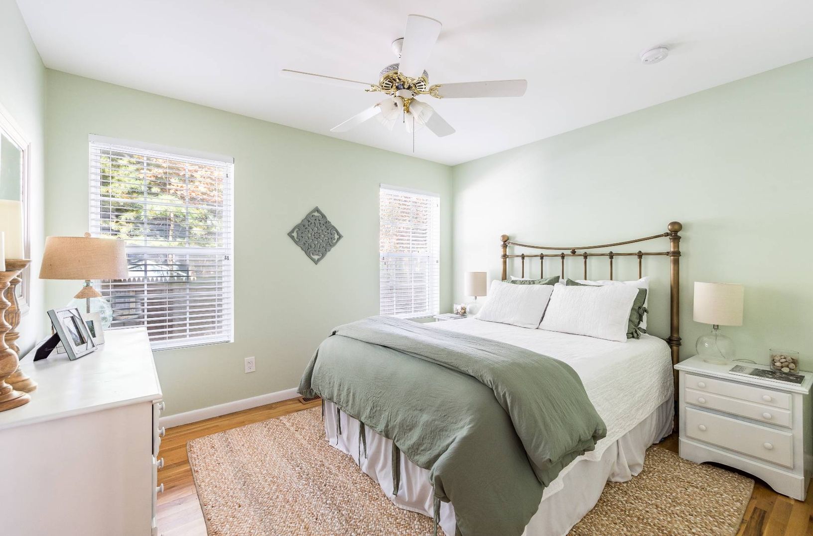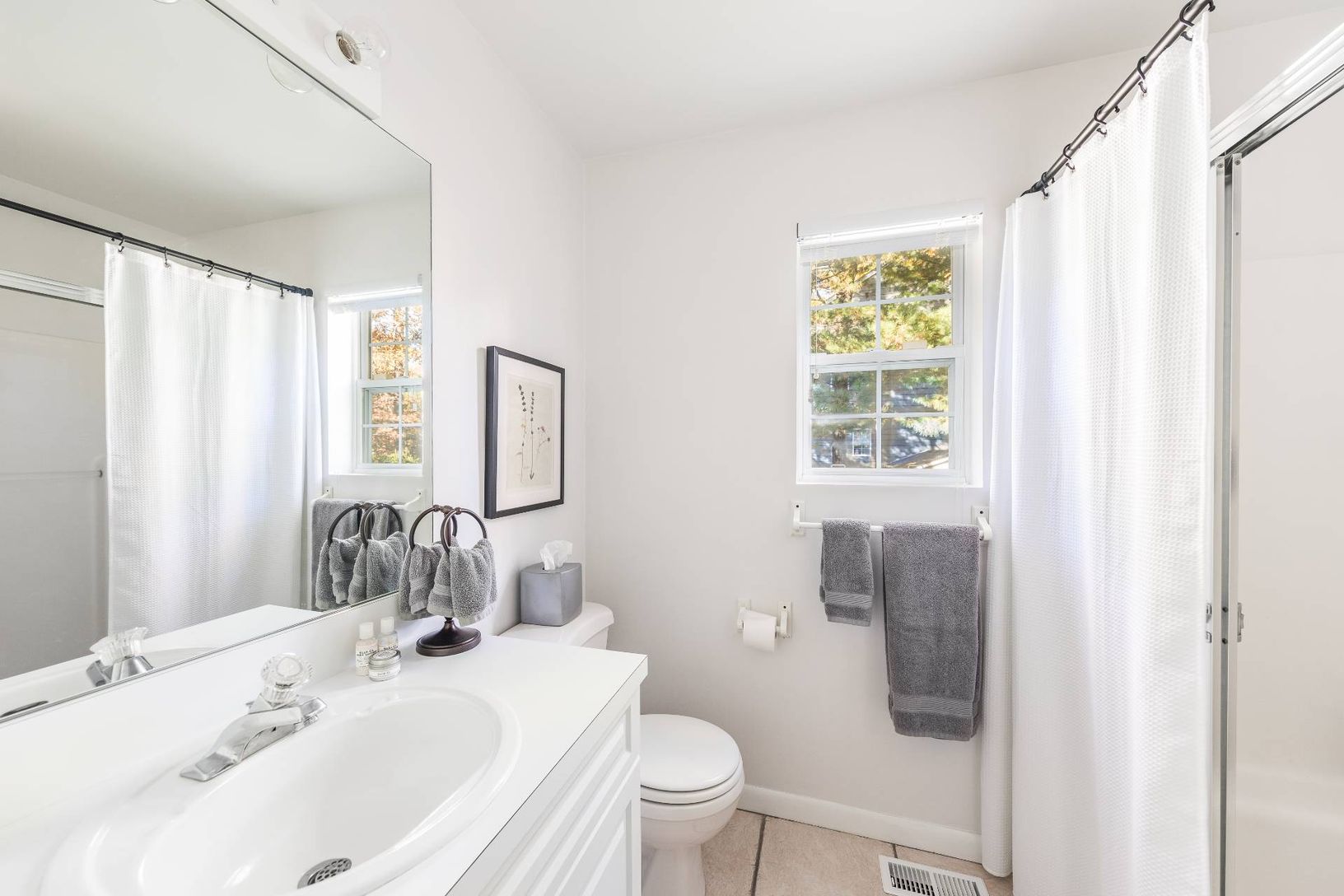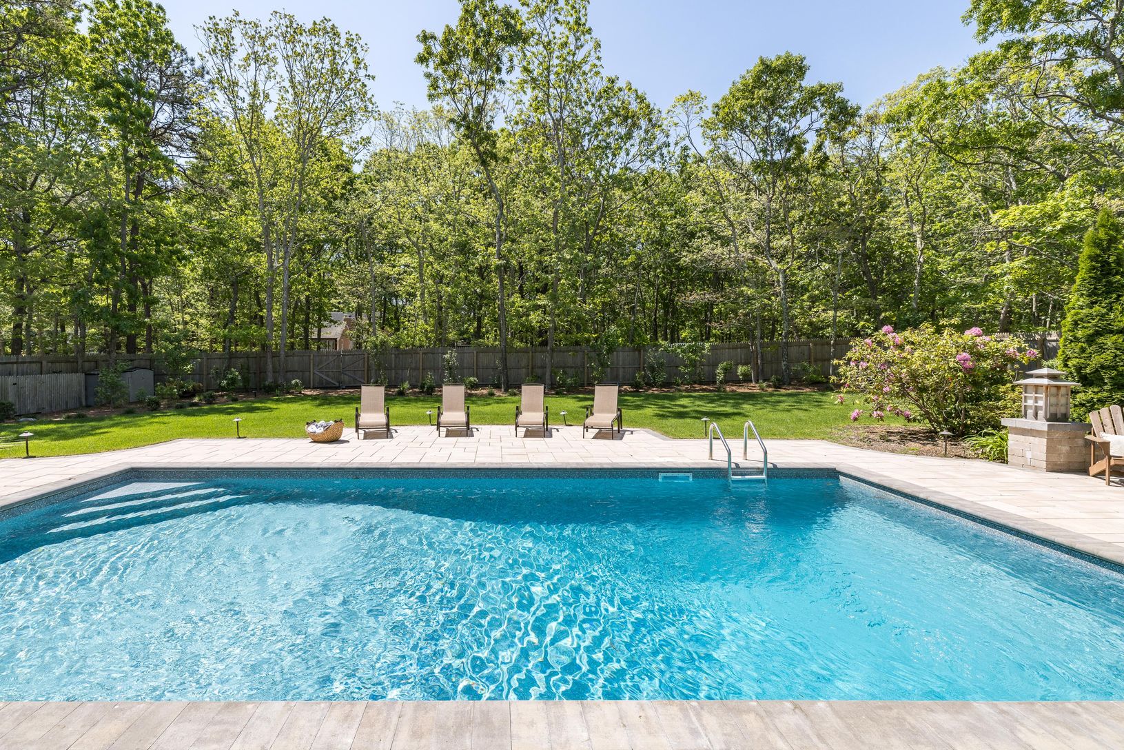This beautifully updated and light-filled home on a quiet road along the East Hampton Village fringe offers the perfect summer getaway. The open floor plan with high ceilings creates a bright and airy setting perfect for entertaining. The newly updated chef's kitchen is fully equipped for all of your cooking needs. The main level features an ensuite bedroom, and upstairs lies two additional bedrooms and a full bathroom. The lushly landscaped a