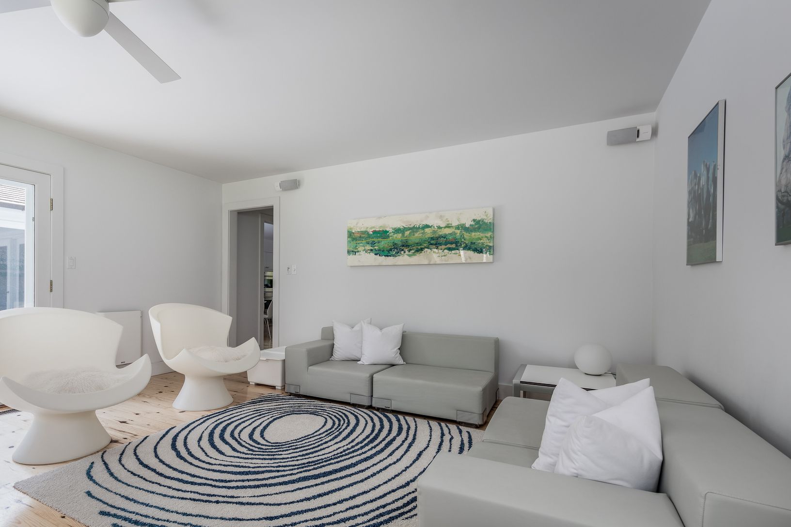 4 bedroom 4.5 bathroom contemporary home located seconds from Georgica Beach. This home features an open layout with a nice backyard/deck area and heated pool. Set on a private 1 acre. Finished lower level plus an attached garage.
