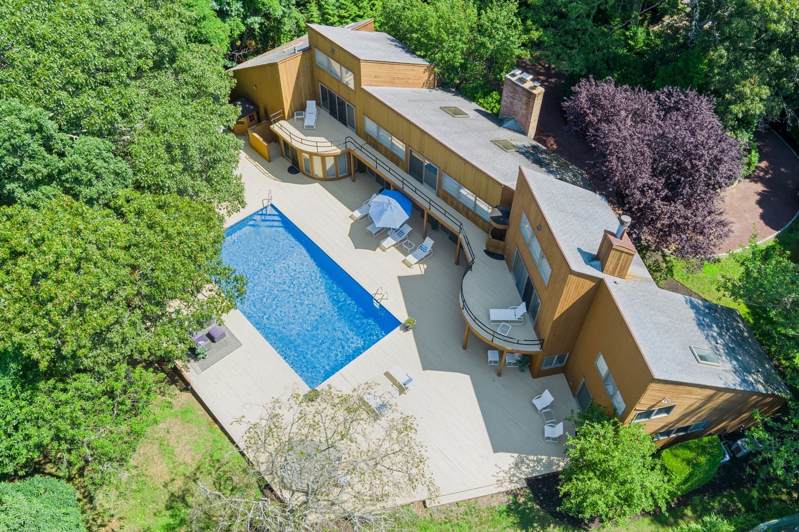 Tucked away on 1.4 acres of lush, landscaped grounds, this bright contemporary residence offers the ultimate Hamptons lifestyle-minutes from scenic bay beaches and local farm stands. A private driveway winds through mature plantings, guiding you to a welcoming retreat where natural light pours through expansive windows and every detail is curated for relaxation and entertainment. With 4,000 square feet of open concept living space, this home s