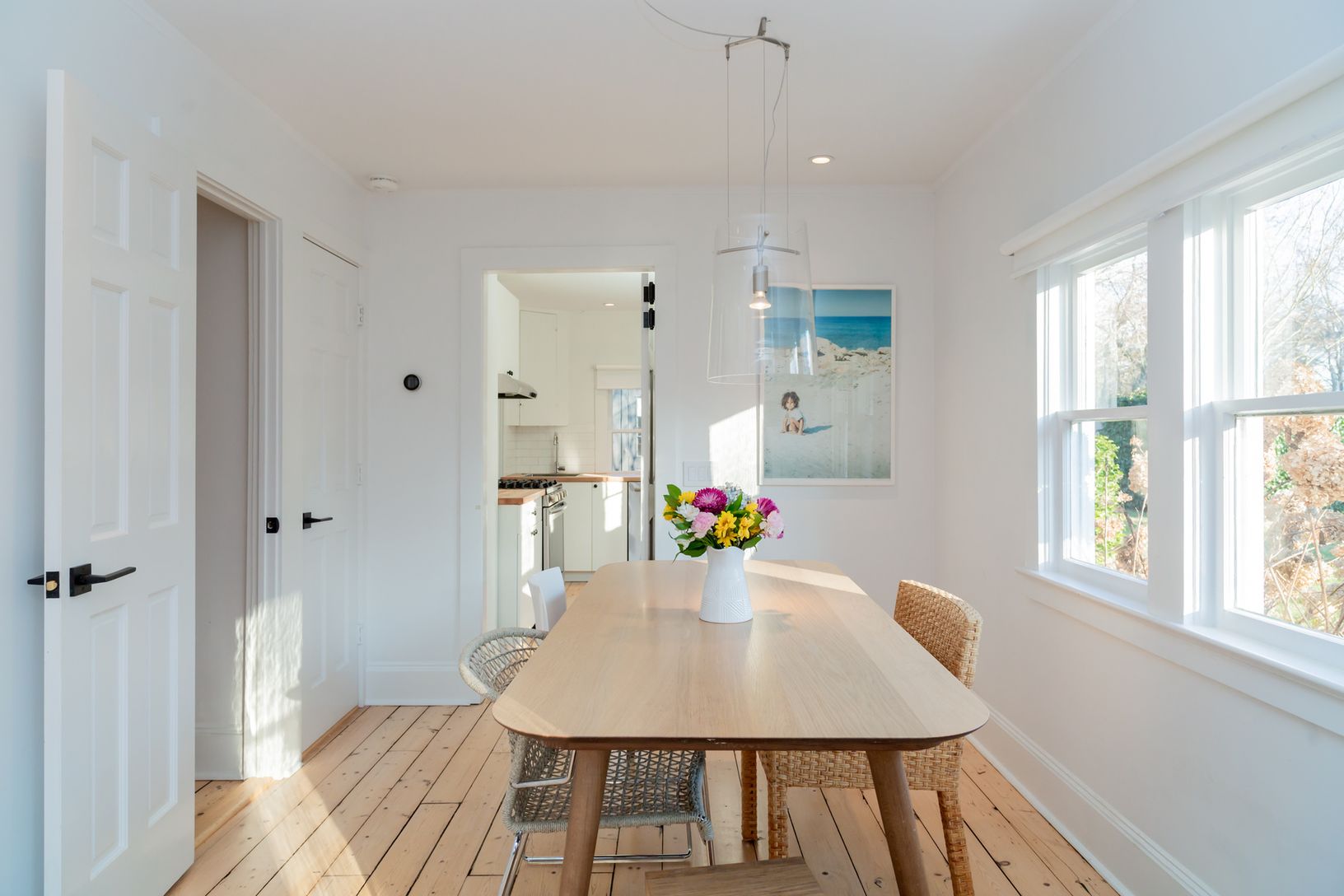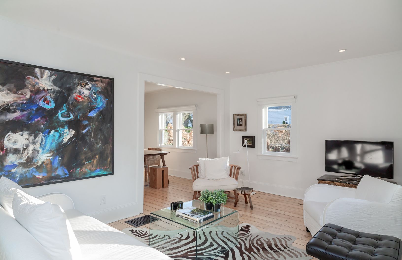 When less is more and too much is never enough, this stylishly renovated, 2 bedroom pied-a-terre by JANGEORGe Interior Design offers restrained elegance a block away from Sag Harbor Village's iconic Main Street. Bright interiors streaked with natural light enable the home's modest footprint to make a big statement in any season. Showcasing a thoughtful layout and economic use of space, the living room, dining room, and kitchen align for an eas