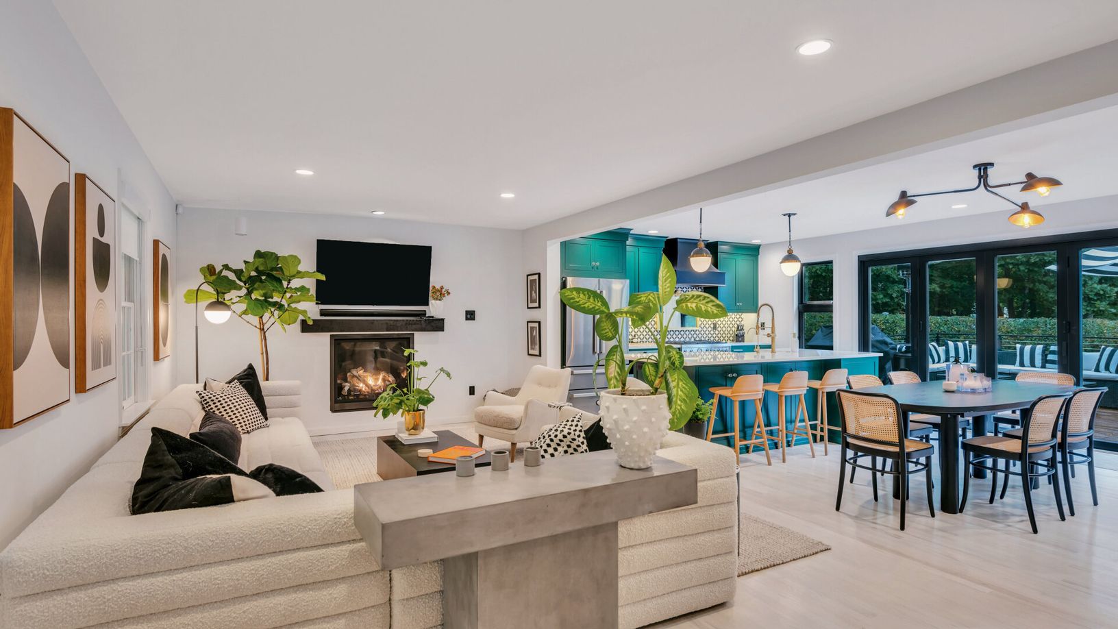 This modern oasis, located a mere block from a private, mile-long beach, is the perfect place to escape the hustle and bustle of everyday life. The floor-plan is entirely open, allowing the main level of the home to be one grand, communal space for a close-knit group of friends or family. The decor, furniture, and finishes are comprised of a neutral color palette with occasional pops color throughout the space. The living room includes a sofa