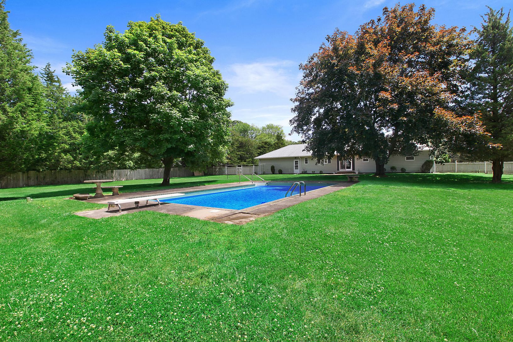 Renovate this proudly built original ranch or create your dream Hampton's escape on this beautiful parcel of land highlighted with mature specimen trees. A fantastic location and a full acre South of the Highway between the Villages of East Hampton and Amagansett. Just moments to the white, sandy beaches of Indian Wells. This 3 bedroom and 2.5 bath classic boasts just over 1600 sq. ft., plus 2 car attached garage and 20 x 40 pool perfectly pla