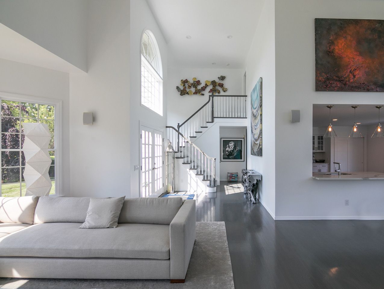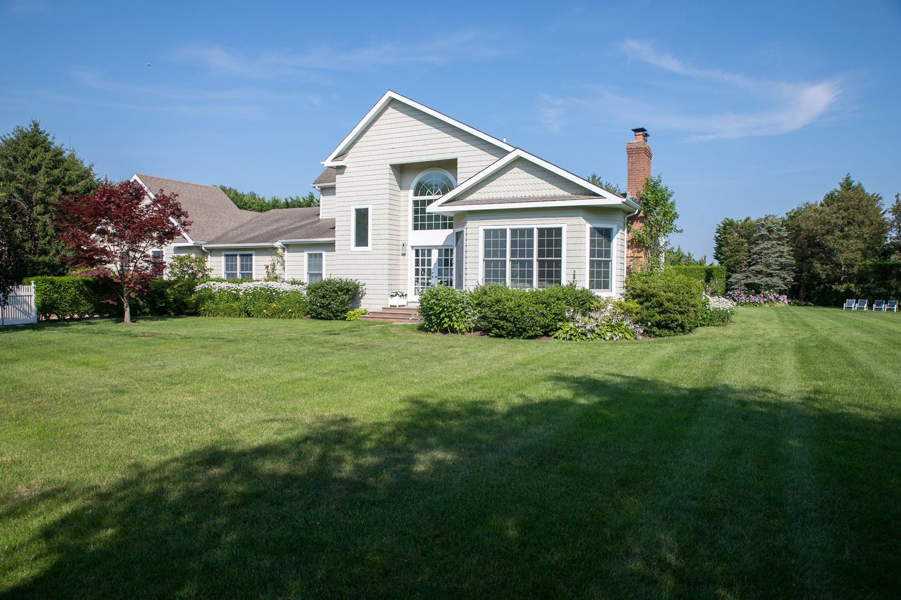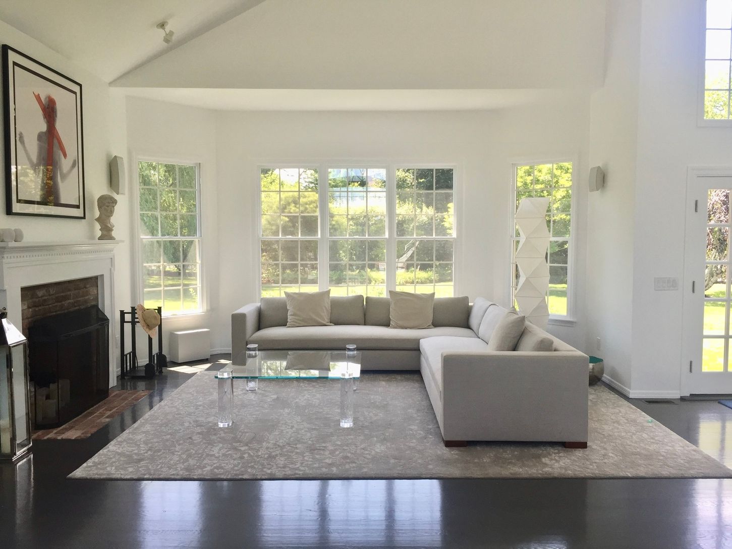 This stylish and light-filled four-bedroom, four and one-half-bath post-modern residence is located in beautiful Water Mill South. Features include a living room with fireplace and cathedral ceiling, dining area, chef's kitchen, central air-conditioning, finished basement, garage, expansive deck, and spectacular grounds with a heated pool.